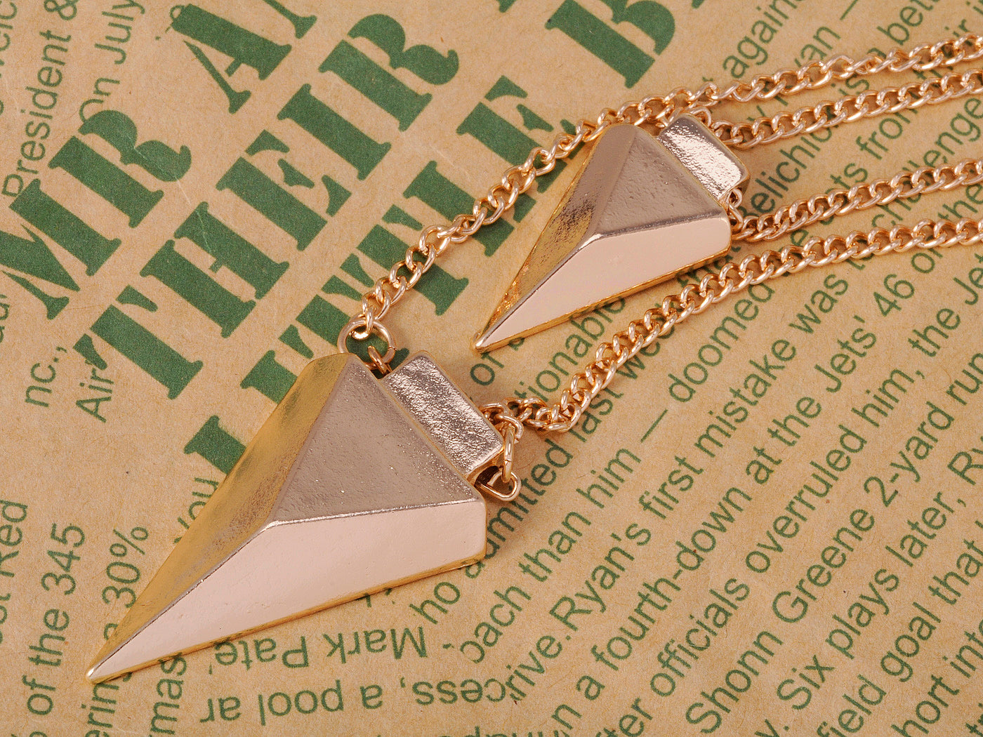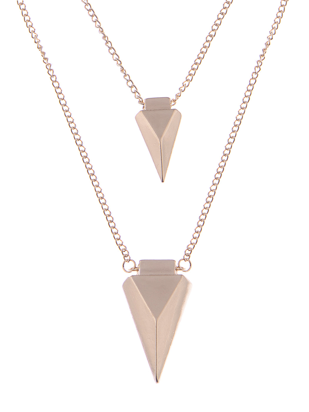 Pyramid Shaped Twin Pendant Linked Chain Necklace