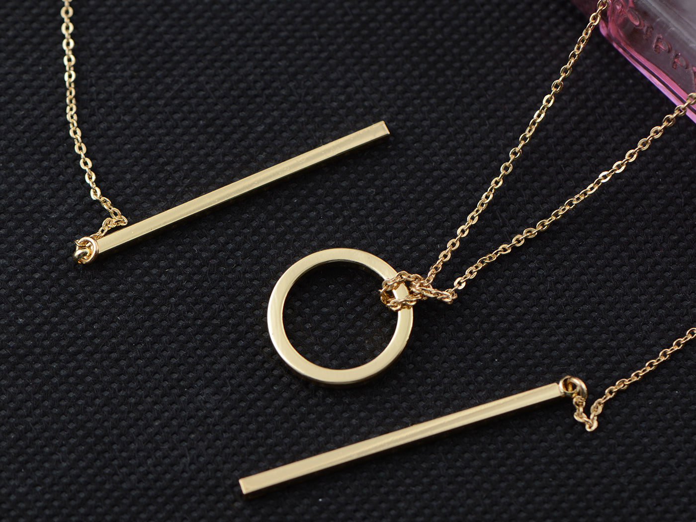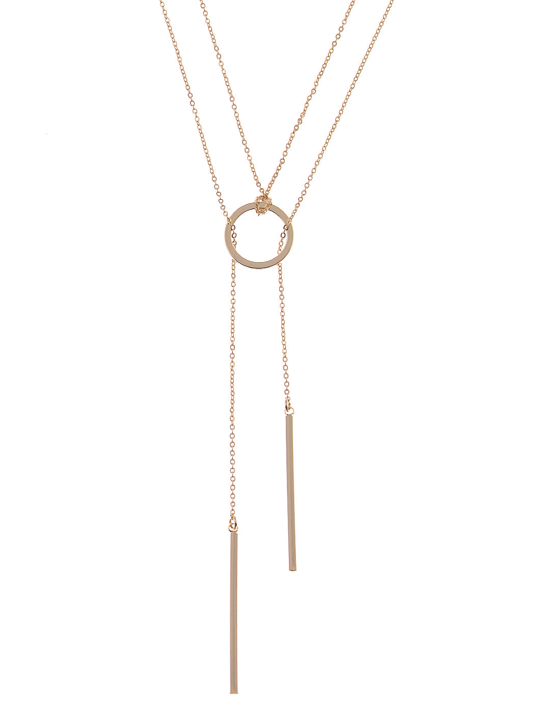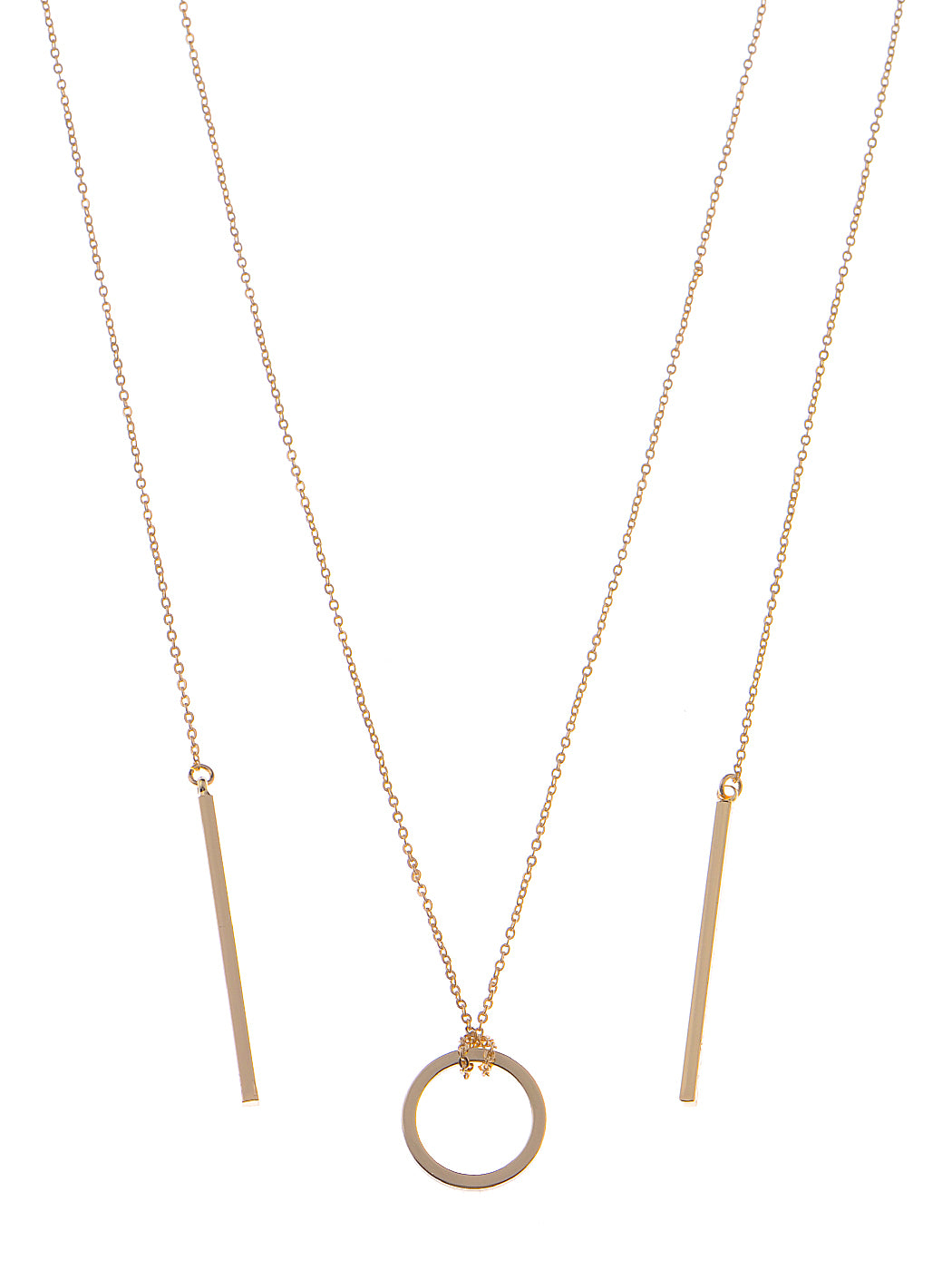 - TRENDY DESIGN - Fashionable for many occasions you can wear this minimalistic necklace with any outfit! Featuring a long gold toned chain that you can wrap and layer around your neck with a circle ring center piece and two delicate bar charms dangling from the sides.