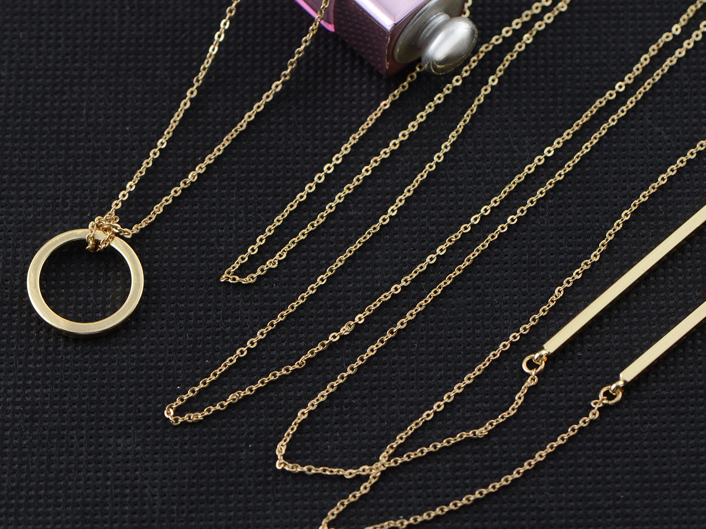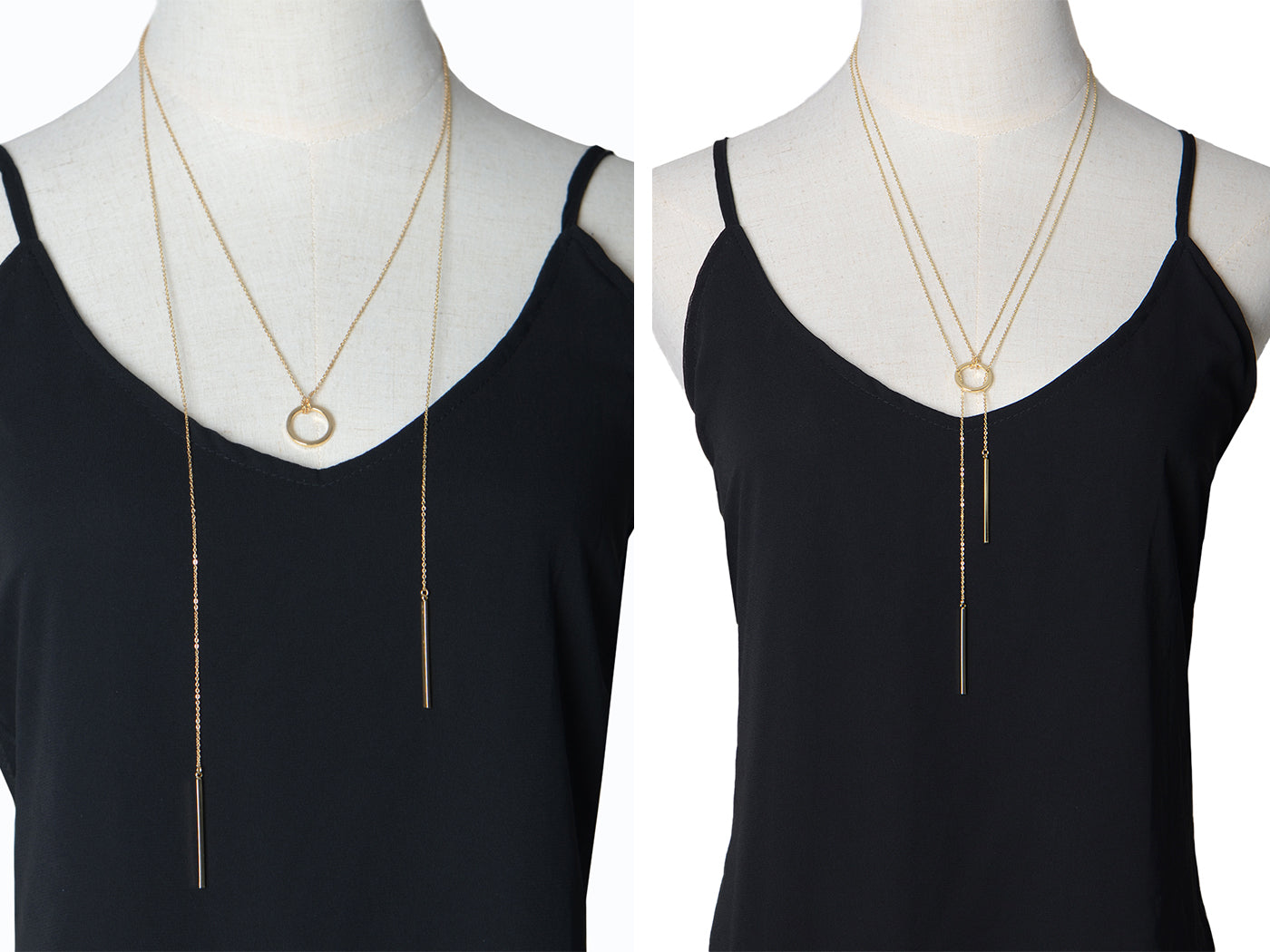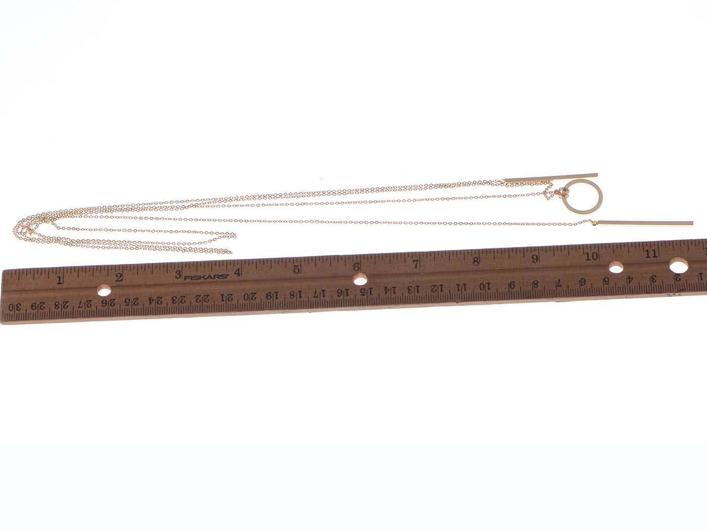 - TRENDY DESIGN - Fashionable for many occasions you can wear this minimalistic necklace with any outfit! Featuring a long gold toned chain that you can wrap and layer around your neck with a circle ring center piece and two delicate bar charms dangling from the sides.