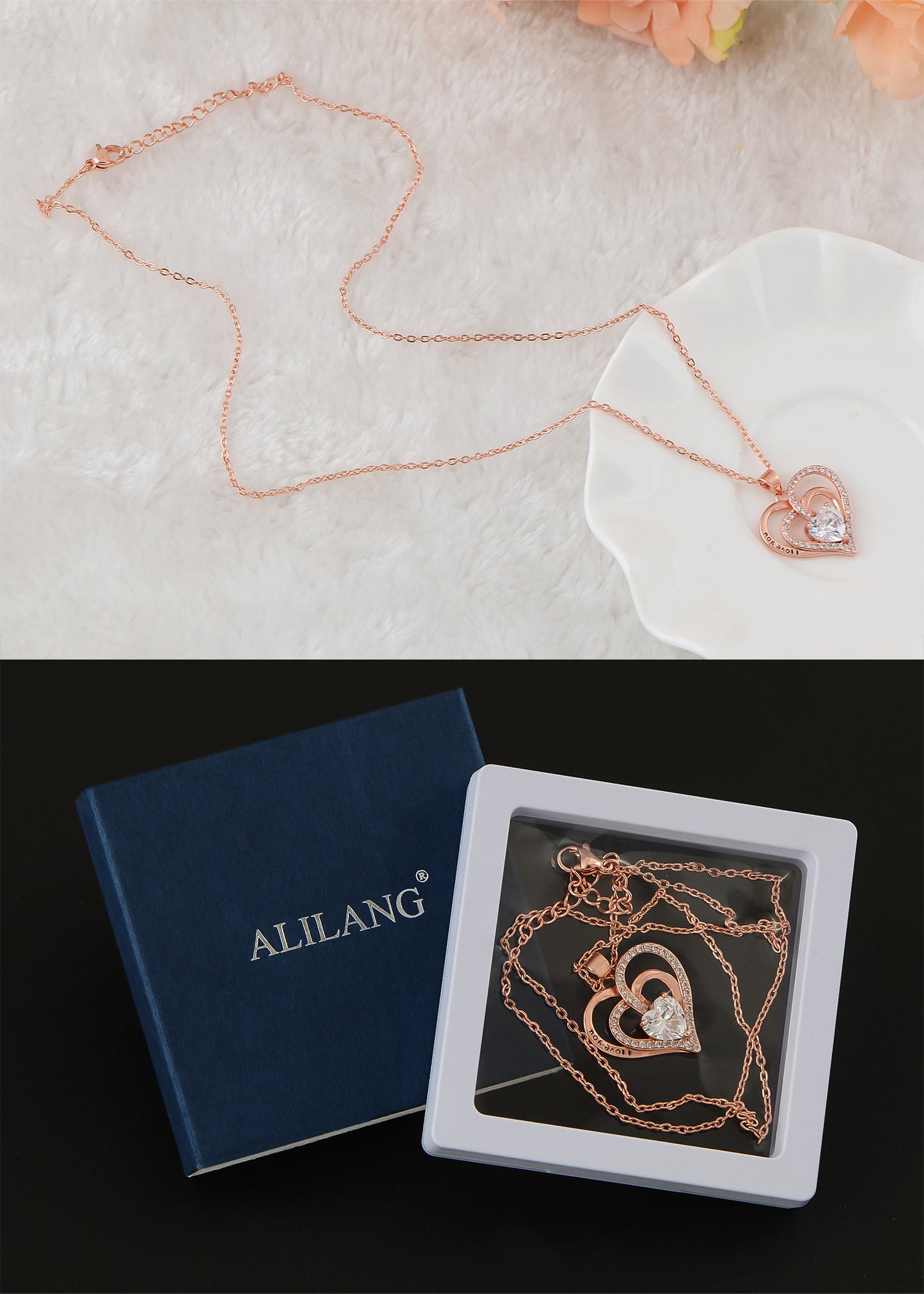 Alilang Zircon Crystal Rhinestone Jewelry Heart Pendant Necklace for Women ¨C Perfect for Wife on Wedding Anniversary, Birthday, Christmas, Valentine's, or Mother's Day