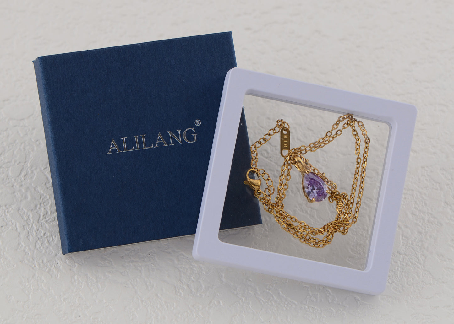 Alilang 18K Gold Plated Sparkly Cubic Zirconia Pendant Necklace for Women Wedding Bridal
