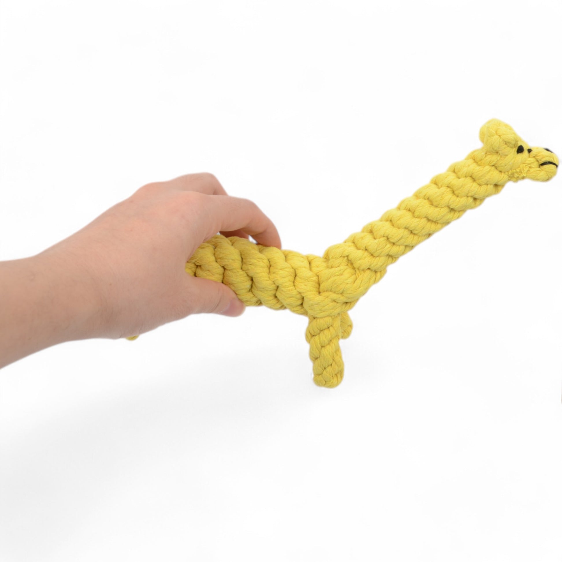 The Durable Dog Rope Chew Toy features a cheerful animal design, perfect for small to medium-sized dogs. Made from durable, pet-safe rope, this toy helps maintain healthy teeth and gums while providing hours of fun. Its adorable animal shape makes it a delightful addition to your dog's toy collection, offering mental stimulation and physical activity. Perfect for chewing, fetching, or tug-of-war, this toy is designed to keep your dog engaged and happy.