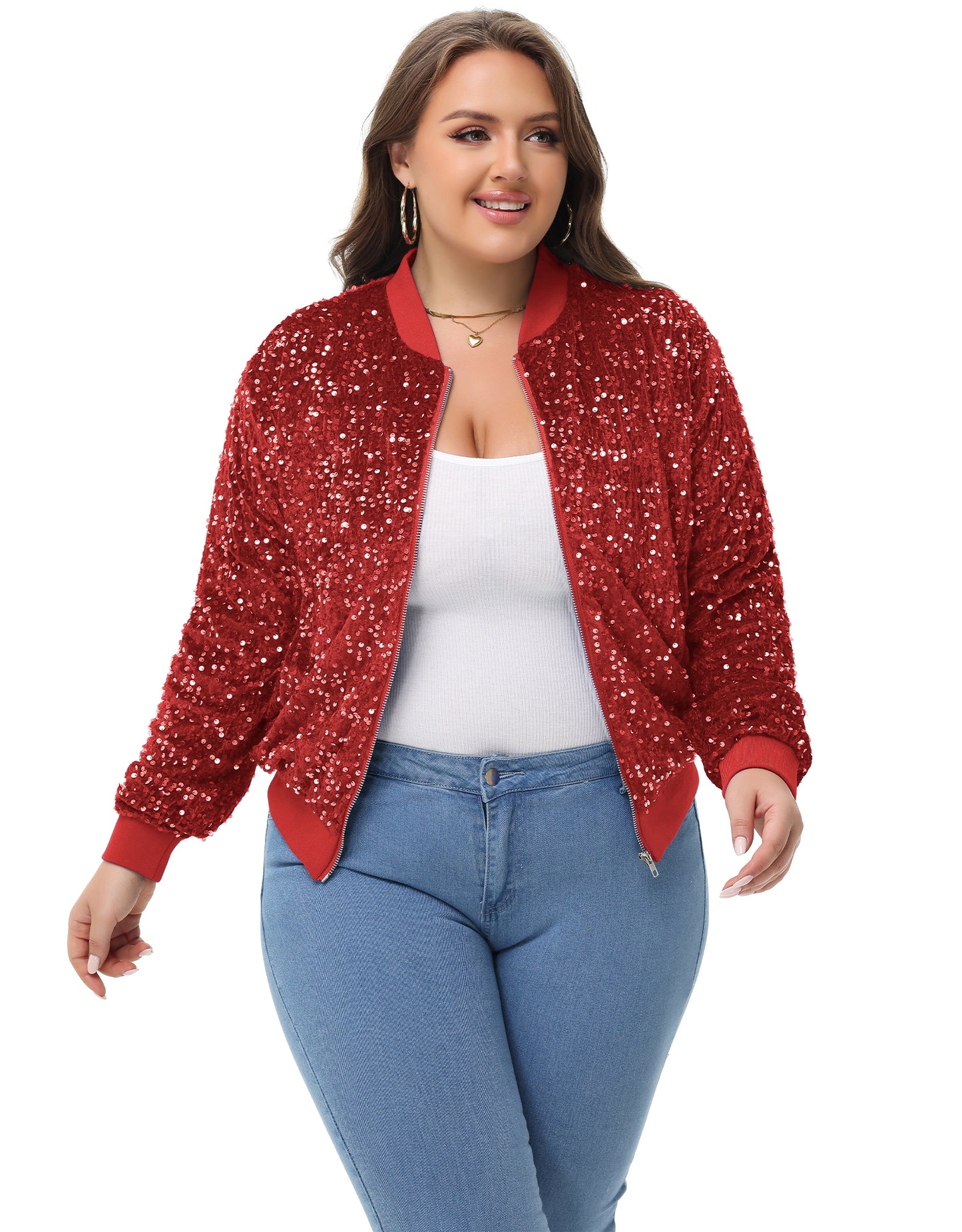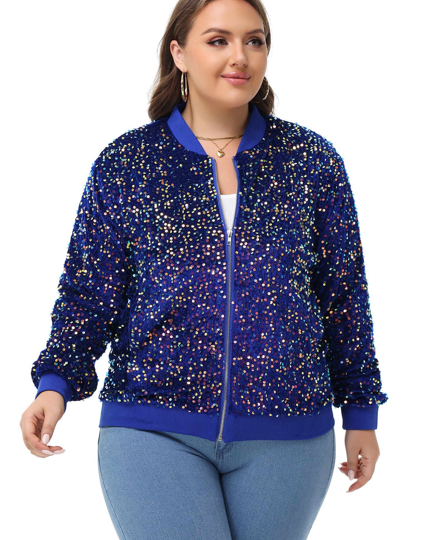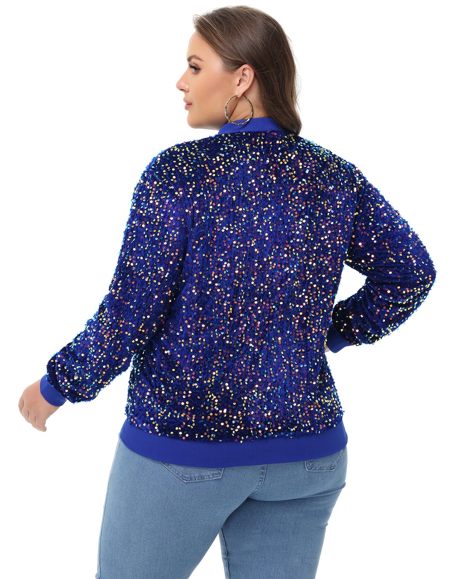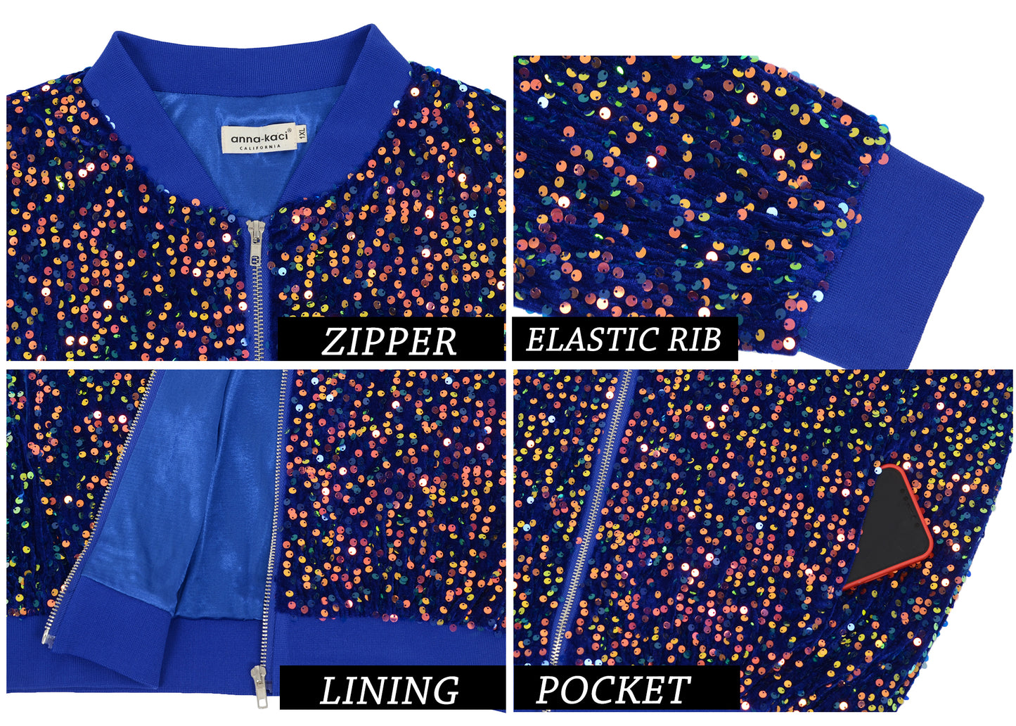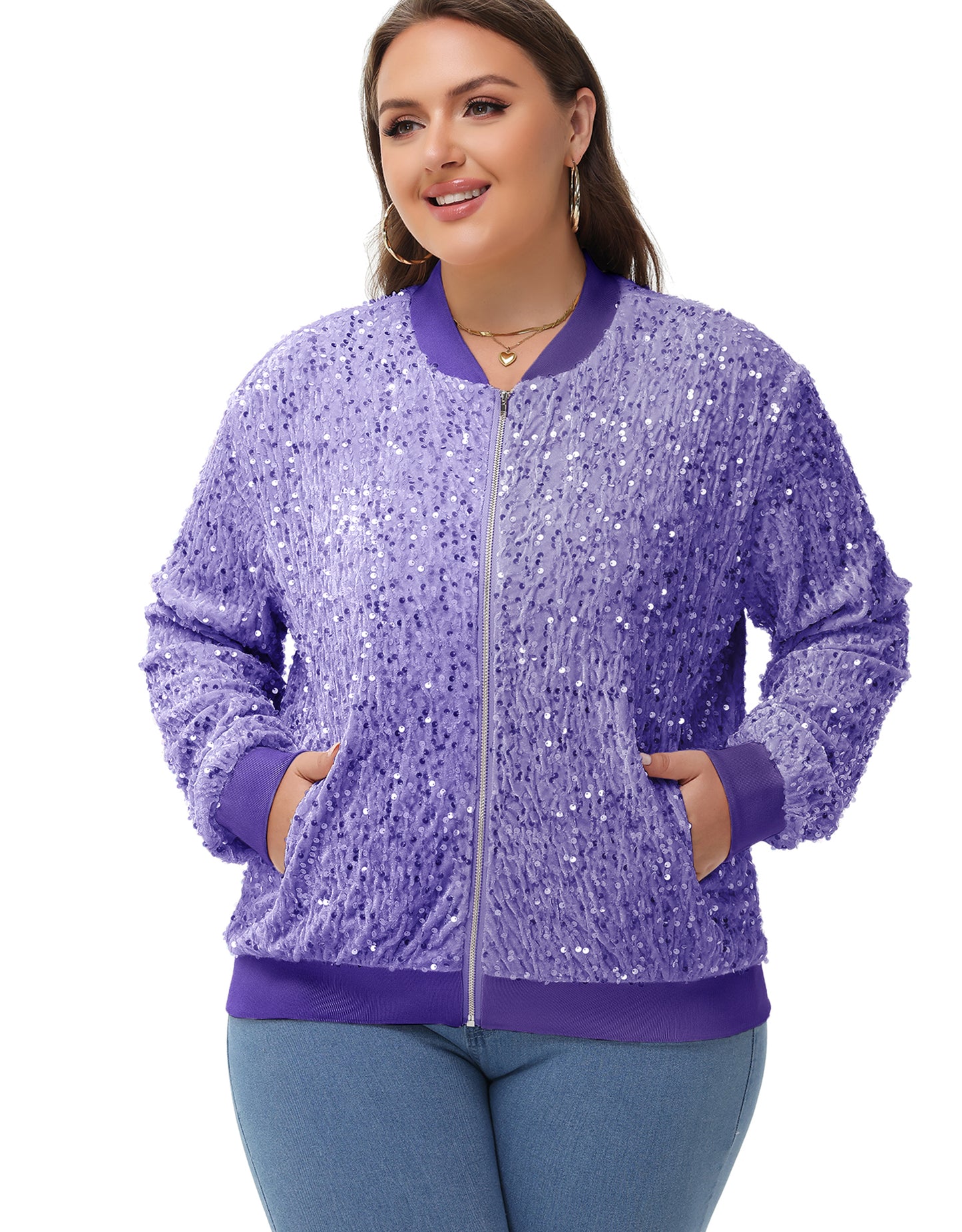 Anna-Kaci Women's Sequin Jacket Plus Size Sparkly Zip Bomber Coat With Pockets For Concert Party