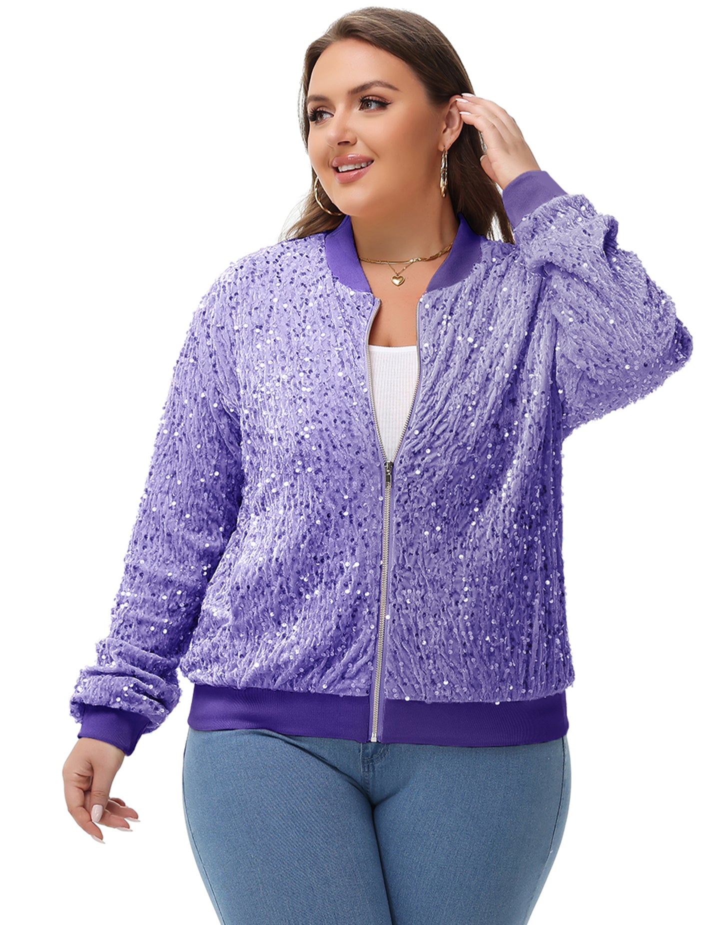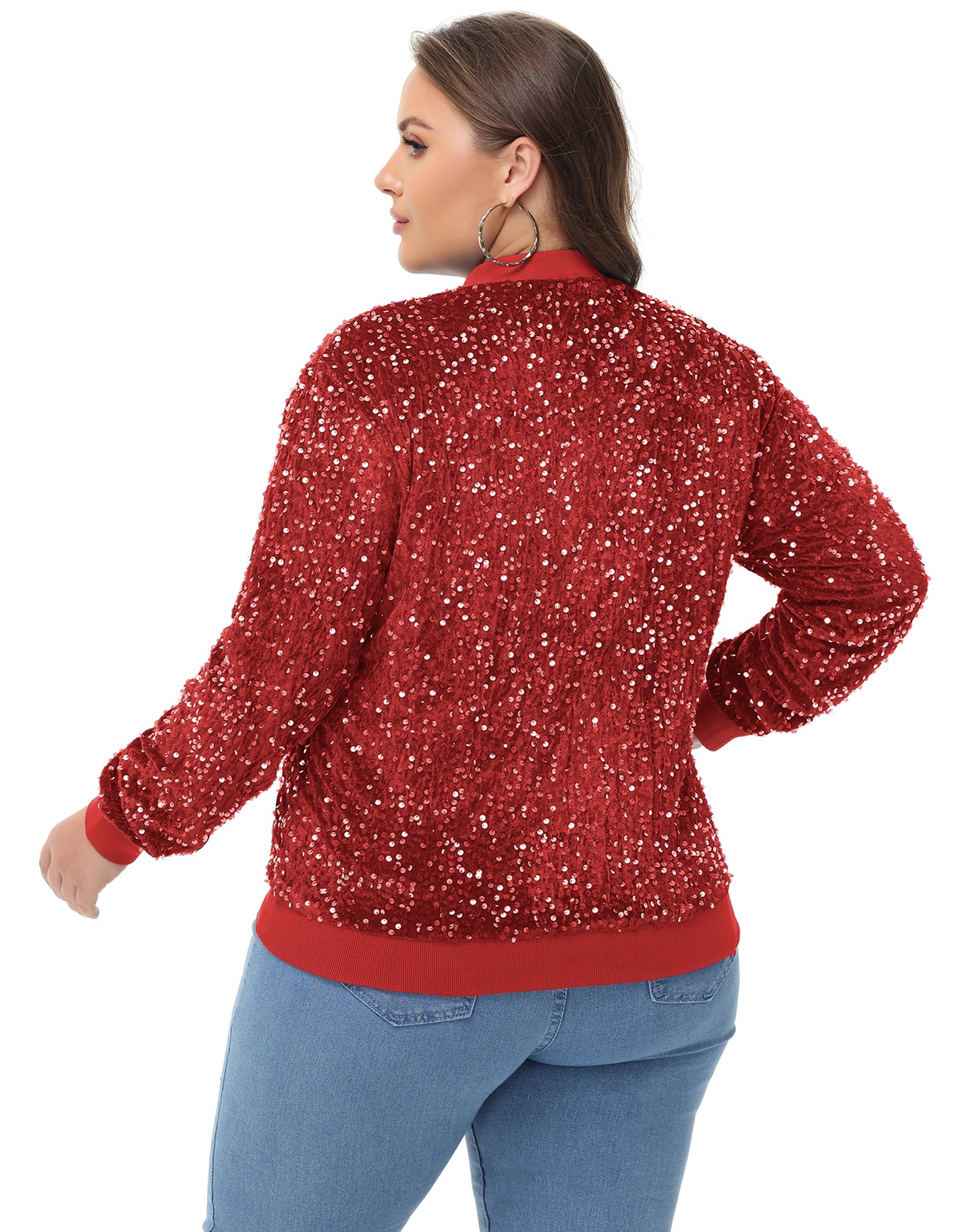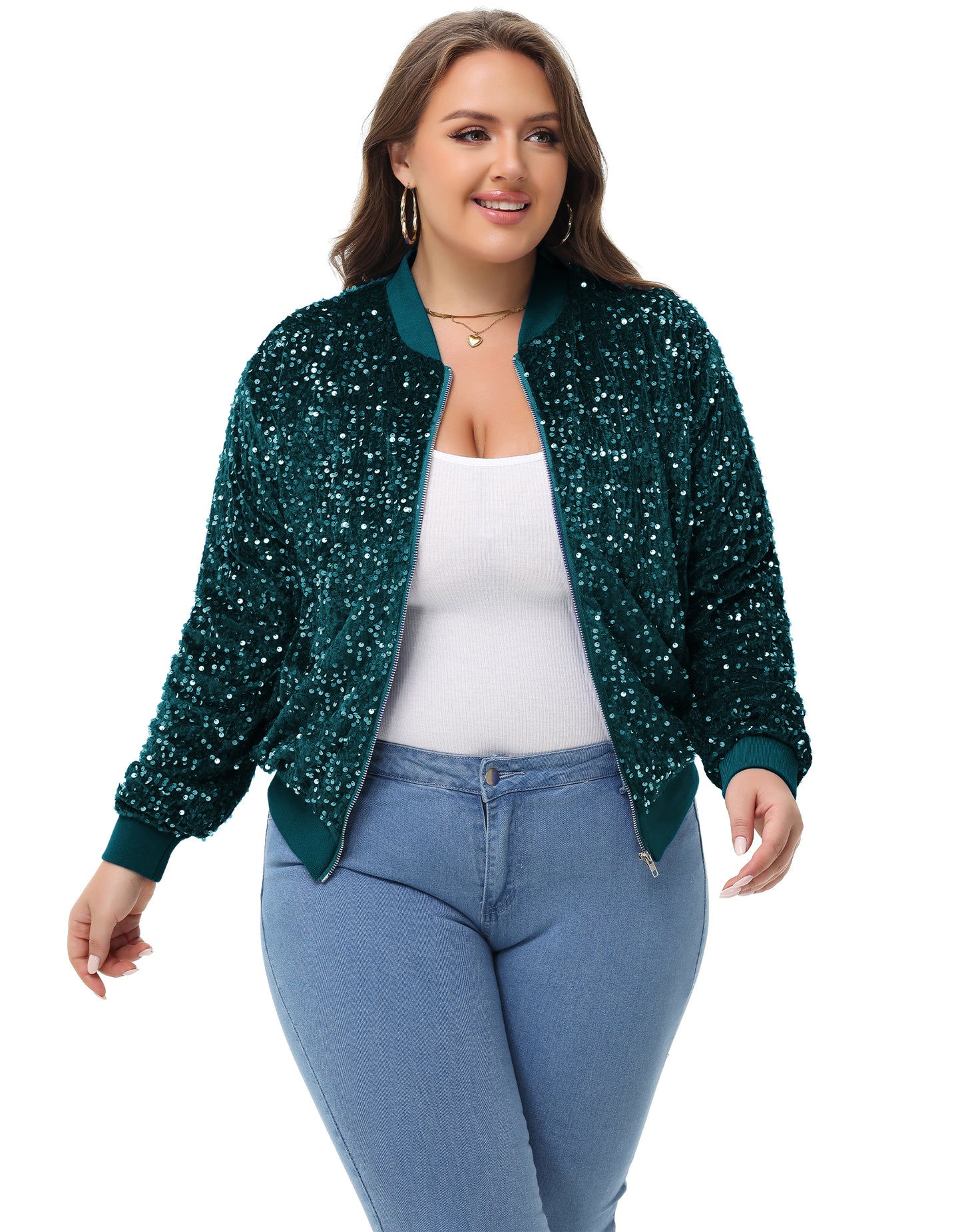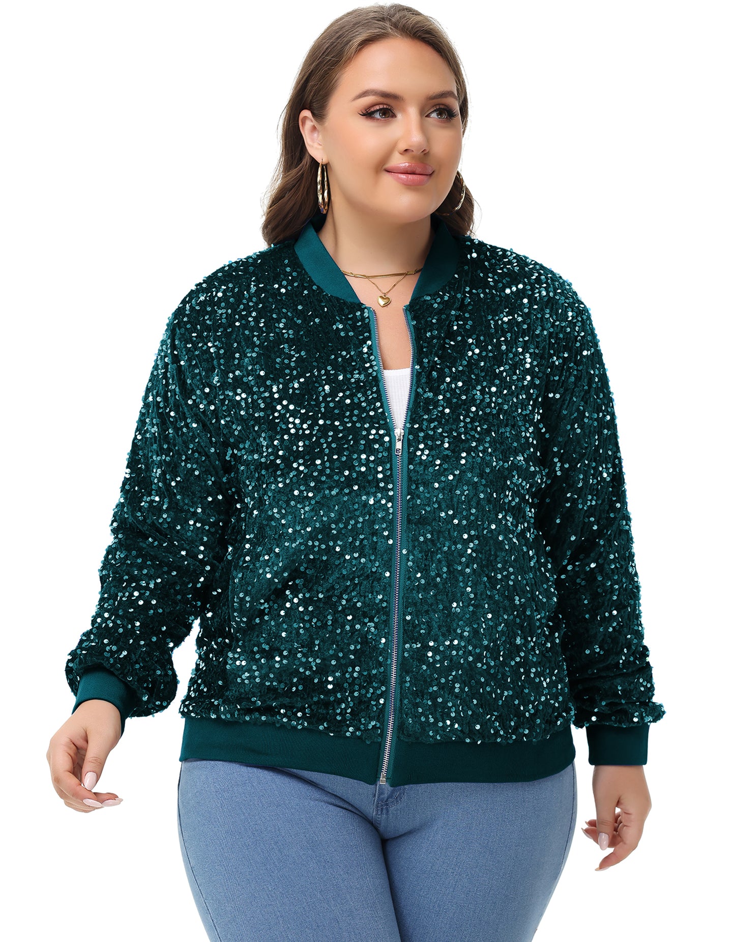 Anna-Kaci Women's Sequin Jacket Plus Size Sparkly Zip Bomber Coat With Pockets For Concert Party