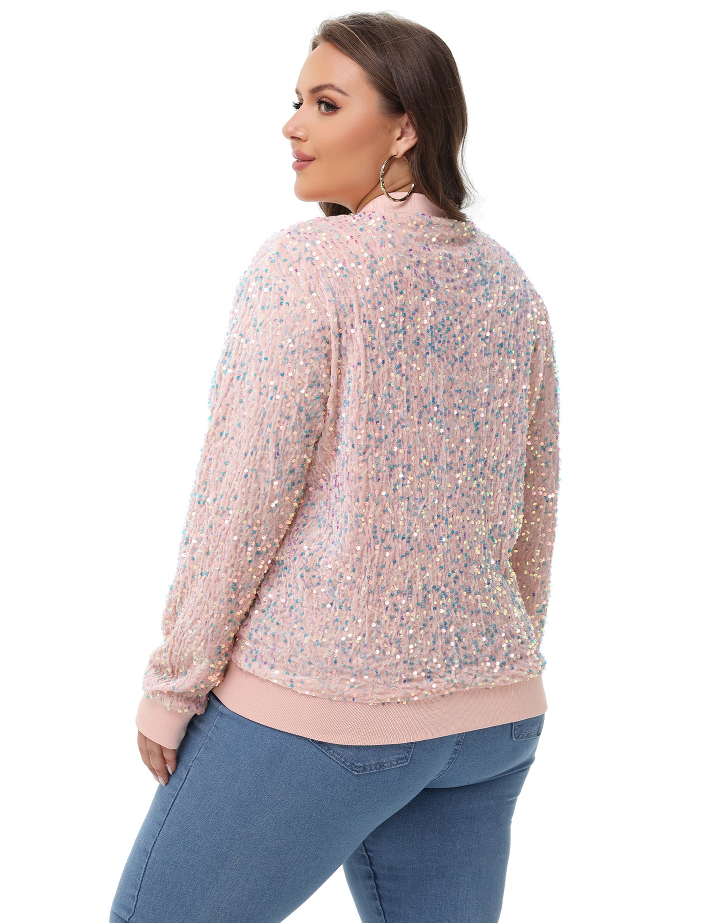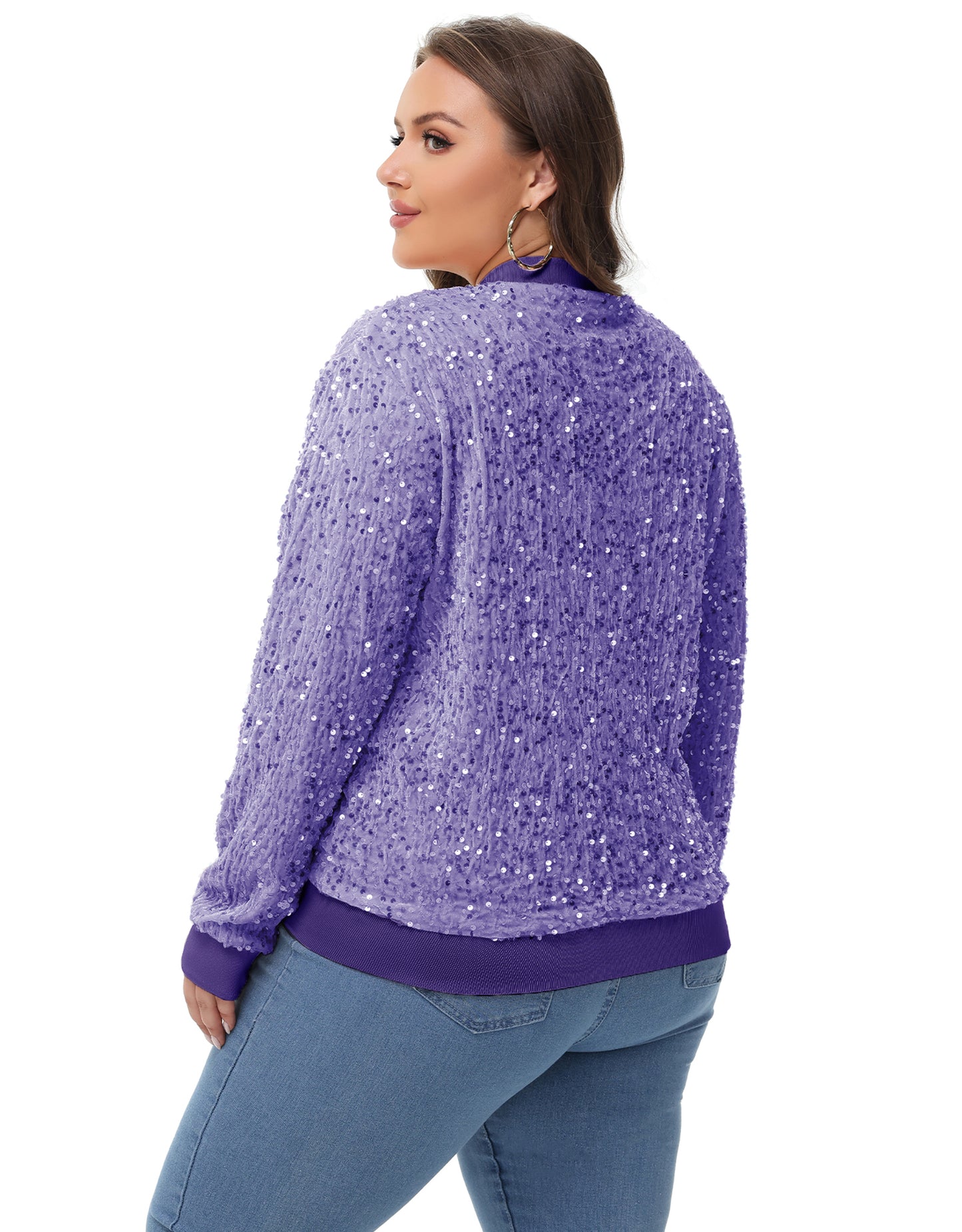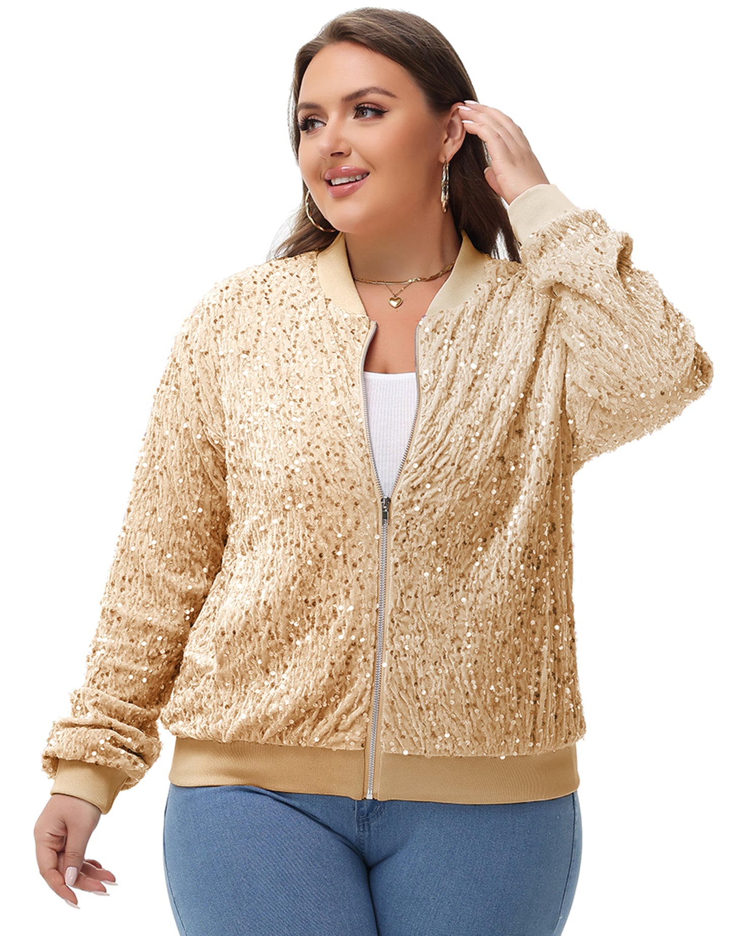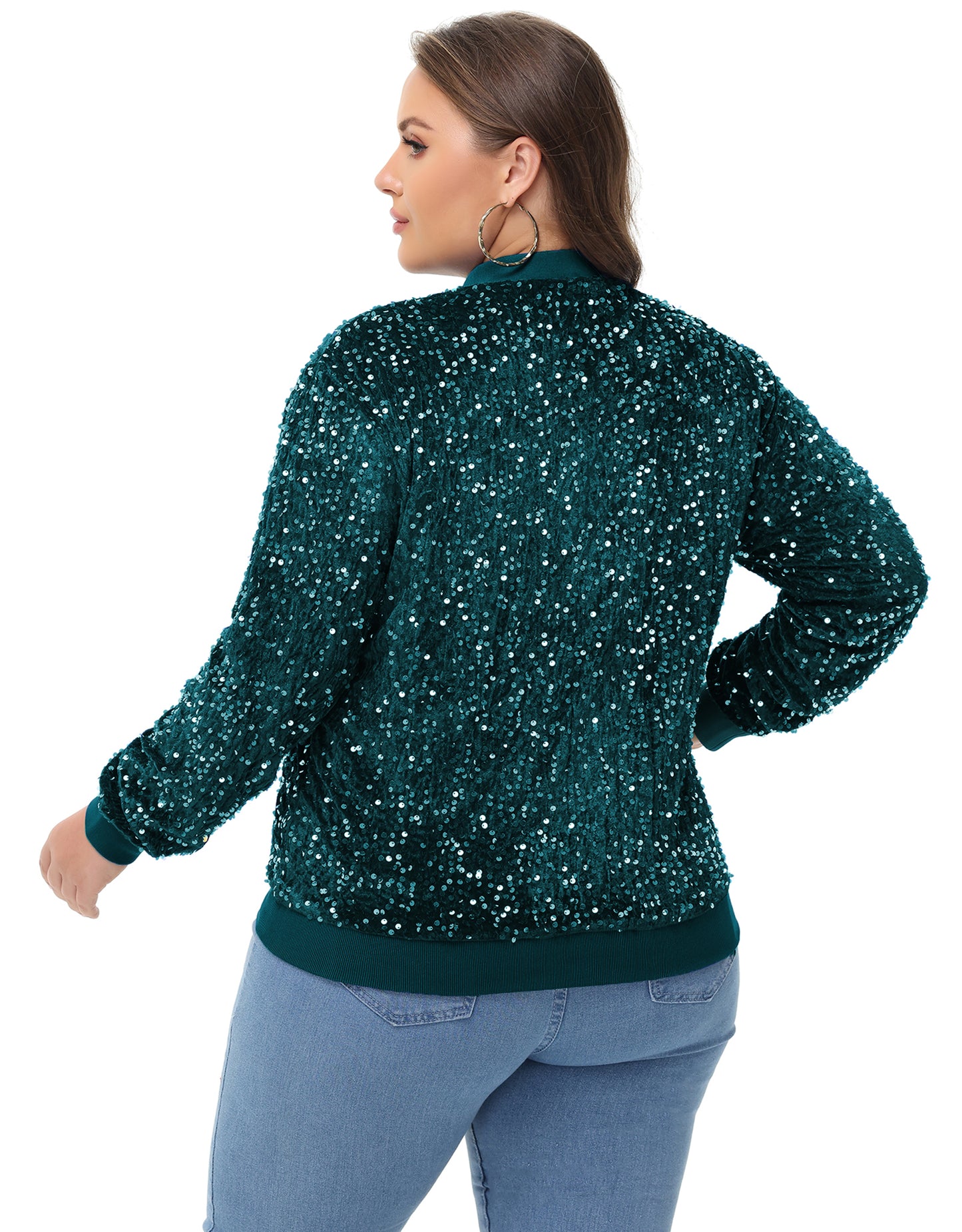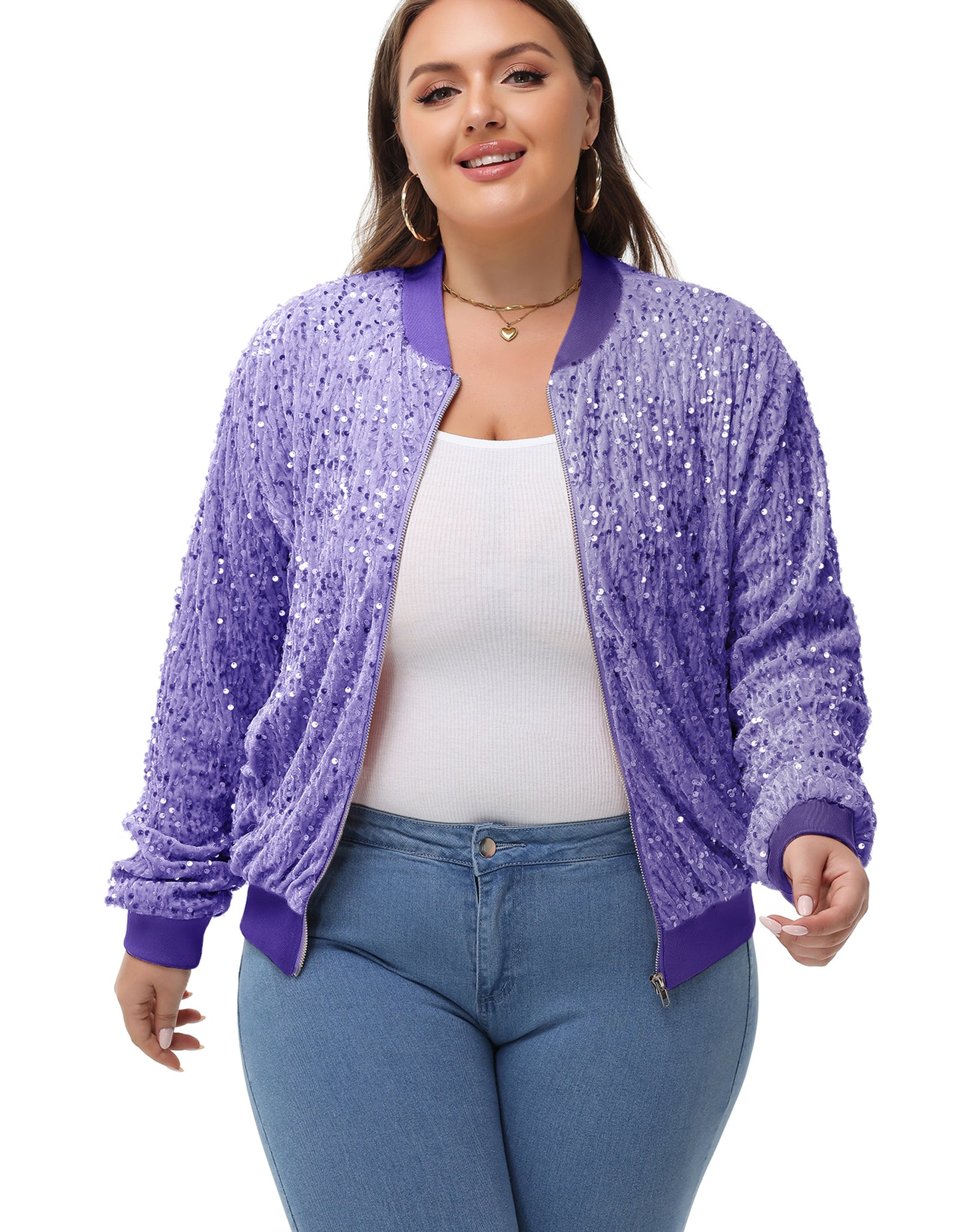 Anna-Kaci Women's Sequin Jacket Plus Size Sparkly Zip Bomber Coat With Pockets For Concert Party
