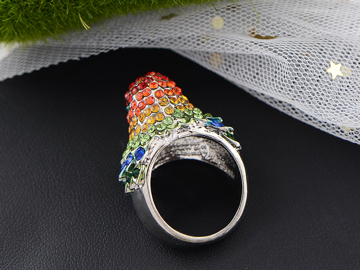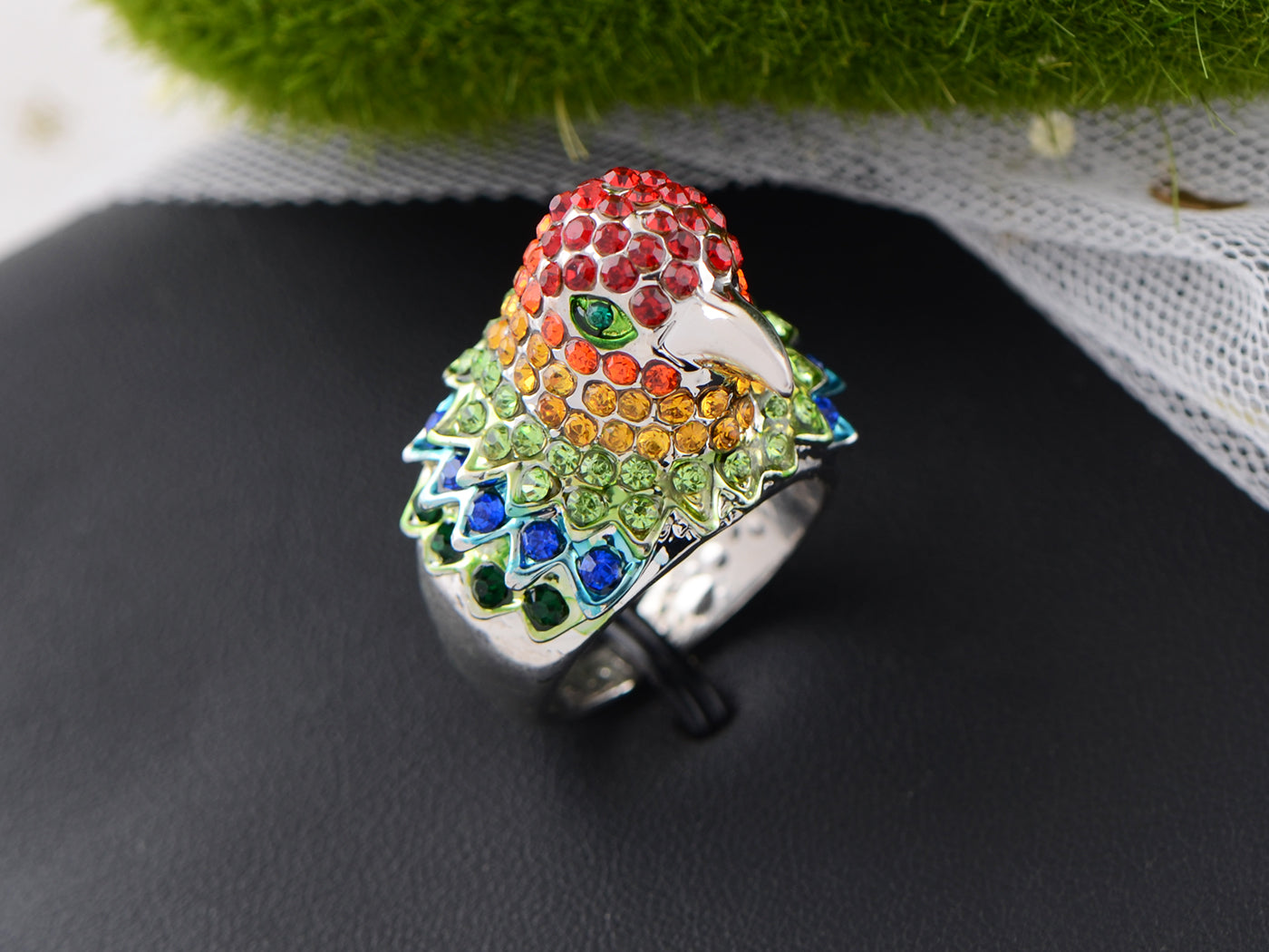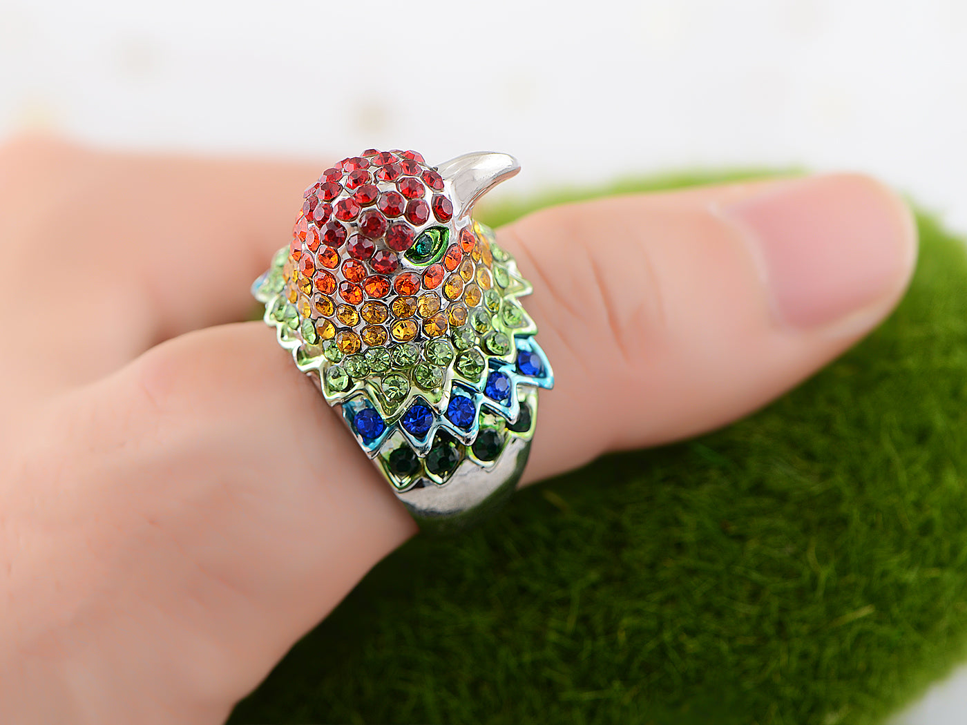 UNIQUE DESIGN - Beautiful bird shape ring embedded with colorfulcrystal rhinestones. The details are incredible making this ring more attractive.