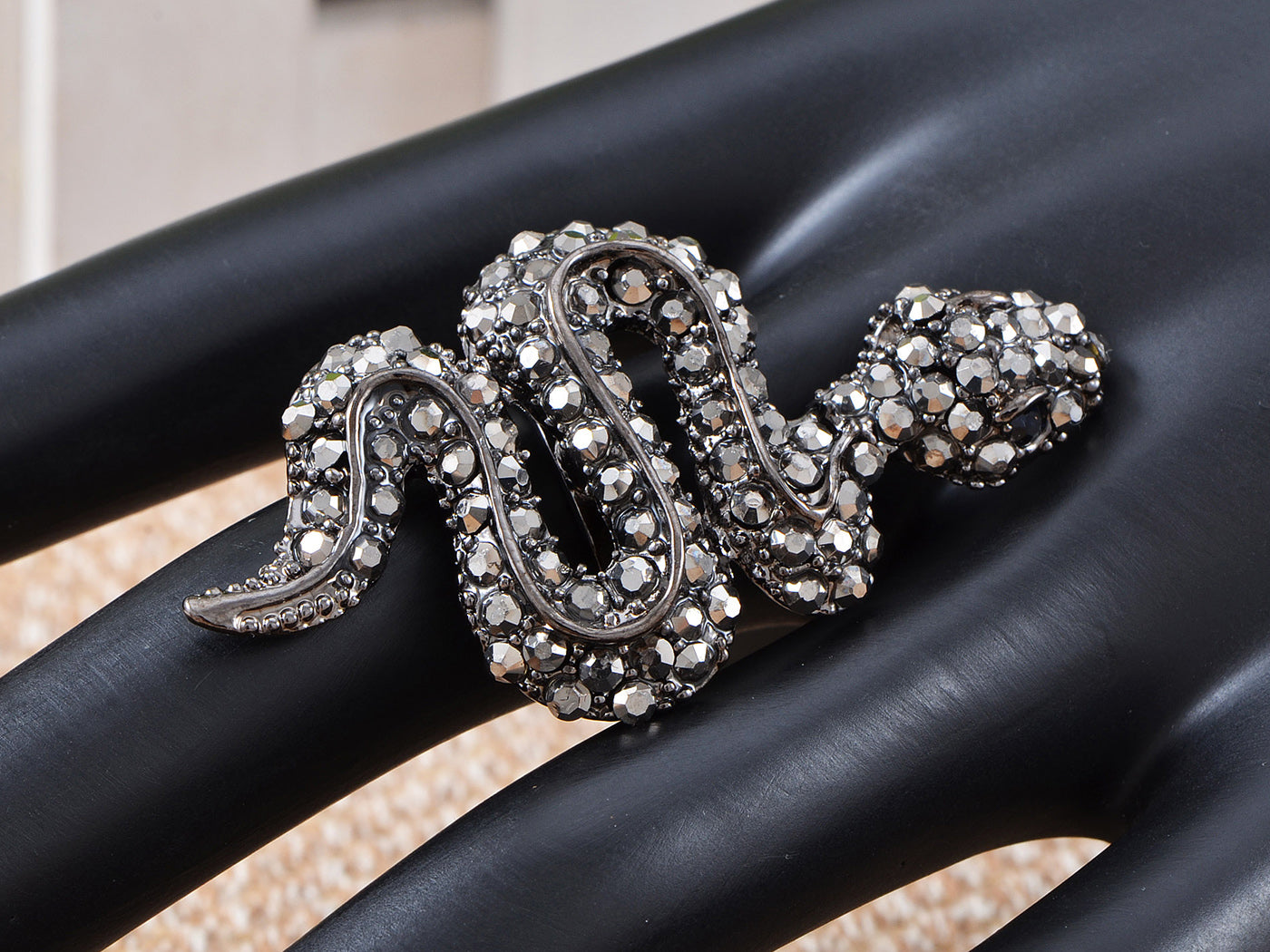 Brilliant Black Hissing Angry Cunning Face Snake Wrap Ring