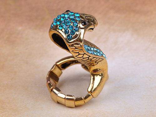 - Vivid Cobra Ring.this gold ring is from a cobra featuring blue rhinestones,and has two black eyes.the ring is its' body.