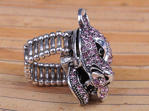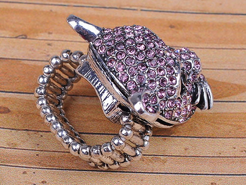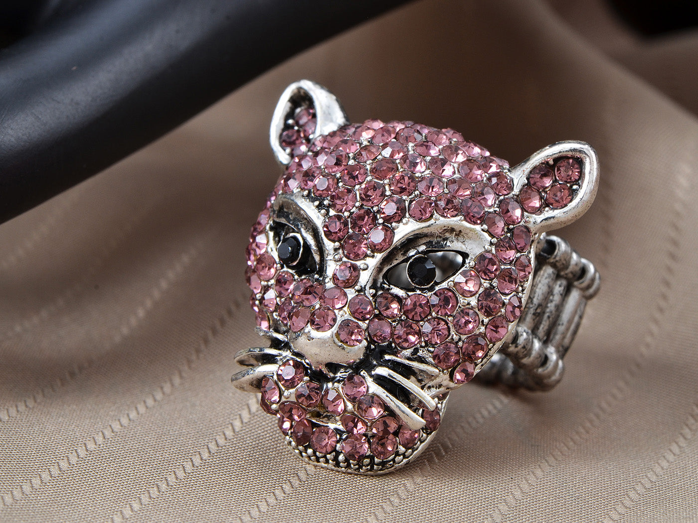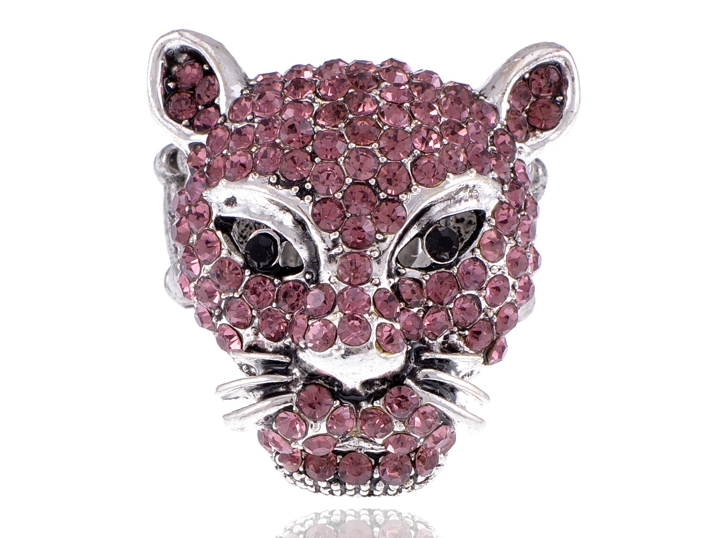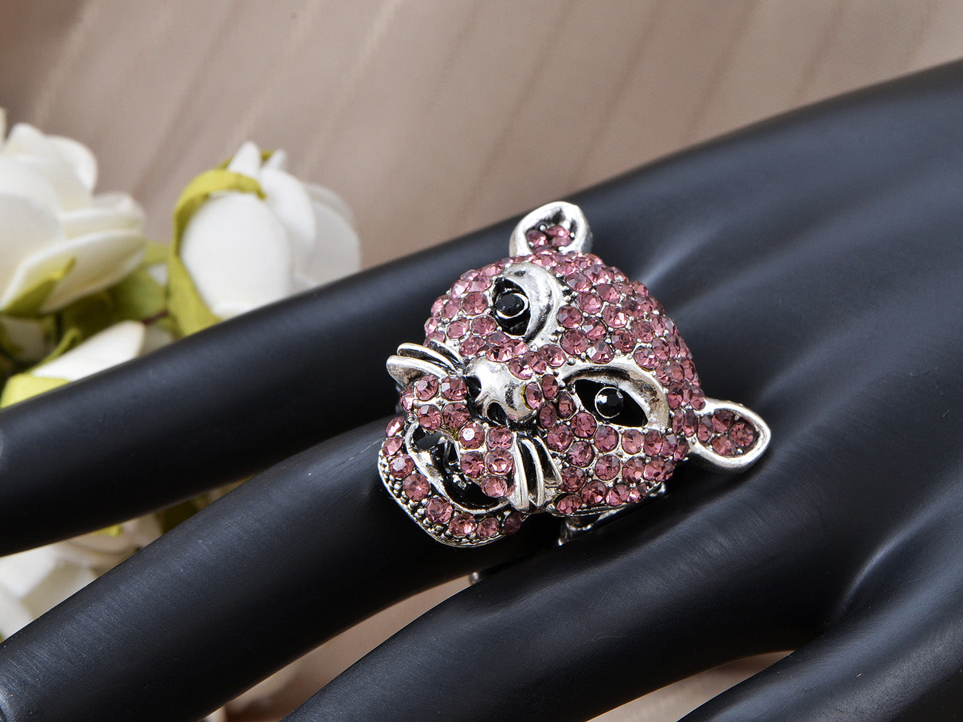 Pink Leopard Cheetah Fierce Wild Animal Head Ring
