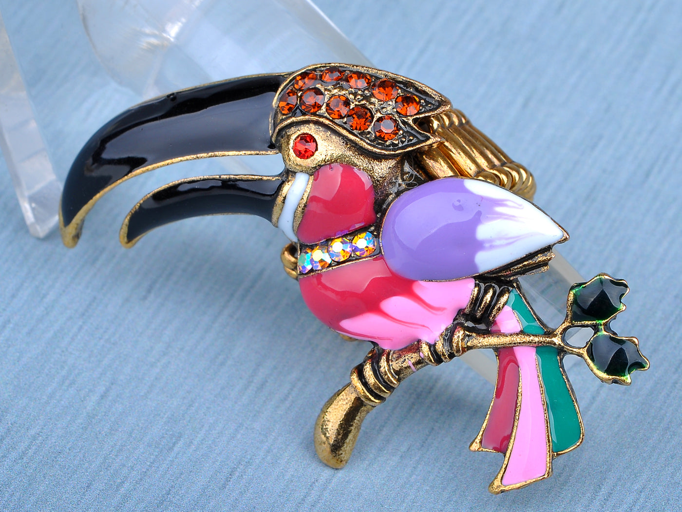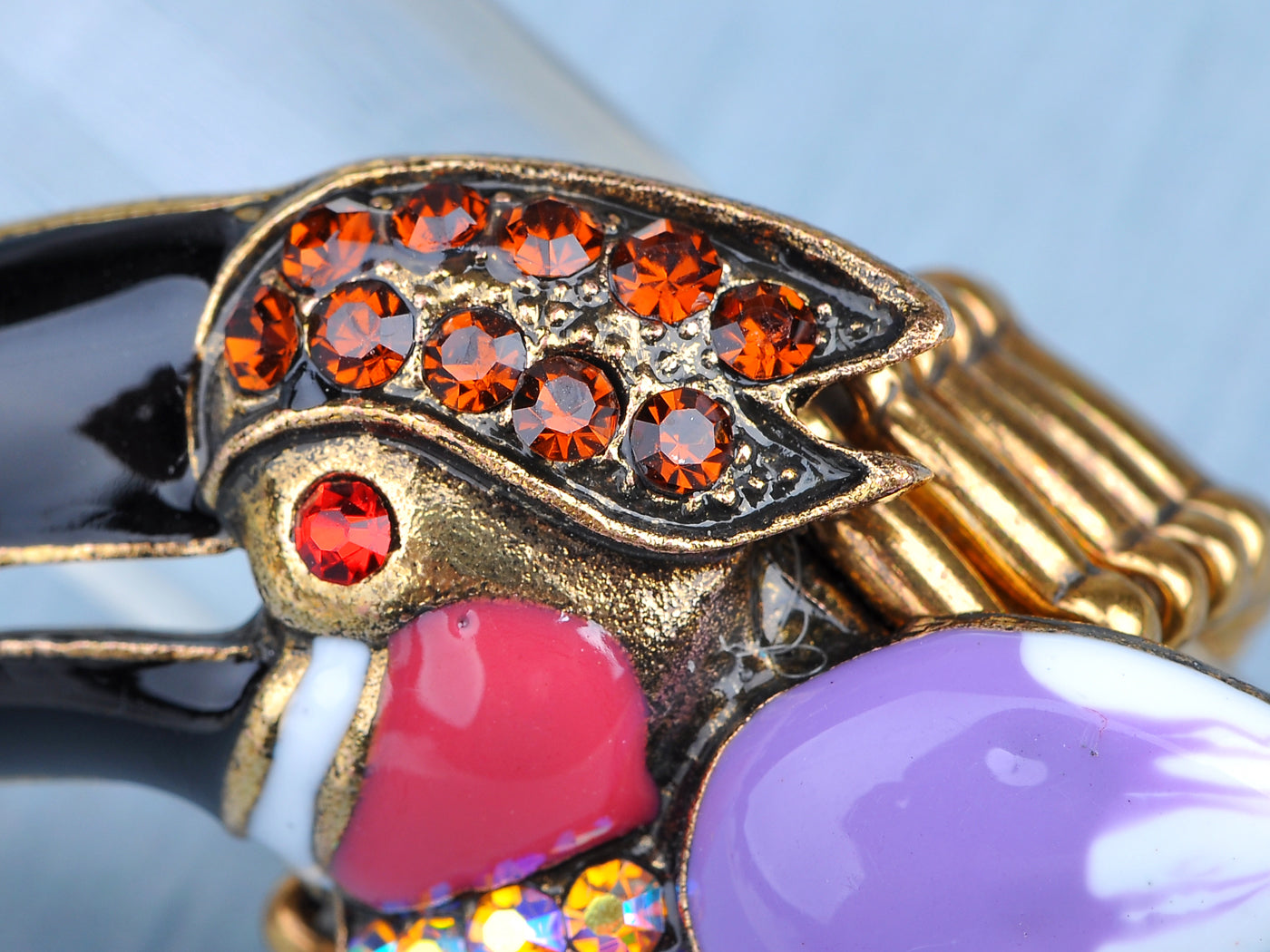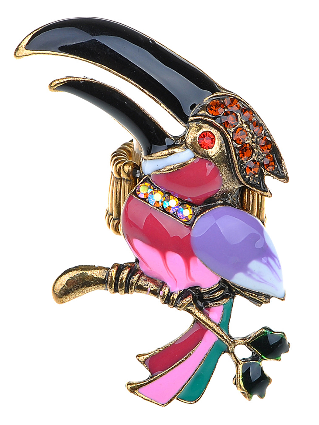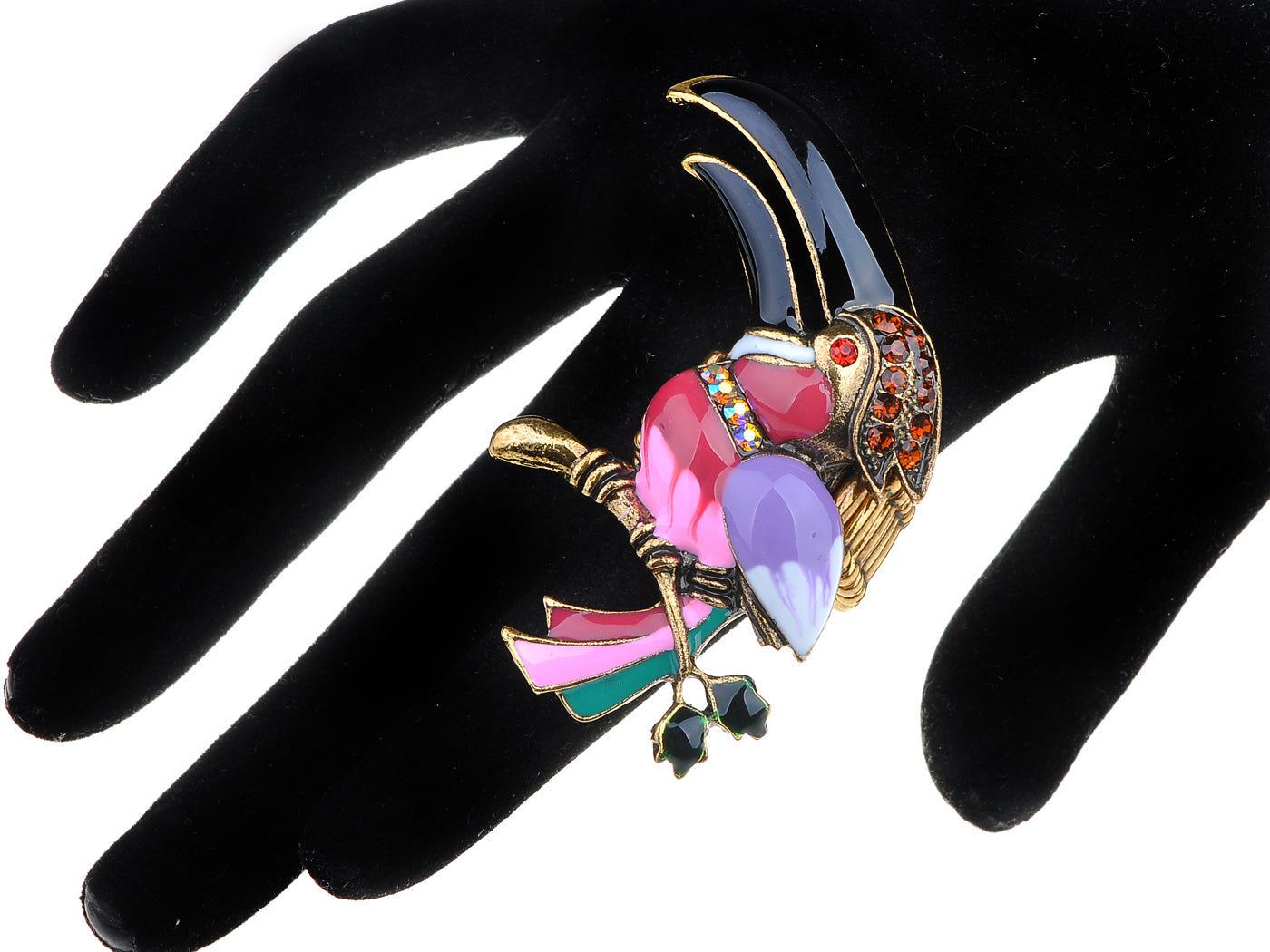 - UNIQUE DESIGN - Adjustable ring featuring toucan design with multicolored rhinestones and painted glossy enamel.