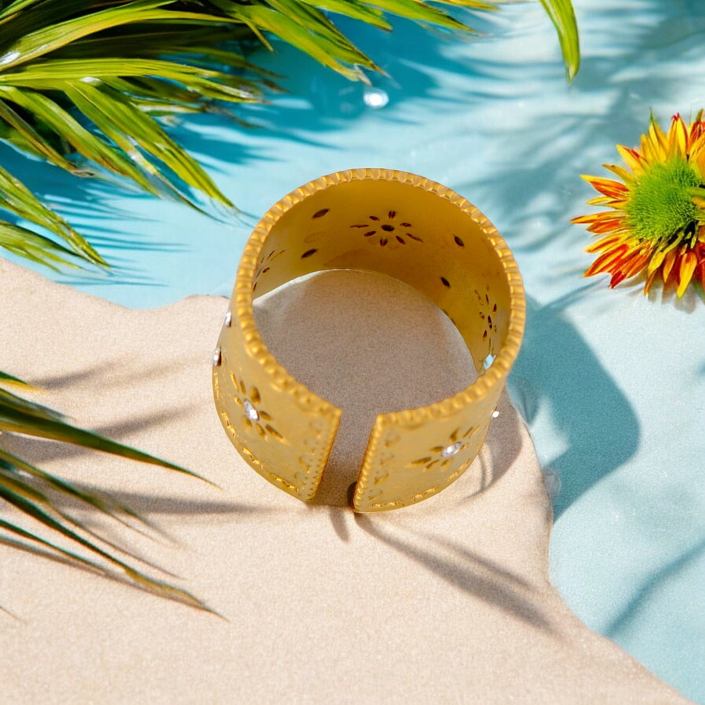 Design: Features a chunky, hammered dome shape with a polished 18K gold-plated finish