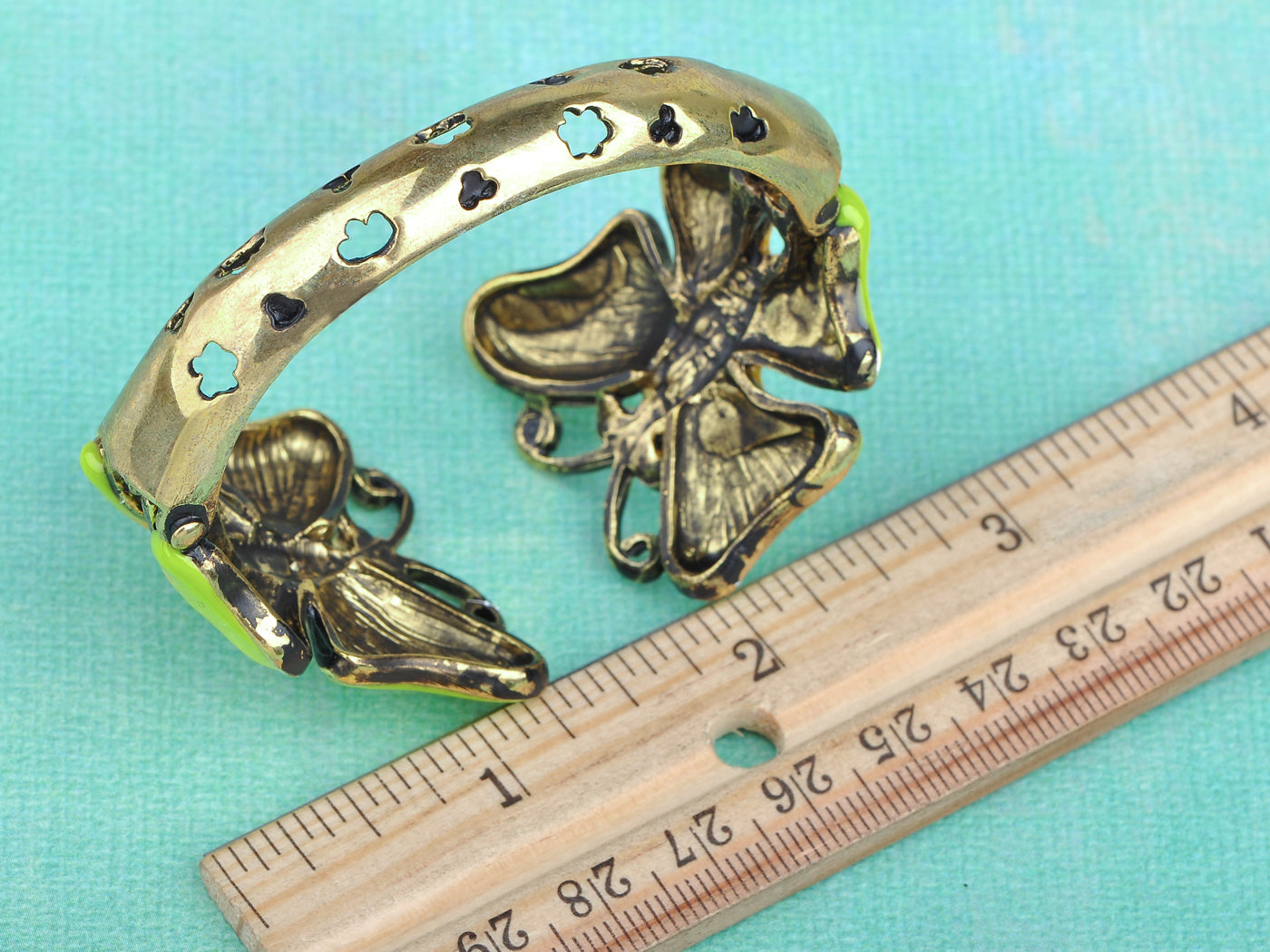 Antique Like Citrus Enamel Ab Twin Butterfly Bangle Bracelet