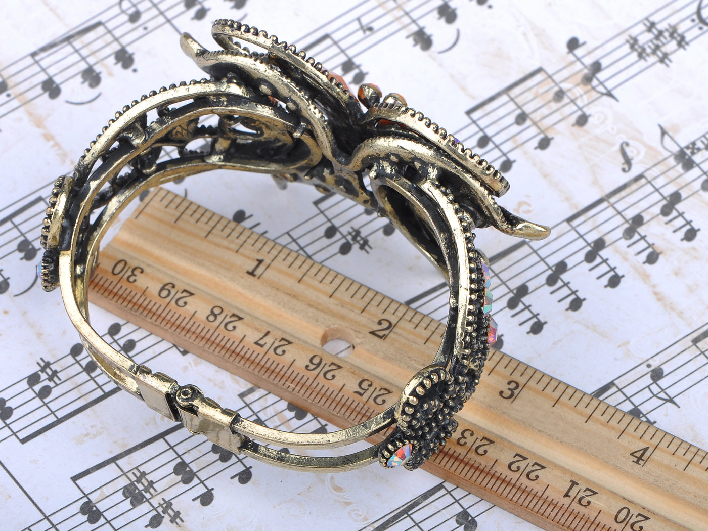 Antique Gold Topaz Colored Orange Heart Butterfly Bangle Bracelet