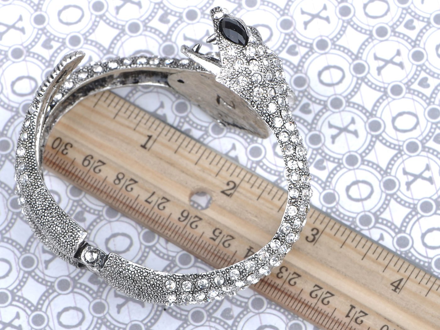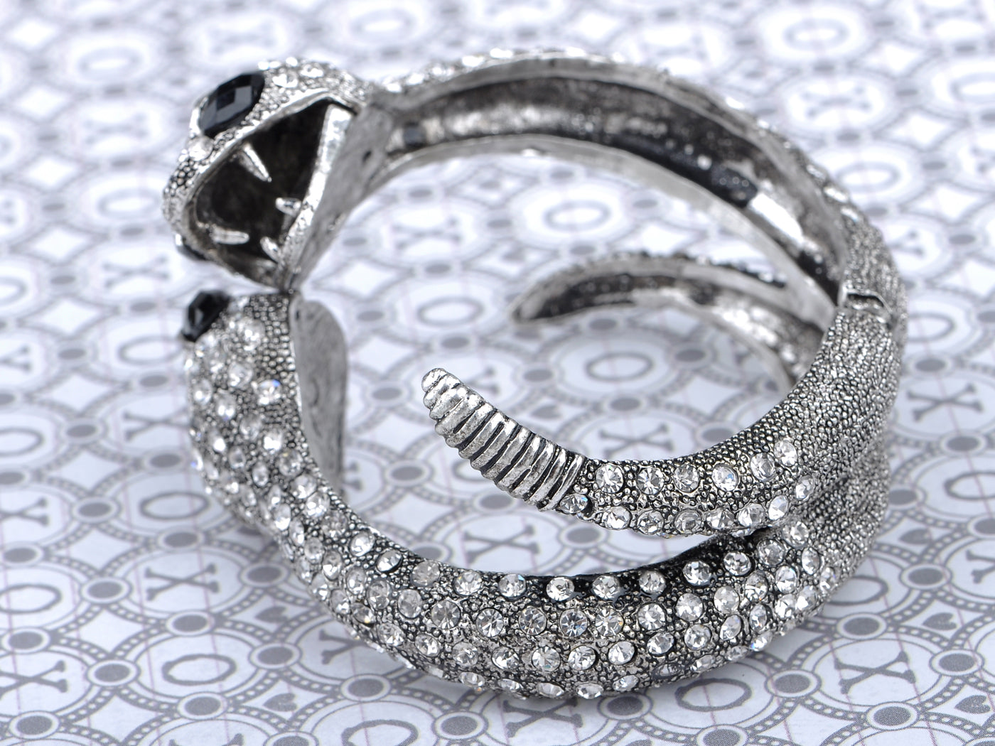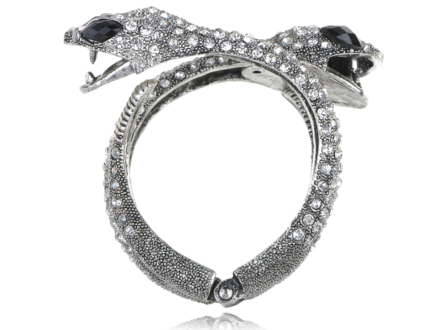 - VIBRANT DESIGN - Funky vintage inspired bracelet featuring a twins couple snake design, coiling around your wrist band. Enchased with sparkly clear crystal rhinestones.There are two stunning black crystal rhinestones at the eyes.