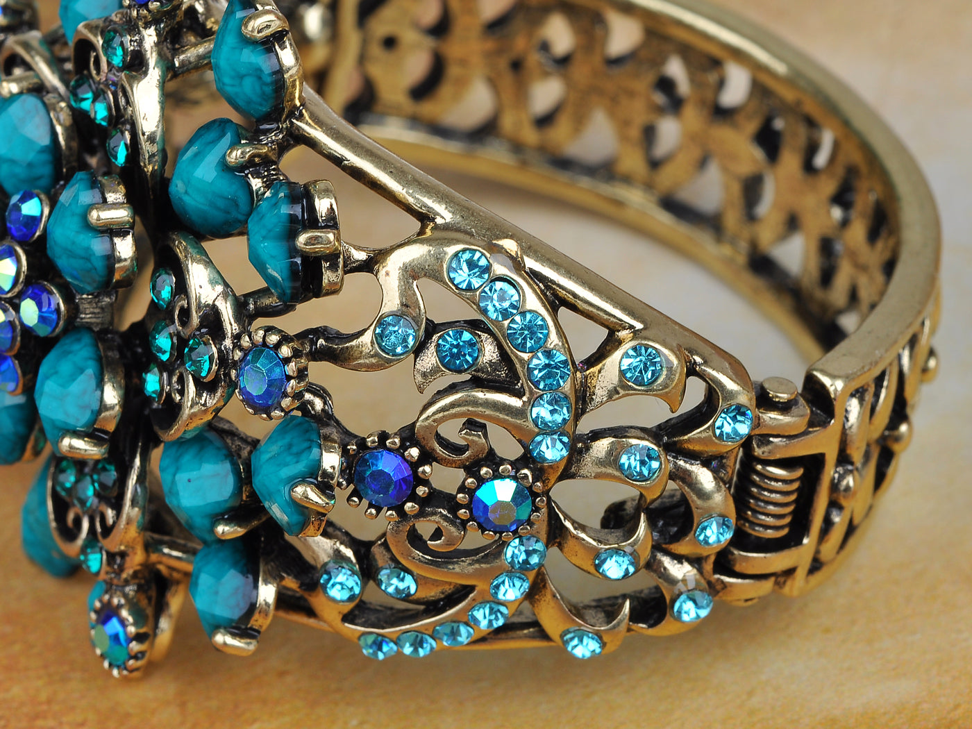Fun Turquoise Bead Flower Design Bracelet Bangle