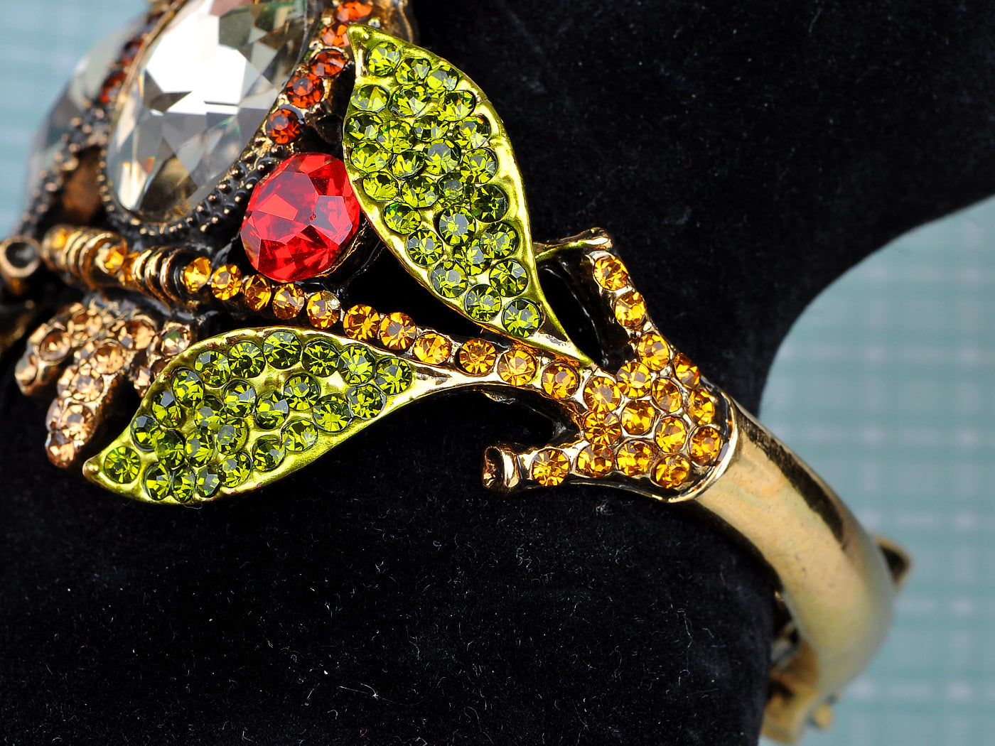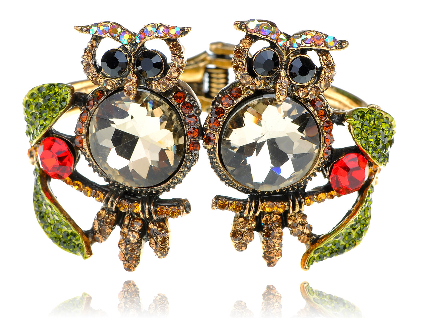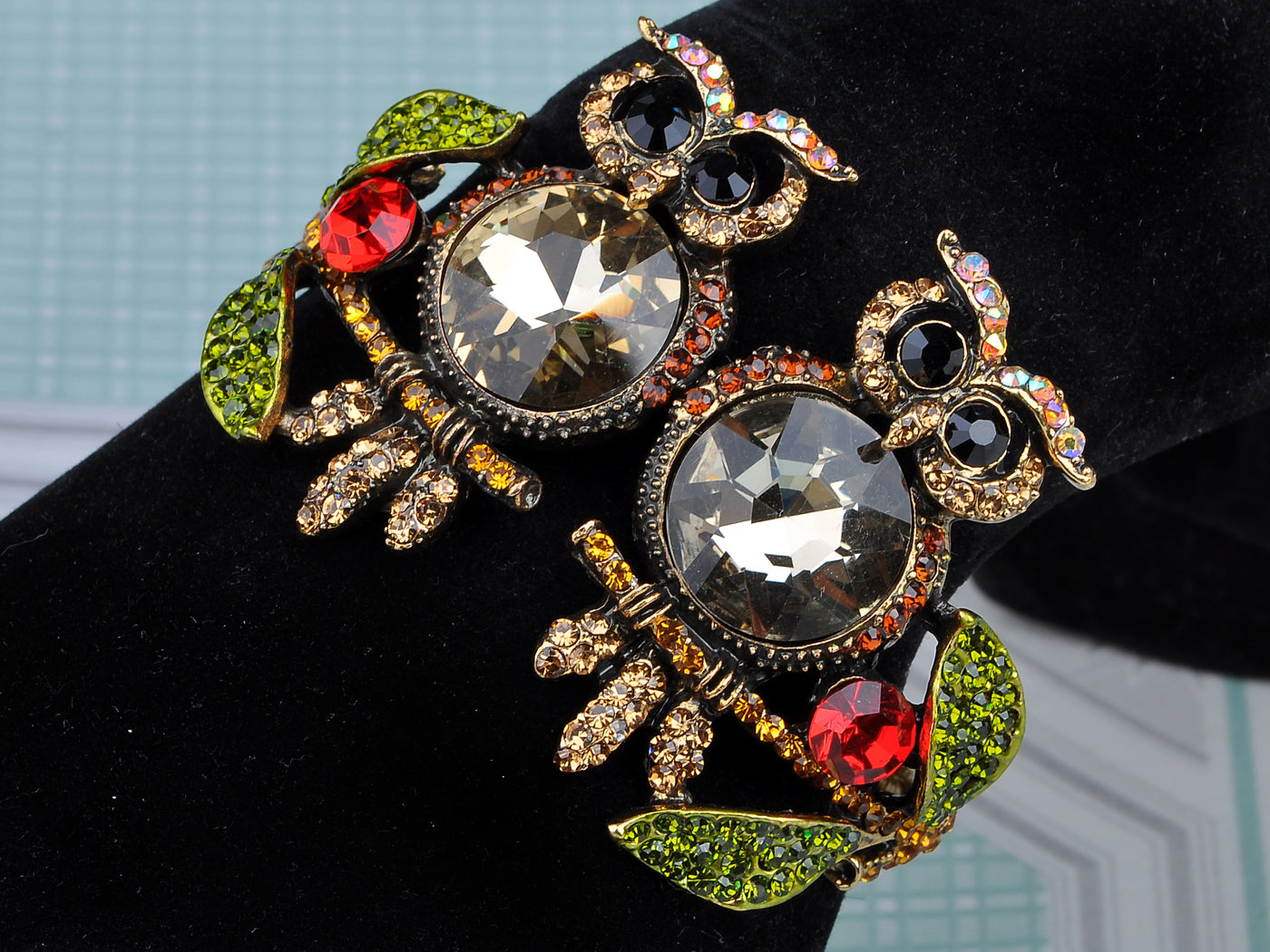 - UNIQUE DESIGN - Bracelet featuring owl and branch design with multicolored rhinestones and gemstones.