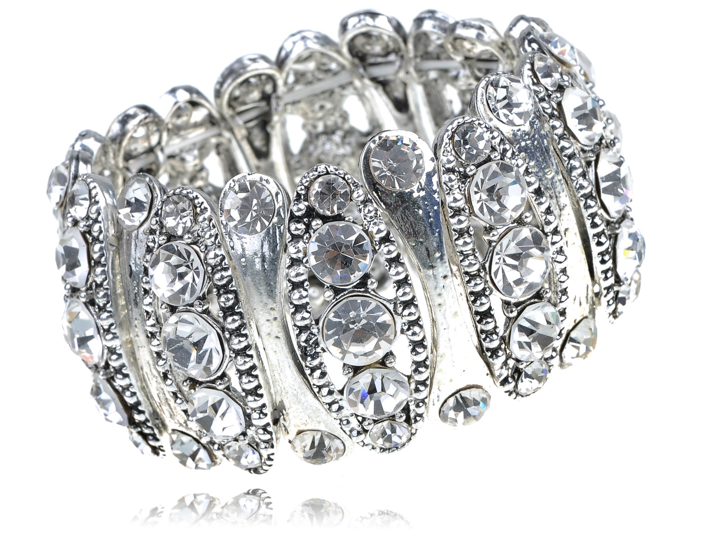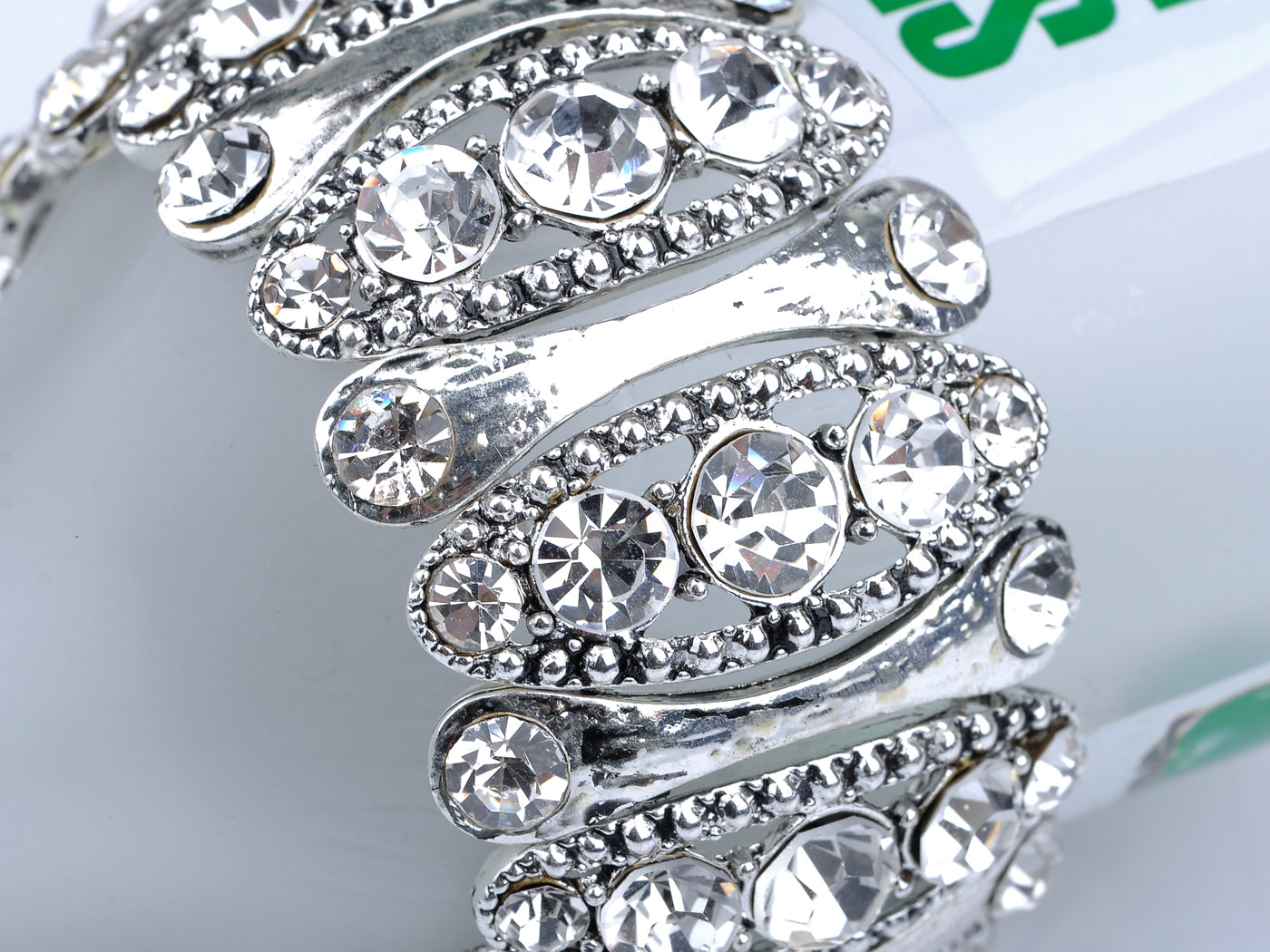 - STUNNING DESIGN - A lovely silver tone bracelet containing clear crystal rhinestones throughout.