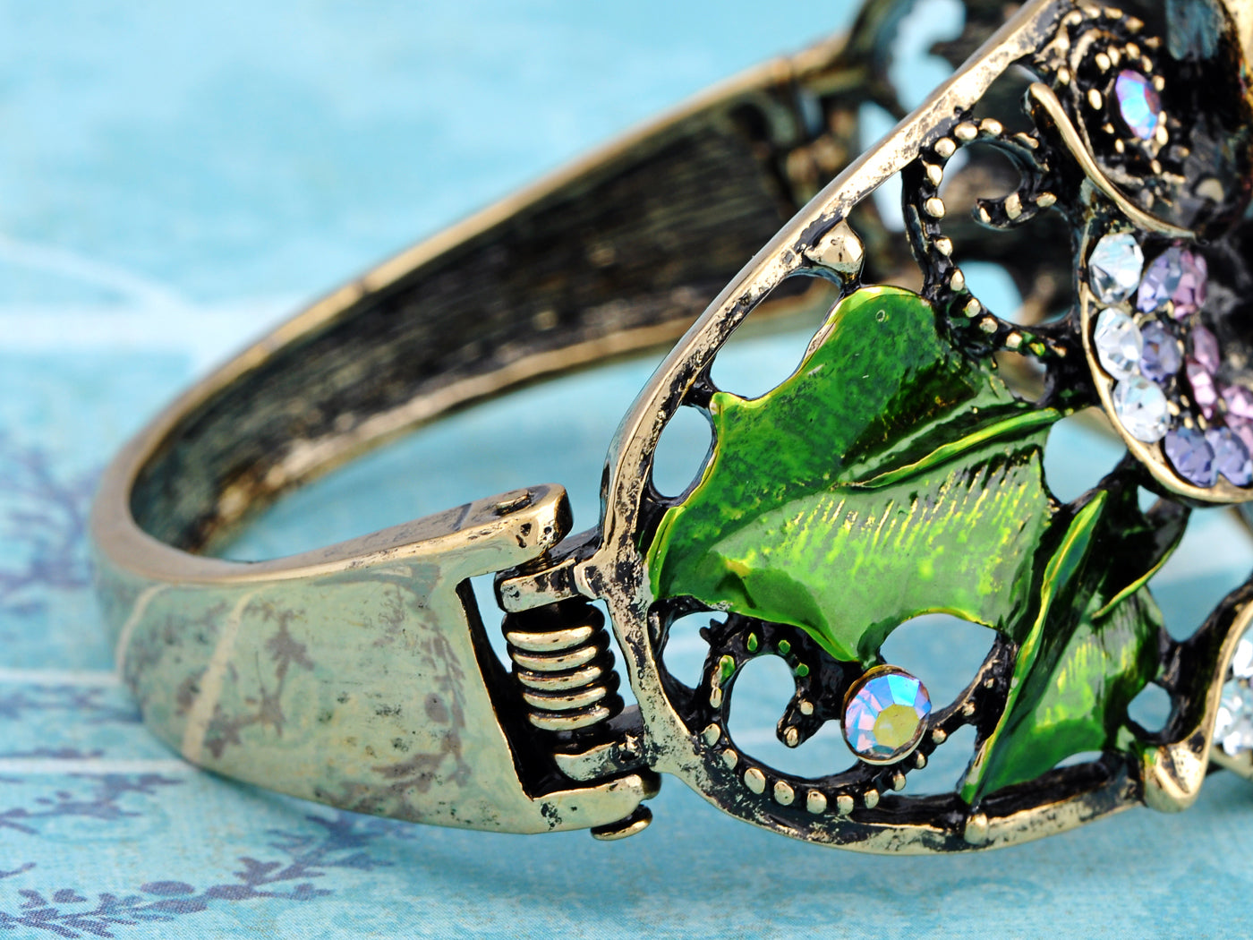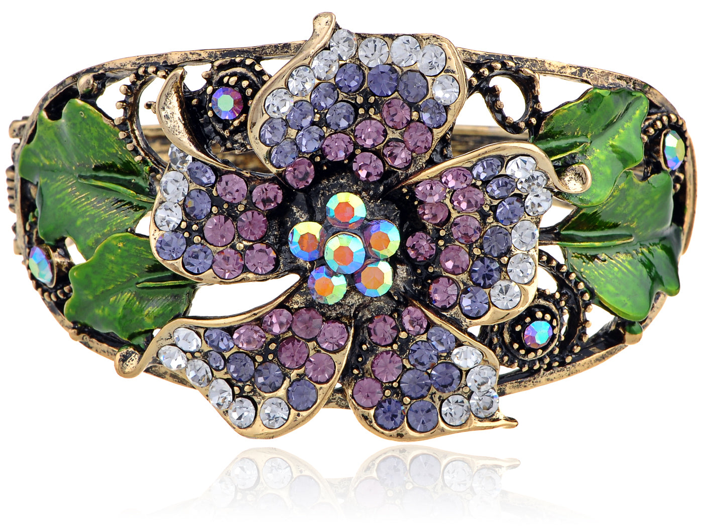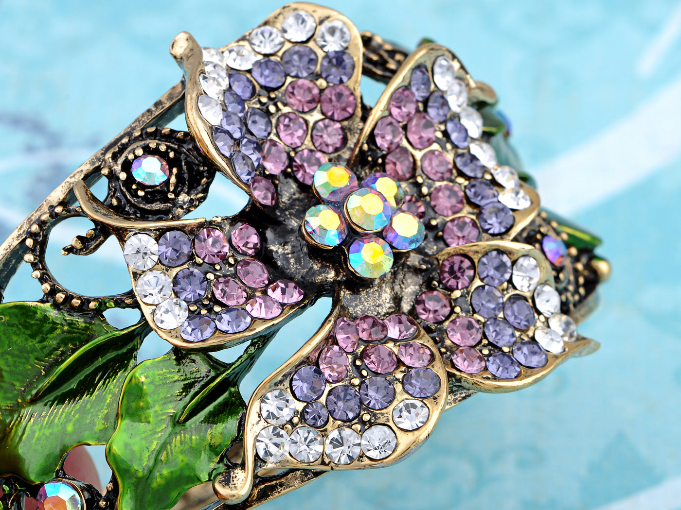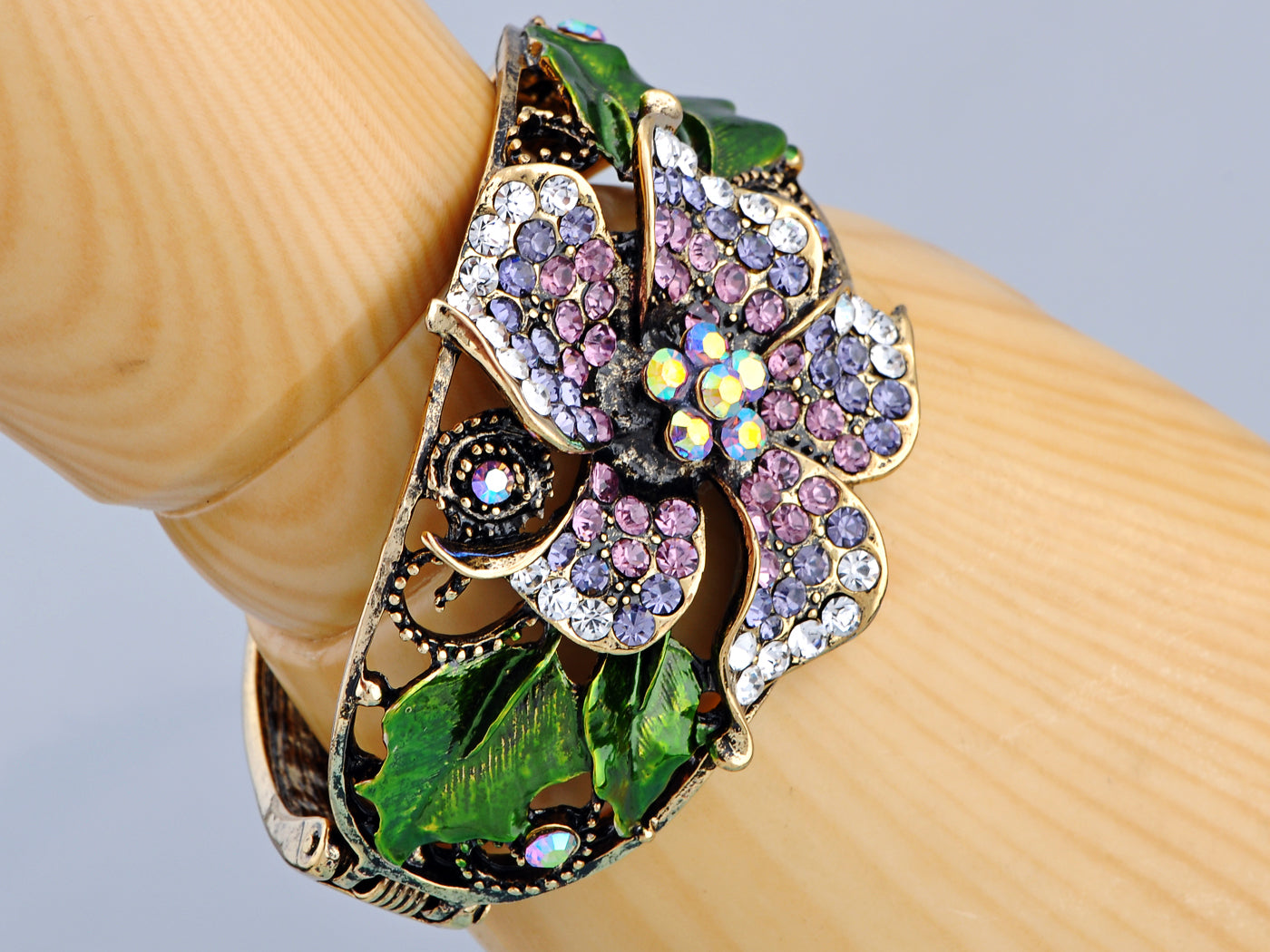 Antique Lavender Purple Flower Cuff Bangle Bracelet
