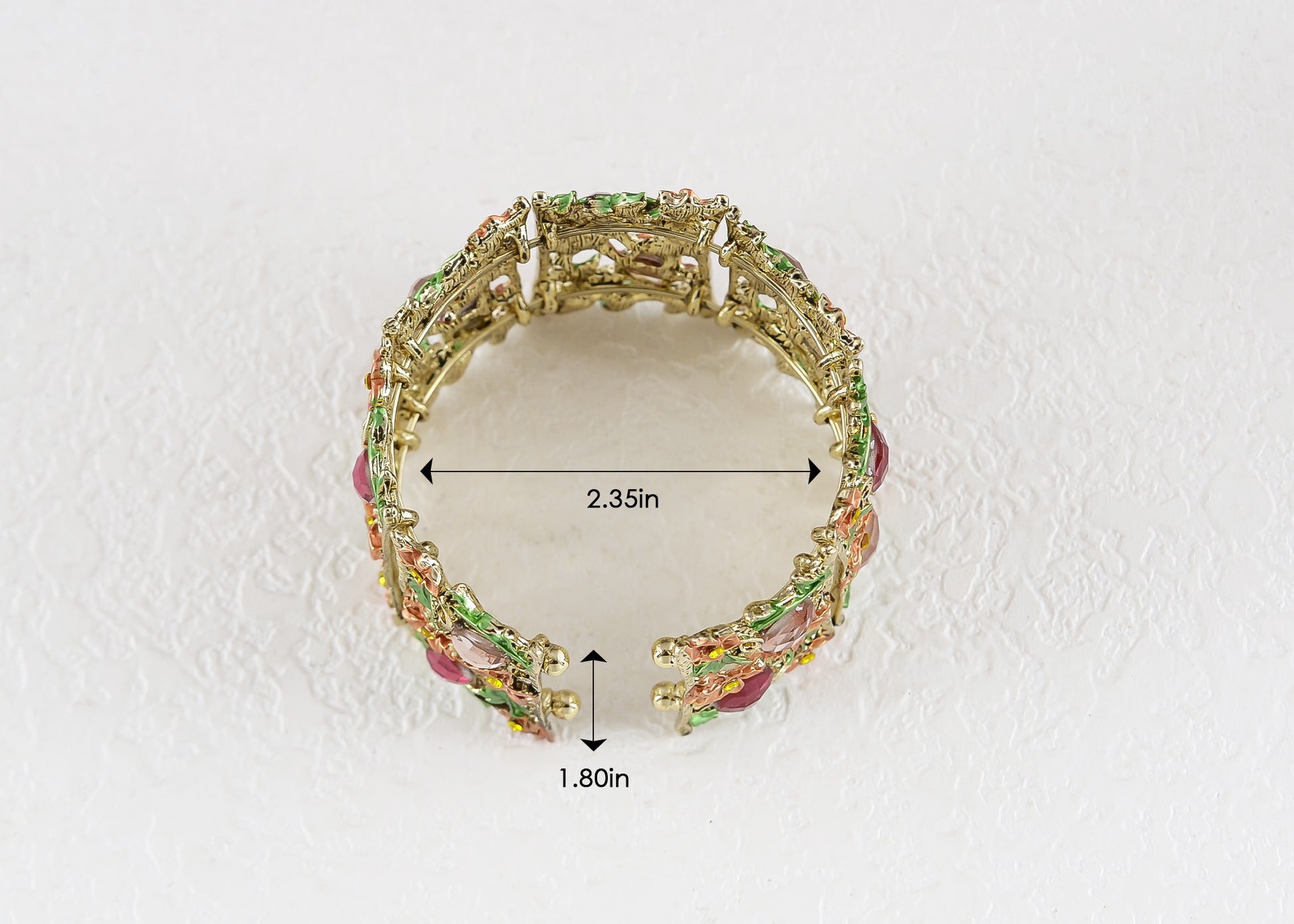 Women's Flower Stretch Cuff Bracelets!This floral crystal flower cuff bracelet is the perfect addition to any fashion-forward collector of costume jewelry. It is a wonderful, feminine bangle that will remain a unique, fun statement piece in your collection for years to come. From the intricate hollowed out design of the cuff itself to the painted and crystal adorned flowers, you can't go wrong with this lovely fantasy-inspired bracelet.