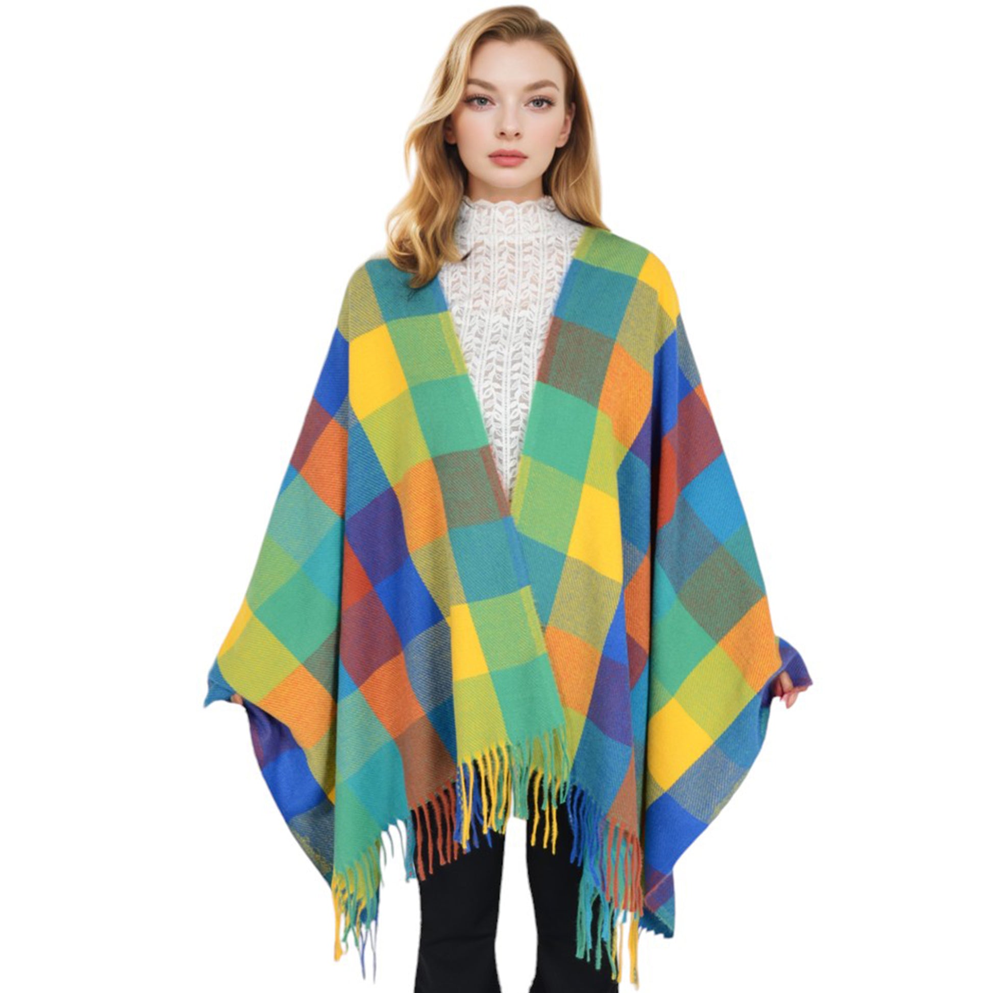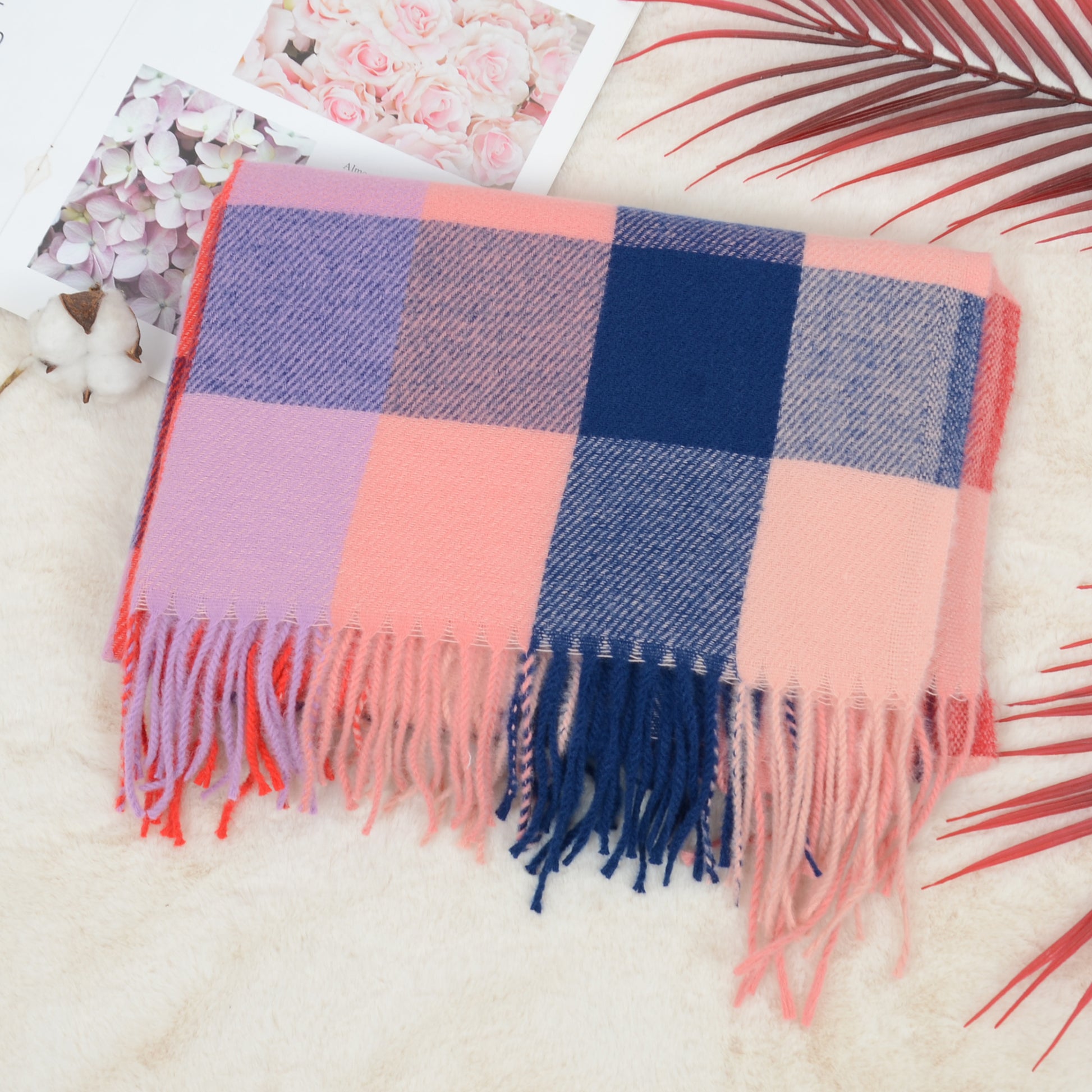 Wrap yourself in warmth and style with this plaid-patterned fringe scarf, designed for both function and fashion. Made from soft and lightweight fabric, it delivers exceptional comfort while keeping you cozy in cooler weather. The bold plaid pattern offers a timeless appeal, effortlessly complementing casual and formal looks alike. Its fringed edges add a touch of texture, making this scarf versatile for layering over coats, jackets, or sweaters. With its vibrant color options, it's a stylish accessory for any wardrobe and an ideal present for loved ones.