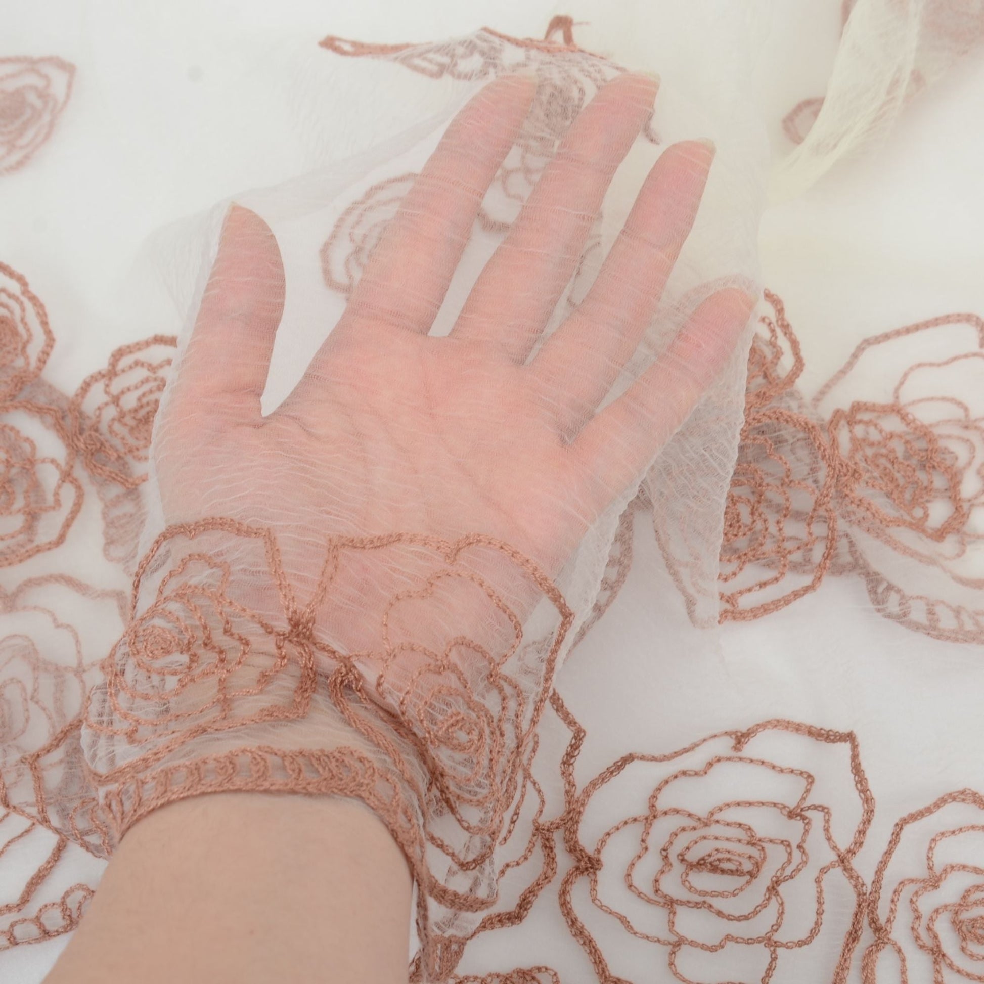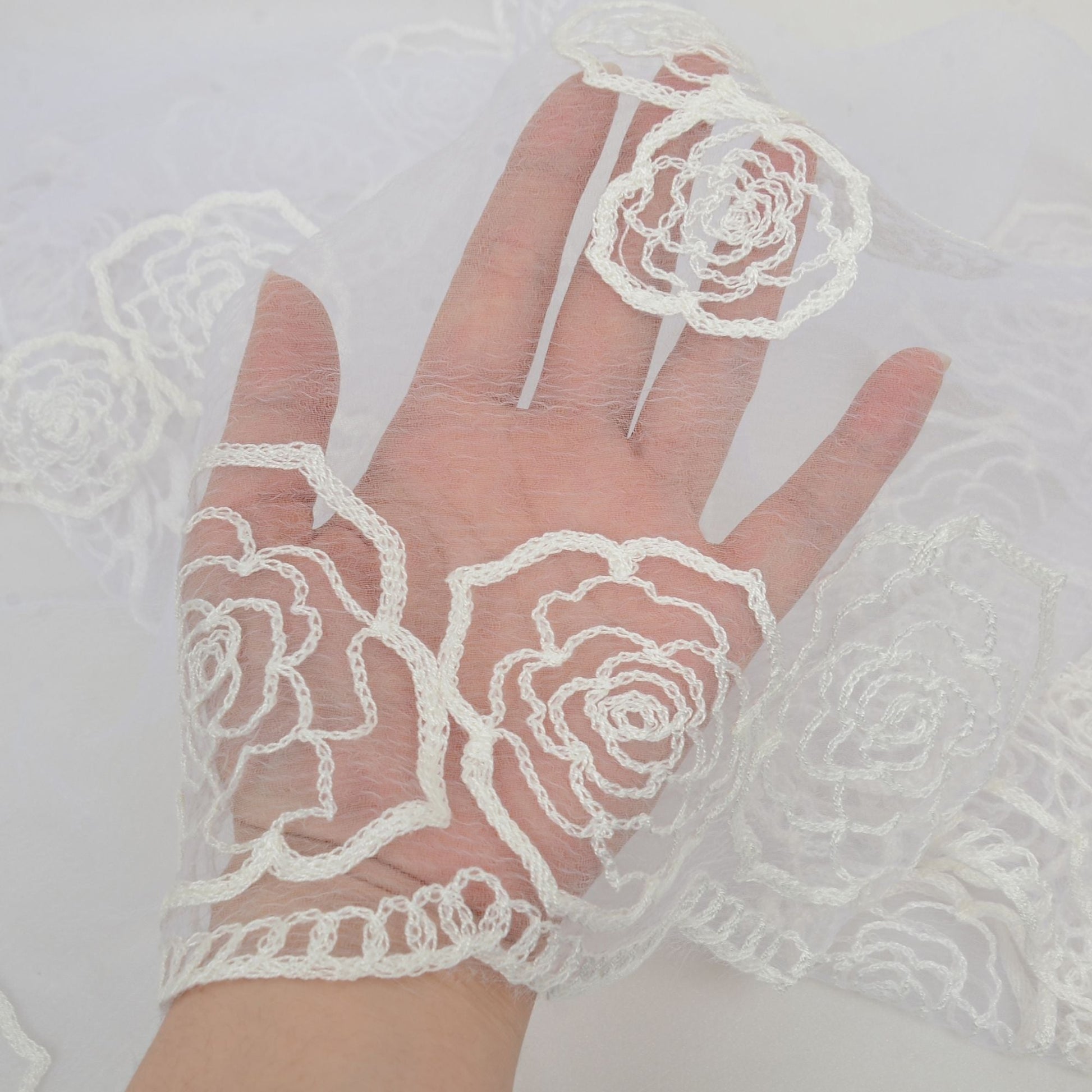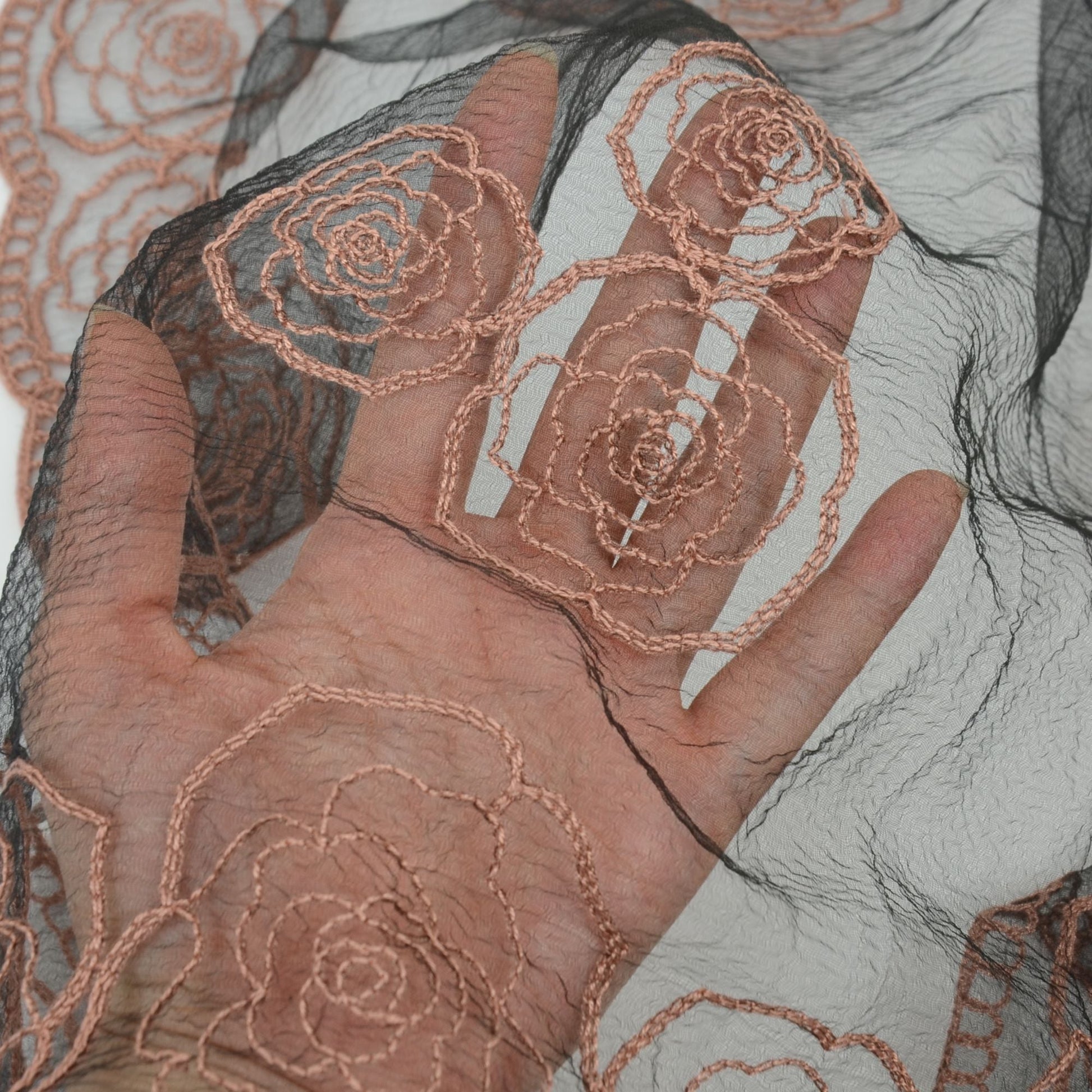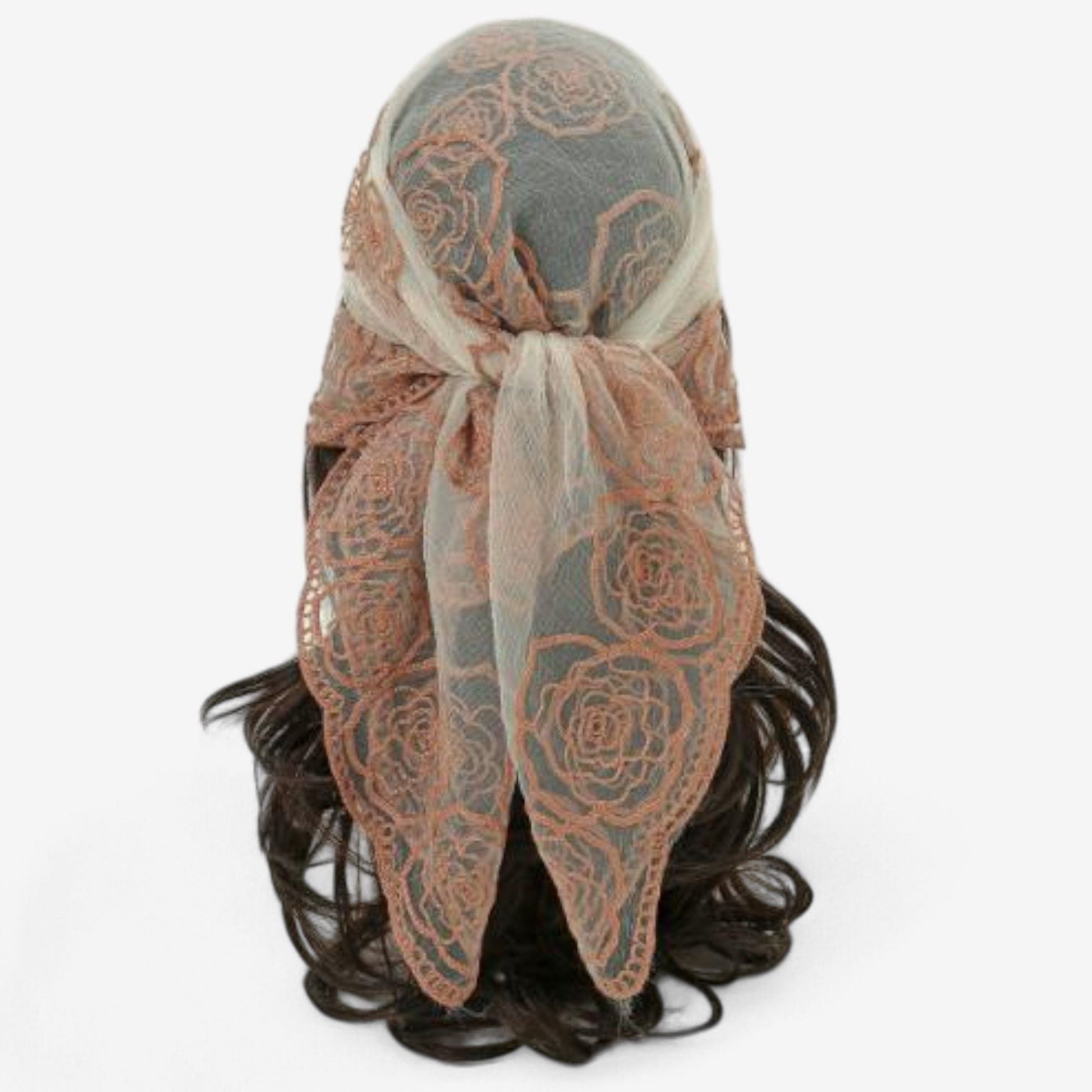 Anna-Kaci Women's Sheer Lace Neck Scarf with Embroidered Rose Floral Edging and Scalloped Trim Detail
