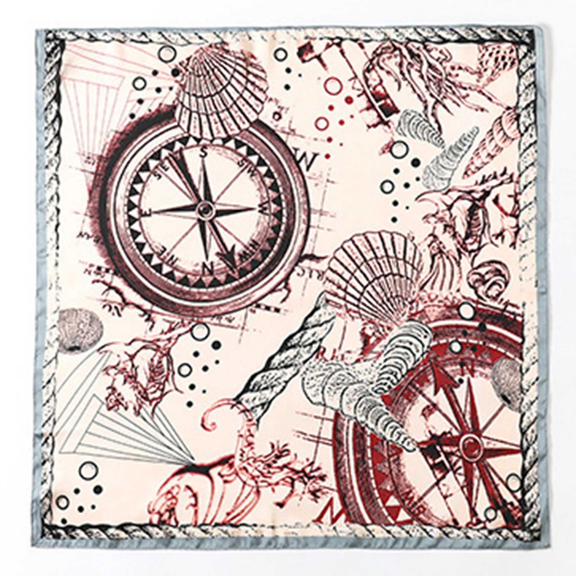 This vintage-inspired satin scarf features intricate map-like and artistic sketches, creating a unique and sophisticated accessory. Made from a soft, lightweight fabric with a subtle sheen, it adds elegance and creativity to any outfit. Tie it around your neck, wrist, or bag for a touch of charm and individuality. Its compact size makes it an ideal piece for everyday styling or travel.