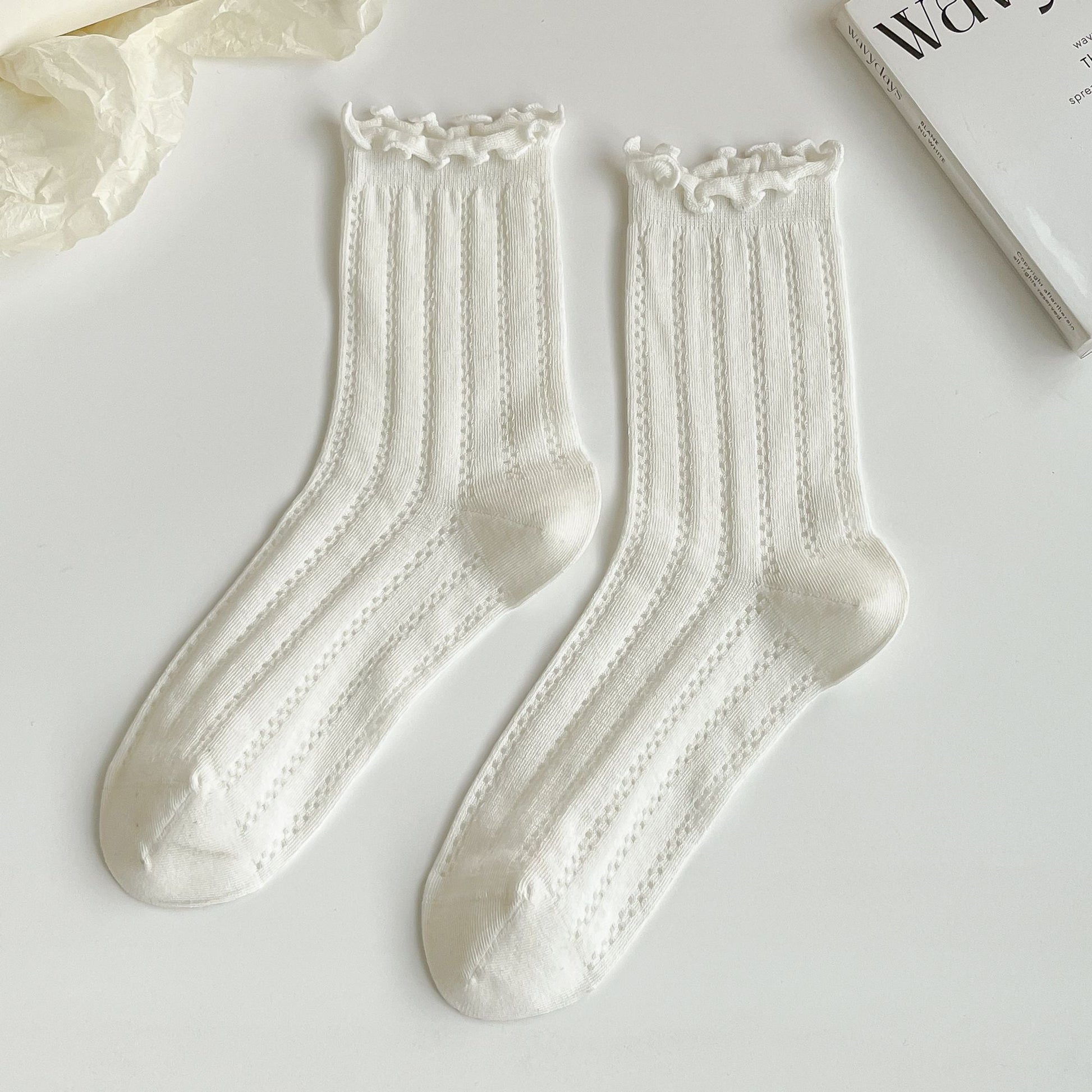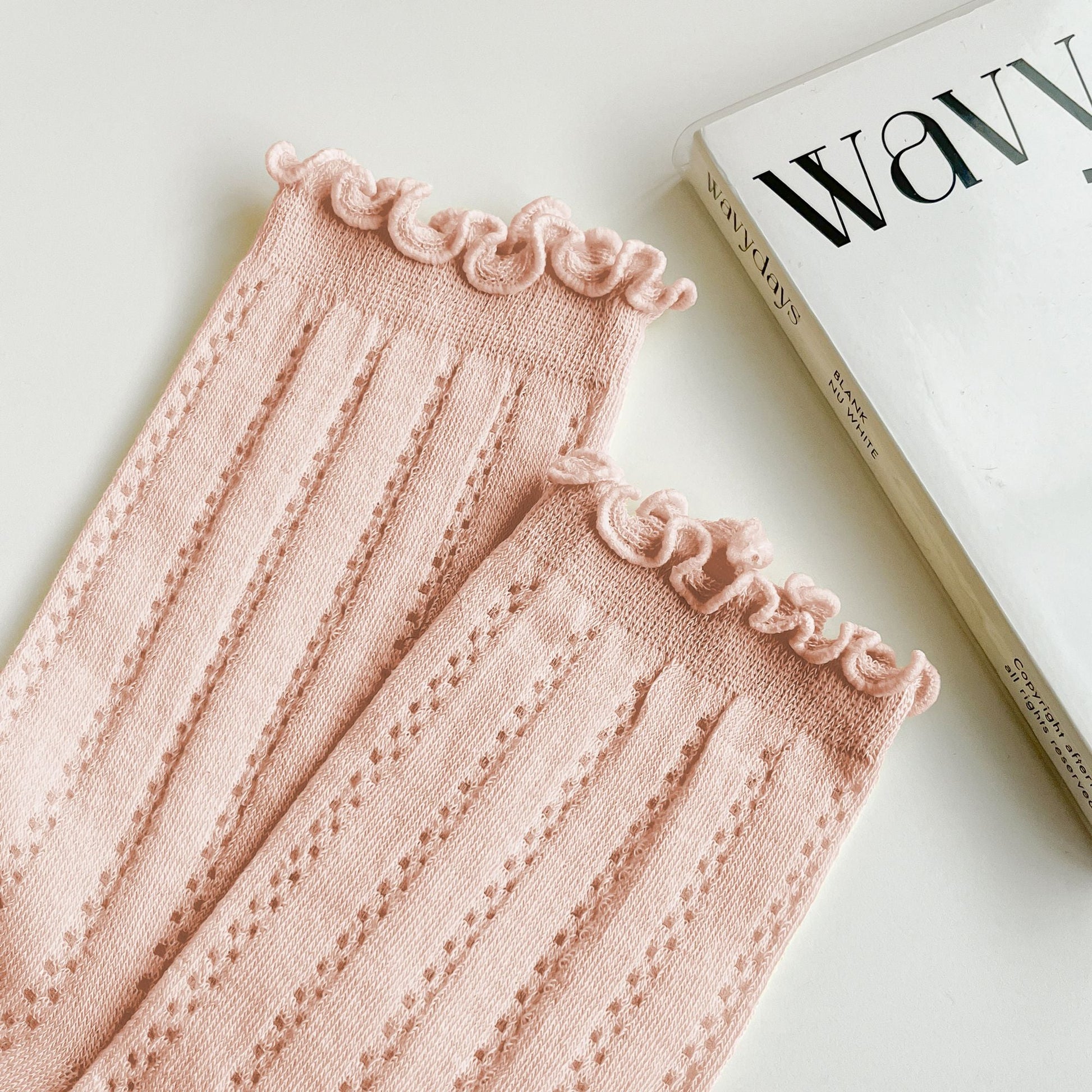 Step into style with our Adorable Ruffled Lace - Up Women's Socks. These socks are a delightful blend of charm and comfort. The soft pink hue, combined with the ruffled edges and intricate lace - up pattern, creates a look that's both cute and feminine. Whether you're dressing up for a special occasion or keeping it casual on a day out, these socks are sure to add a touch of elegance to your ensemble.