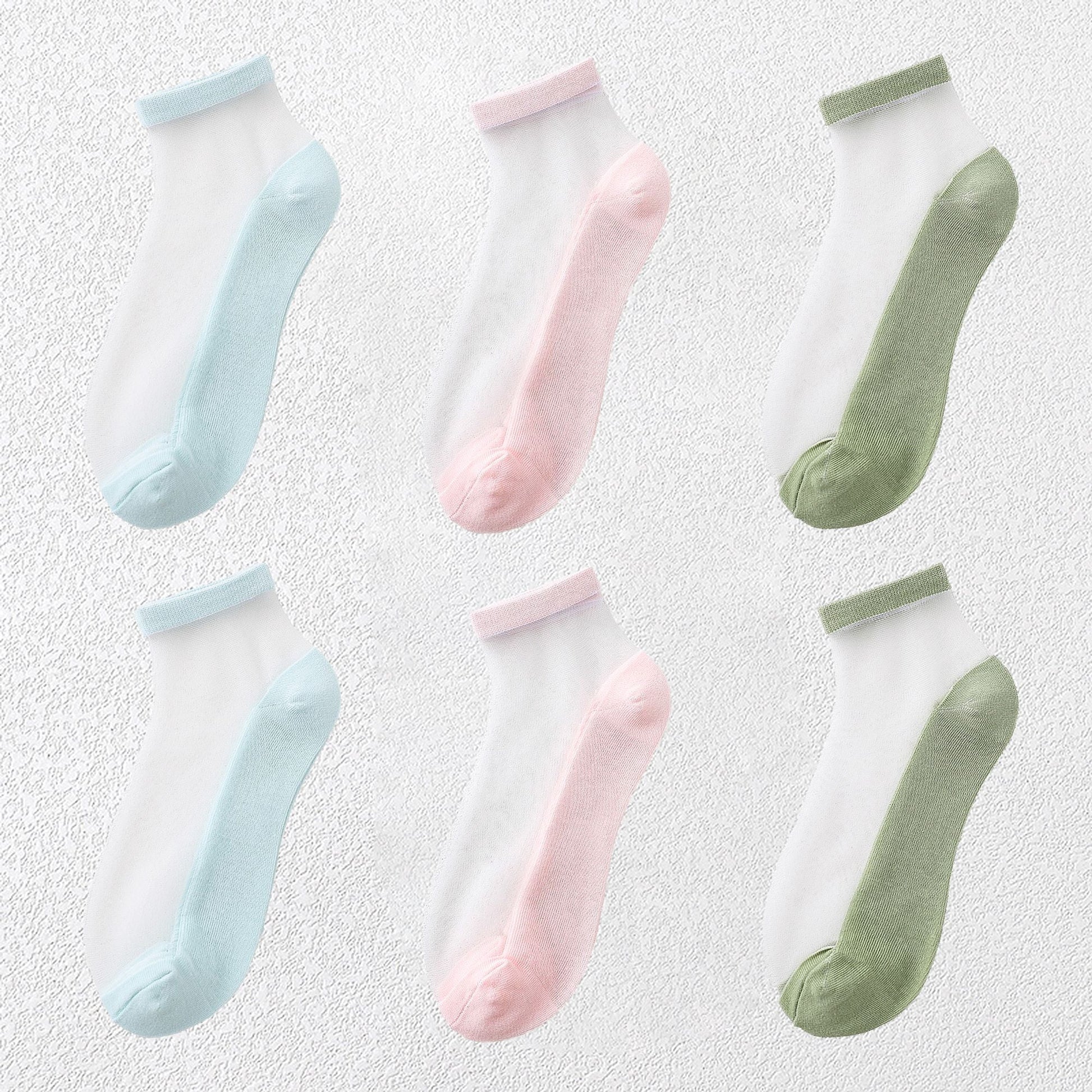 Step into summer with our Chic Women's Summer Thin Ankle Socks. These socks are designed with the warm months in mind, featuring a thin and lightweight fabric that allows your feet to breathe. The semitransparent section on the top of the foot adds a stylish and elegant element, making them a standout accessory for your summer outfits. Whether you're going for a casual look with sneakers or a more relaxed vibe with sandals, these ankle - length socks are a perfect match.