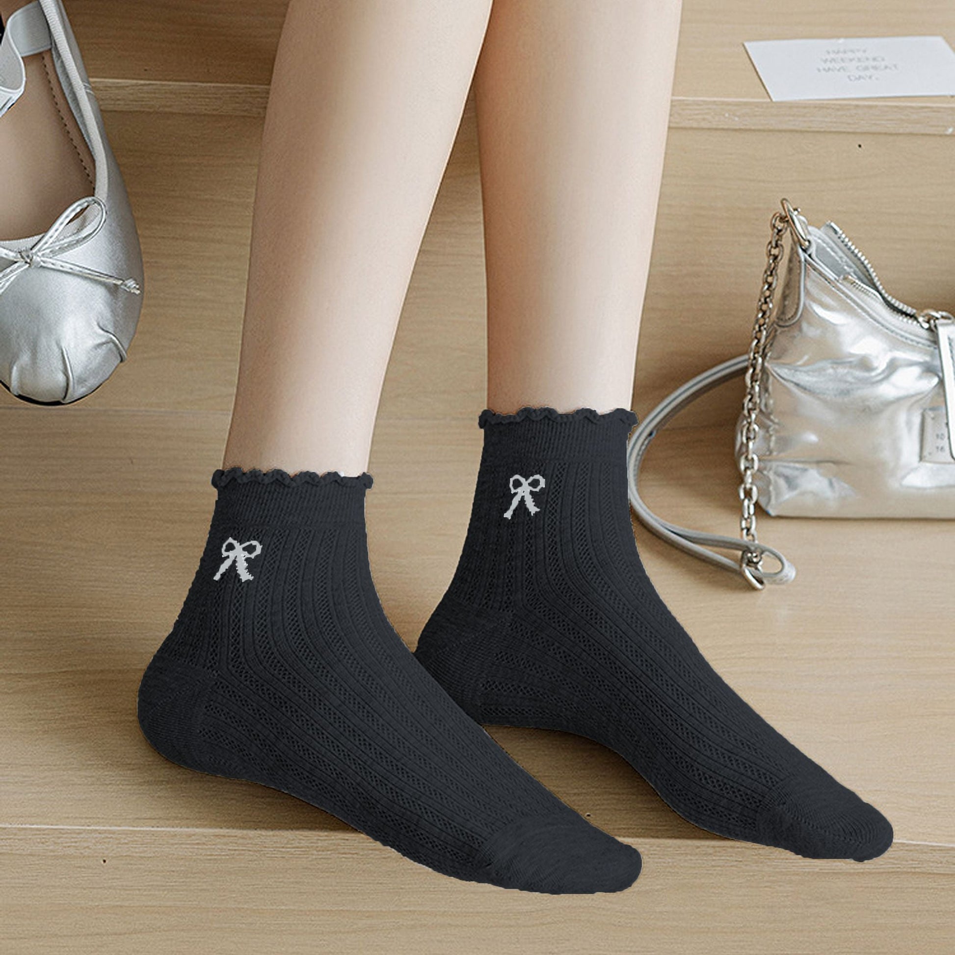 Elevate your summer sock collection with our Women's Summer Ribbed Ankle Socks with Pink Bow Embroidery. This 5 - pack set combines comfort and cute design, featuring delicate pink bow embroidery that adds a lovely, feminine flair to your everyday looks. The ribbed fabric is lightweight and breathable, perfect for keeping your feet cool and dry during the warm summer months.