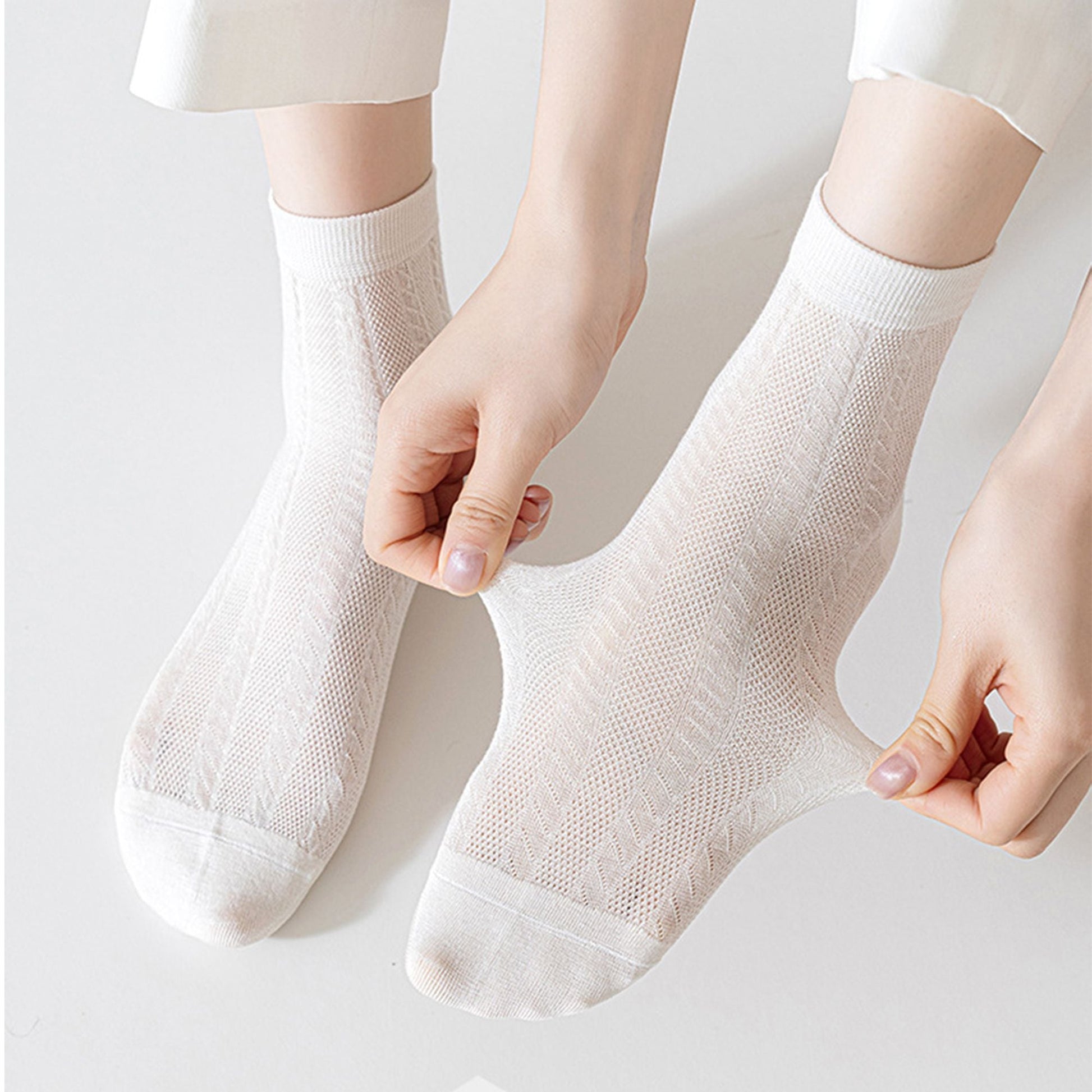 Anna-Kaci Womens Lightweight Breathable Crew Socks 4-Pack Delicate Knit Pattern Soft Stretch Comfort Fit