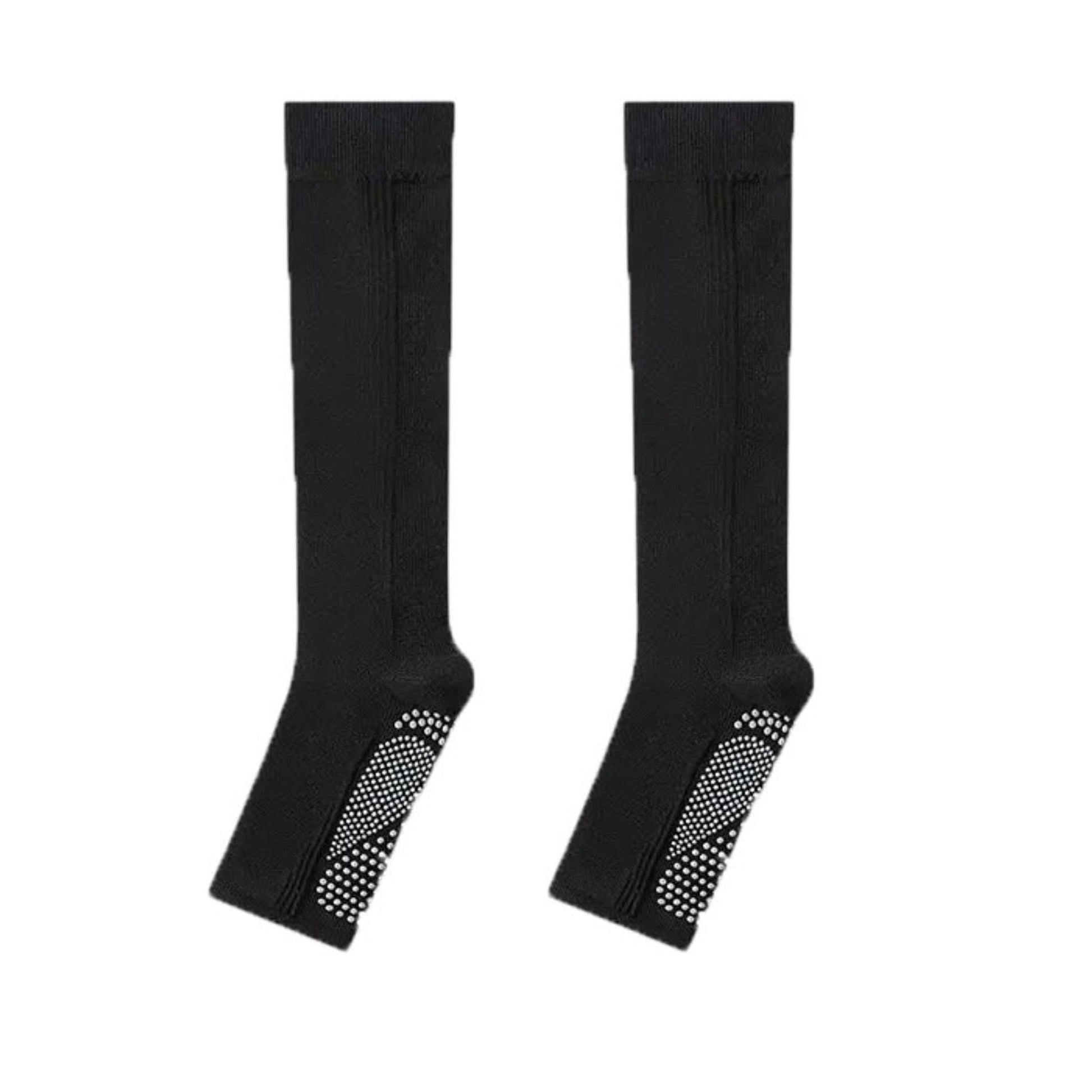The Anna-Kaci Women's Knee High Grip Socks offer full-length coverage and anti-slip support for floor-based activities. Featuring silicone grip patterns on the soles, these socks provide extra stability during barre, dance, yoga, or Pilates. The stretchy ribbed material hugs your legs comfortably while preventing slouching. Sold as a 2-pack in black and white, these socks are both functional and versatile for active and casual wear.