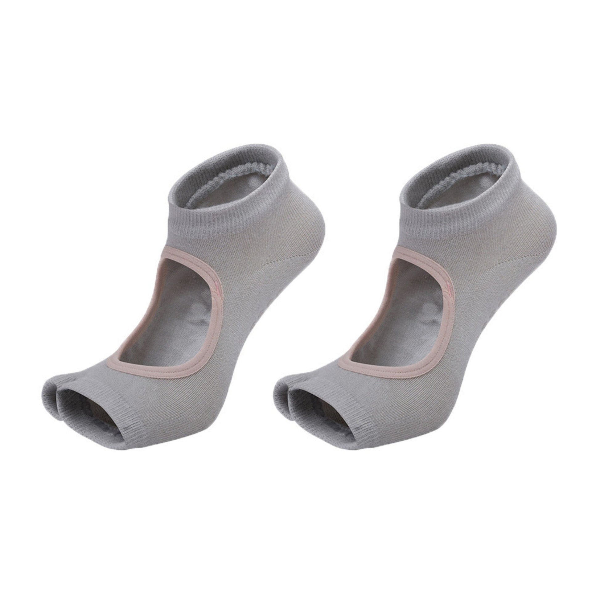 The Anna-Kaci Women's Open Toe Yoga Socks are designed to enhance your practice with breathable coverage and secure foot placement. Featuring a non-slip grip sole and open toe design for natural toe spread and balance, these socks support stability during yoga, Pilates, barre, and floor exercises. The low-cut ankle fit and soft stretch fabric provide flexibility, comfort, and a barely-there feel. Sold as a 2-pack for convenience and value.
