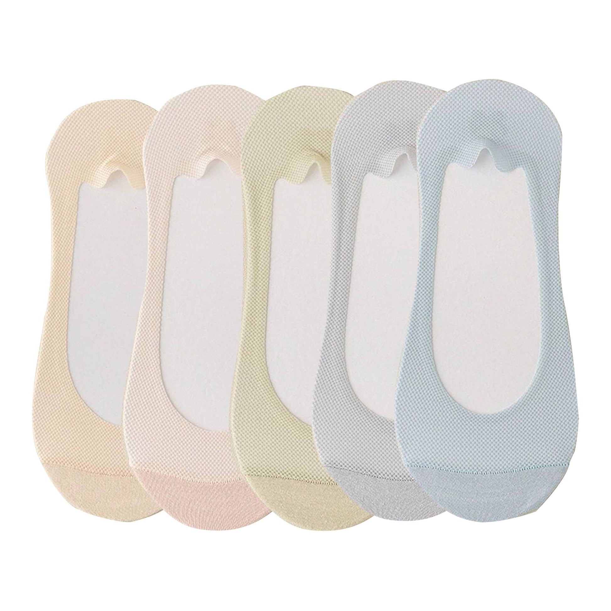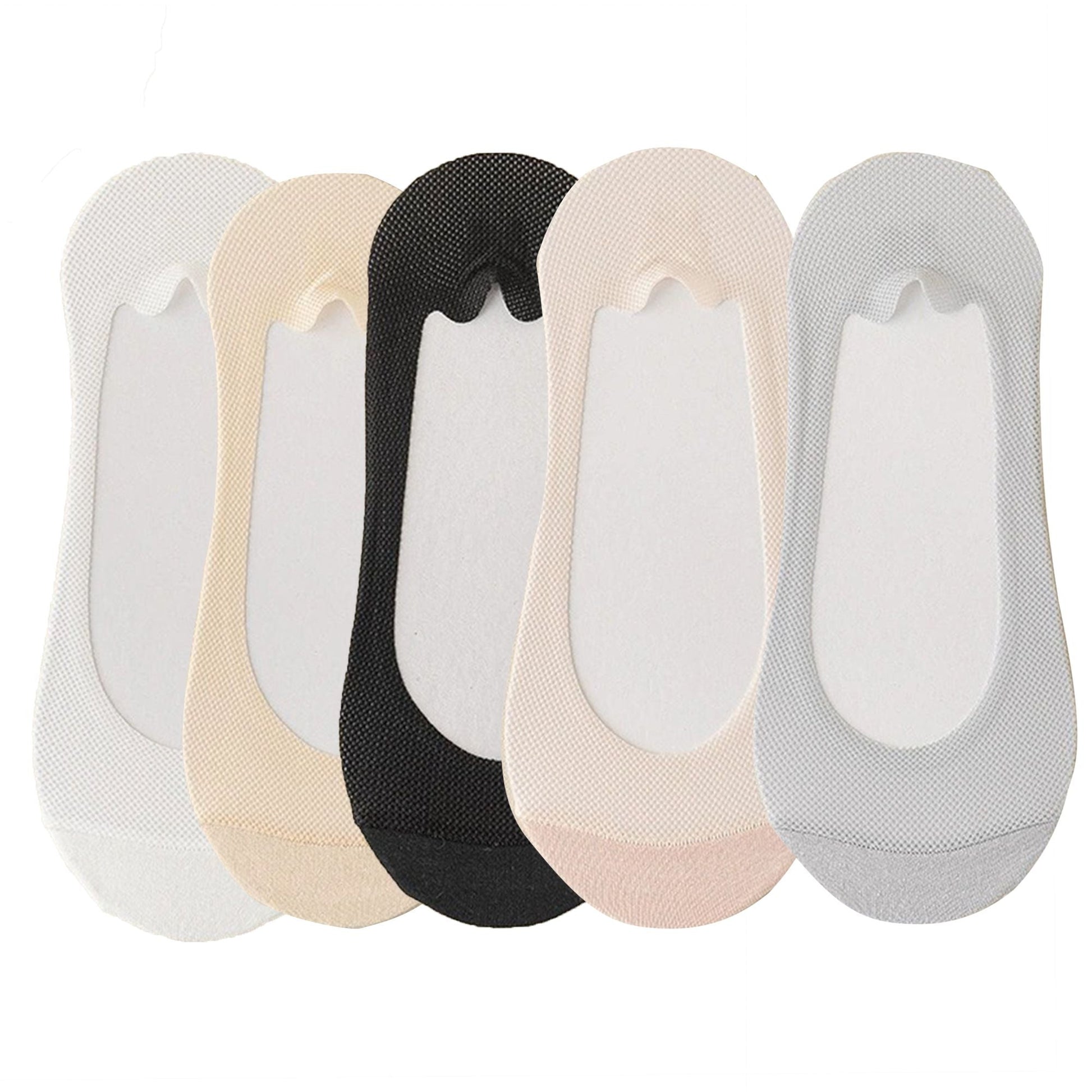 Anna-Kaci 5 Pairs Women No Show Mesh Panel Socks Low Cut Stretch Cotton Liner Non-Slip Design for Ballet Flats and Loafers