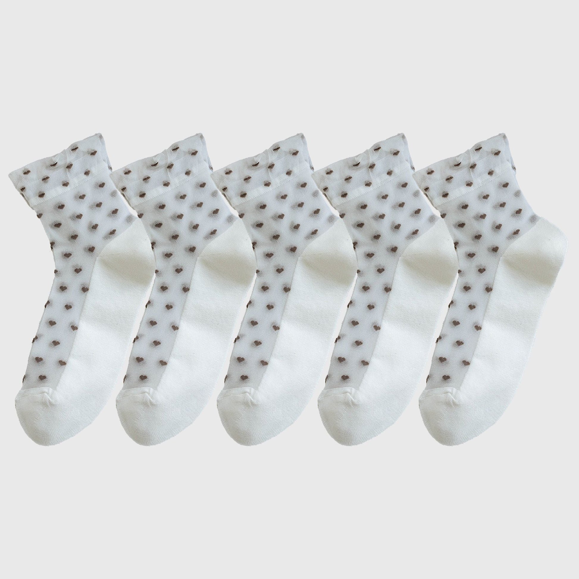 Anna-Kaci Women's 5pk Sheer Ankle Socks with Polka Dot Design