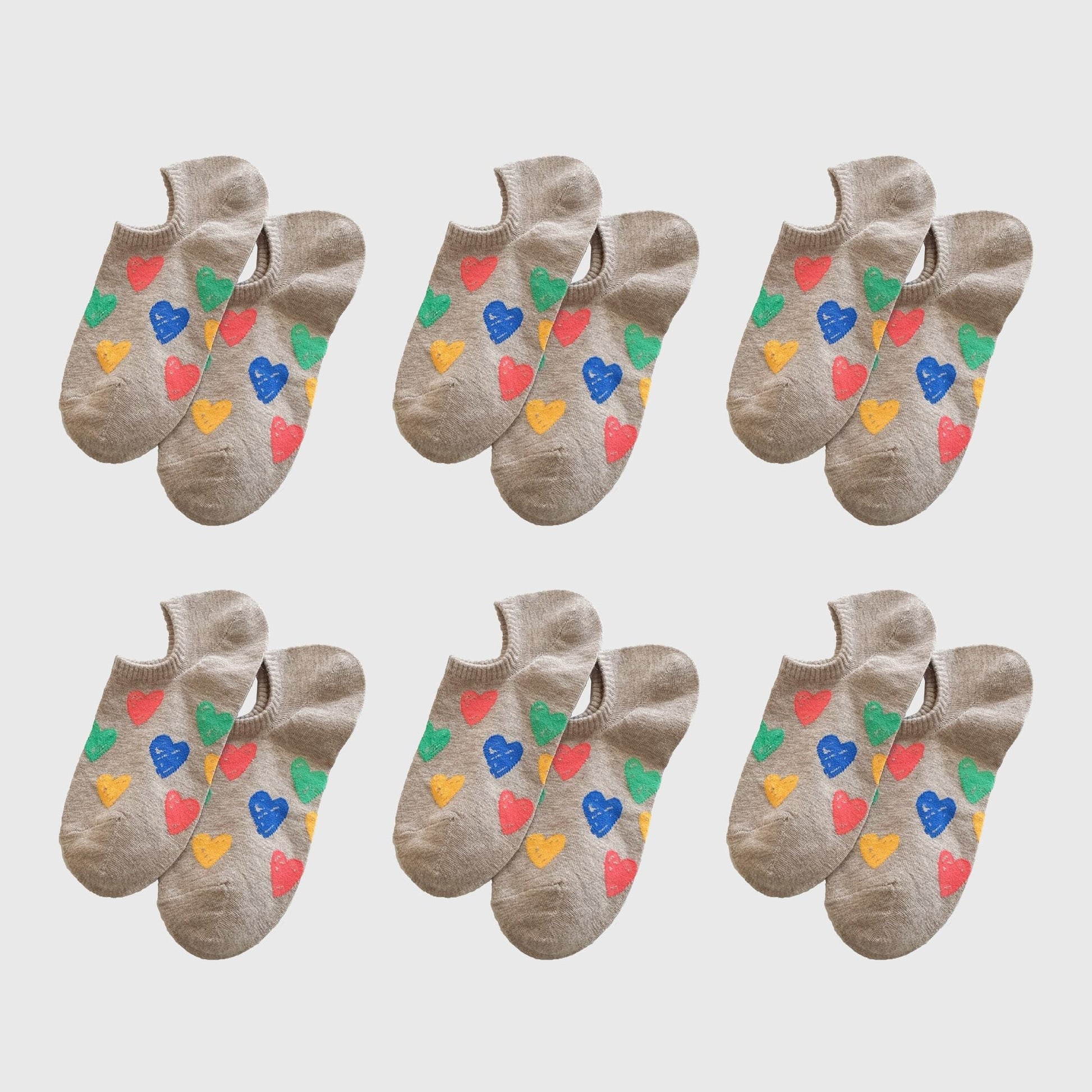 Anna-Kaci Women's Summer Colorful Heart-Printed No-Show Socks 6pk