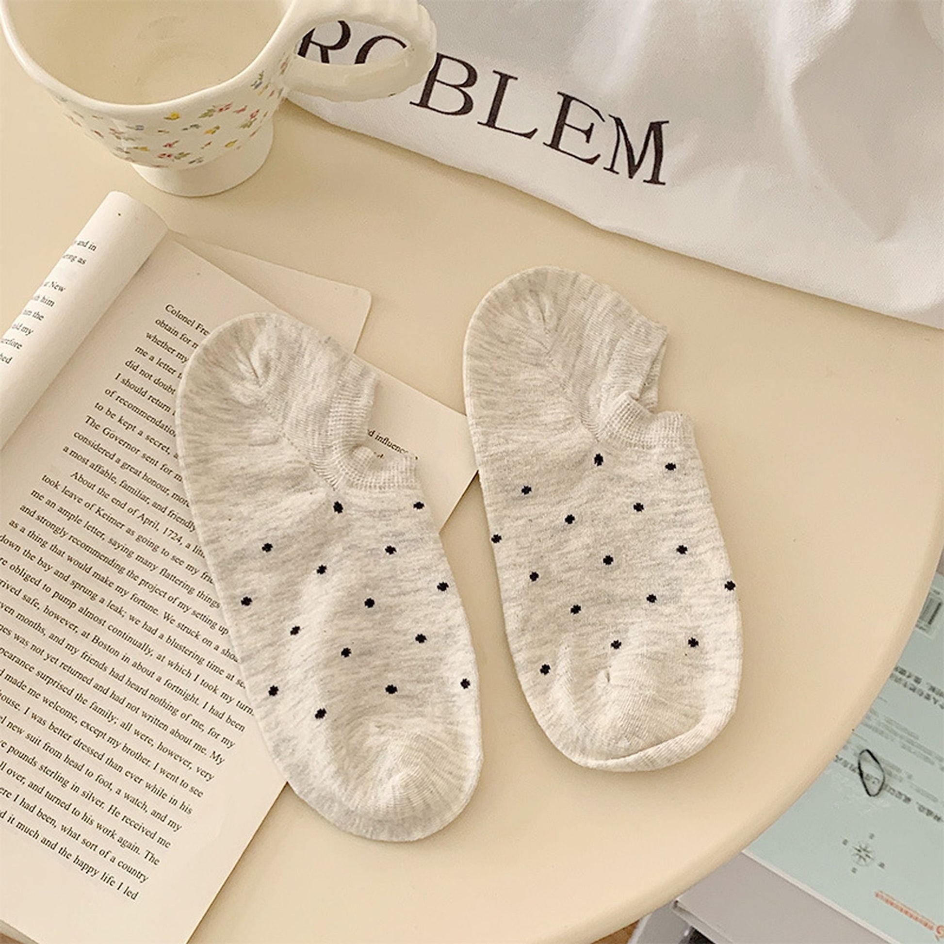 Add a dash of playful charm to your footwear with our Women's Polka Dot No - Show Socks. These socks feature a classic polka dot pattern¡ªblack dots on light gray fabric¡ªthat brings a fun, timeless vibe to any look. Designed as no - show socks, they stay hidden in sneakers, loafers, or flats, keeping your style sleek and minimalist.