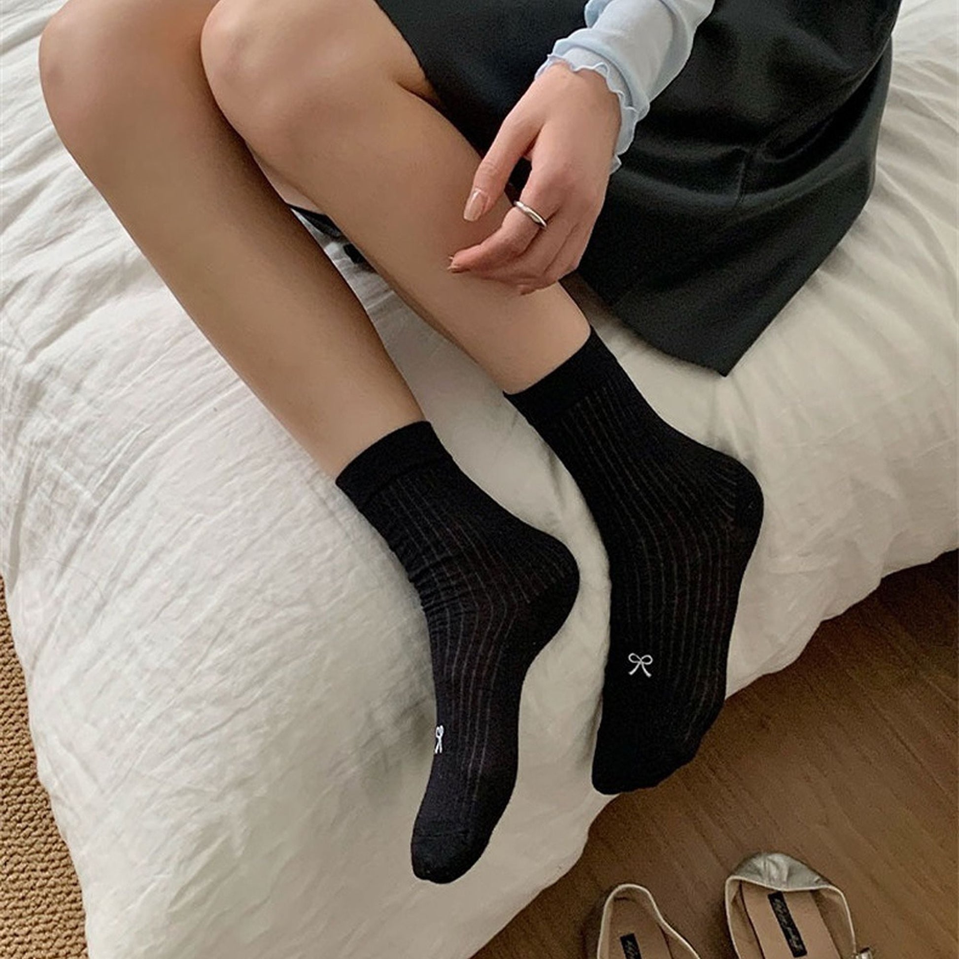 Add a touch of sweetness to your sock collection with our Women's Ribbed Ankle Socks featuring bow embroidery. These socks combine a ribbed texture for a snug fit with delicate embroidered bows that bring a feminine, charming vibe to any look. The ankle - length design is perfect for pairing with flats, loafers, or low - cut shoes, allowing you to showcase the adorable bow detail.