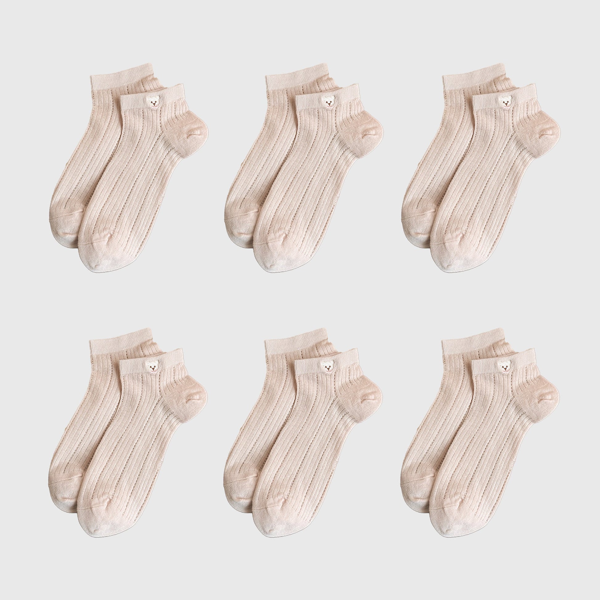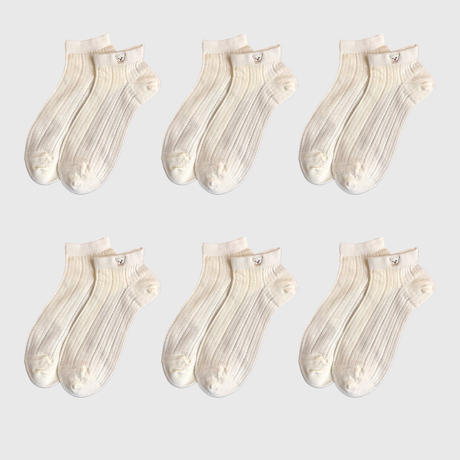 Anna-Kaci Cute Bear-Embroidered Striped Ankle Socks 6Pk