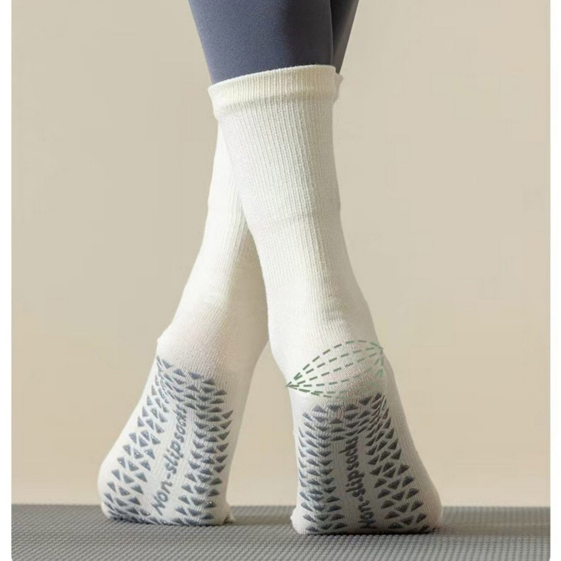 Anna-Kaci Women's 2-Pack Grip Toe Socks with Non-Slip Soles and Ribbed Knit in Neutral Tones for Yoga and Studio Classes