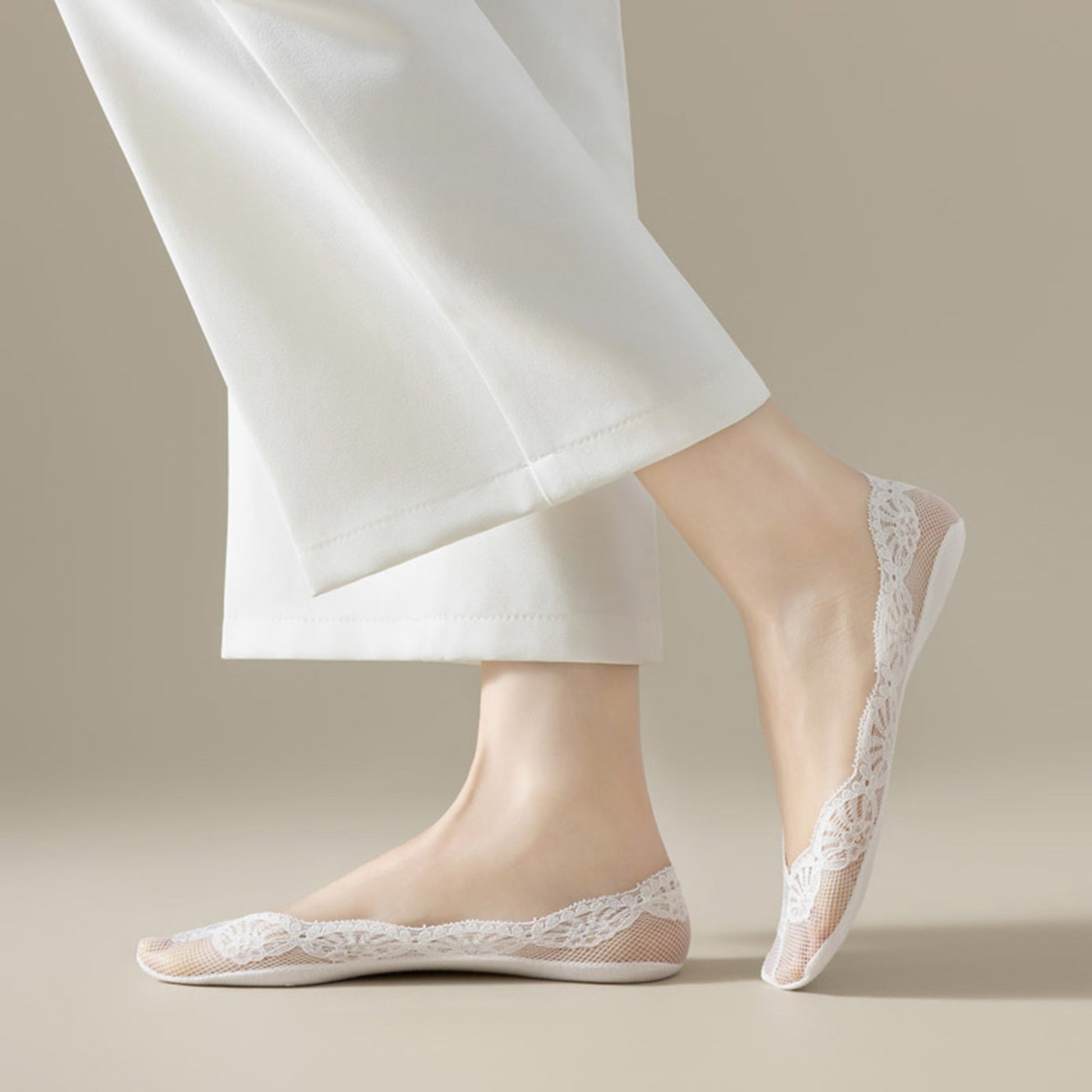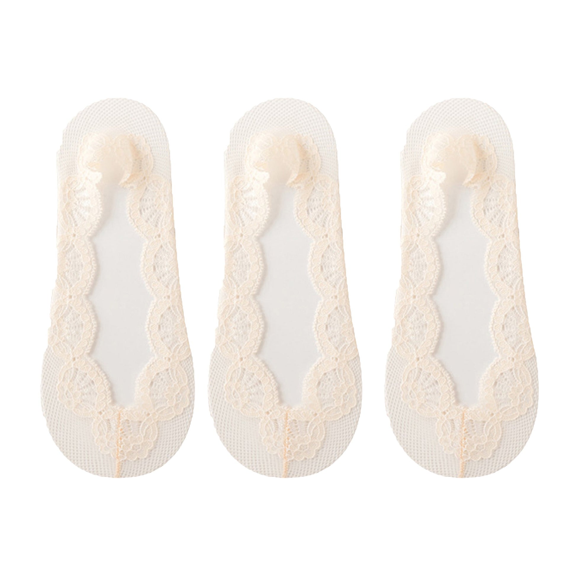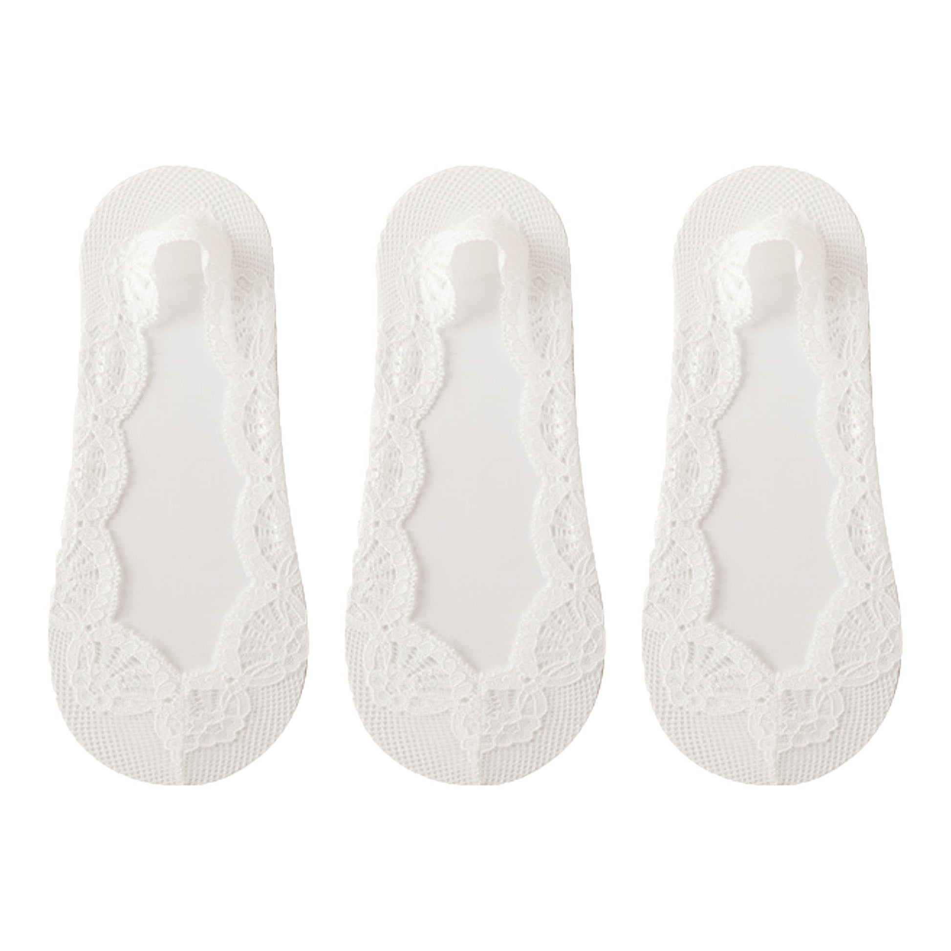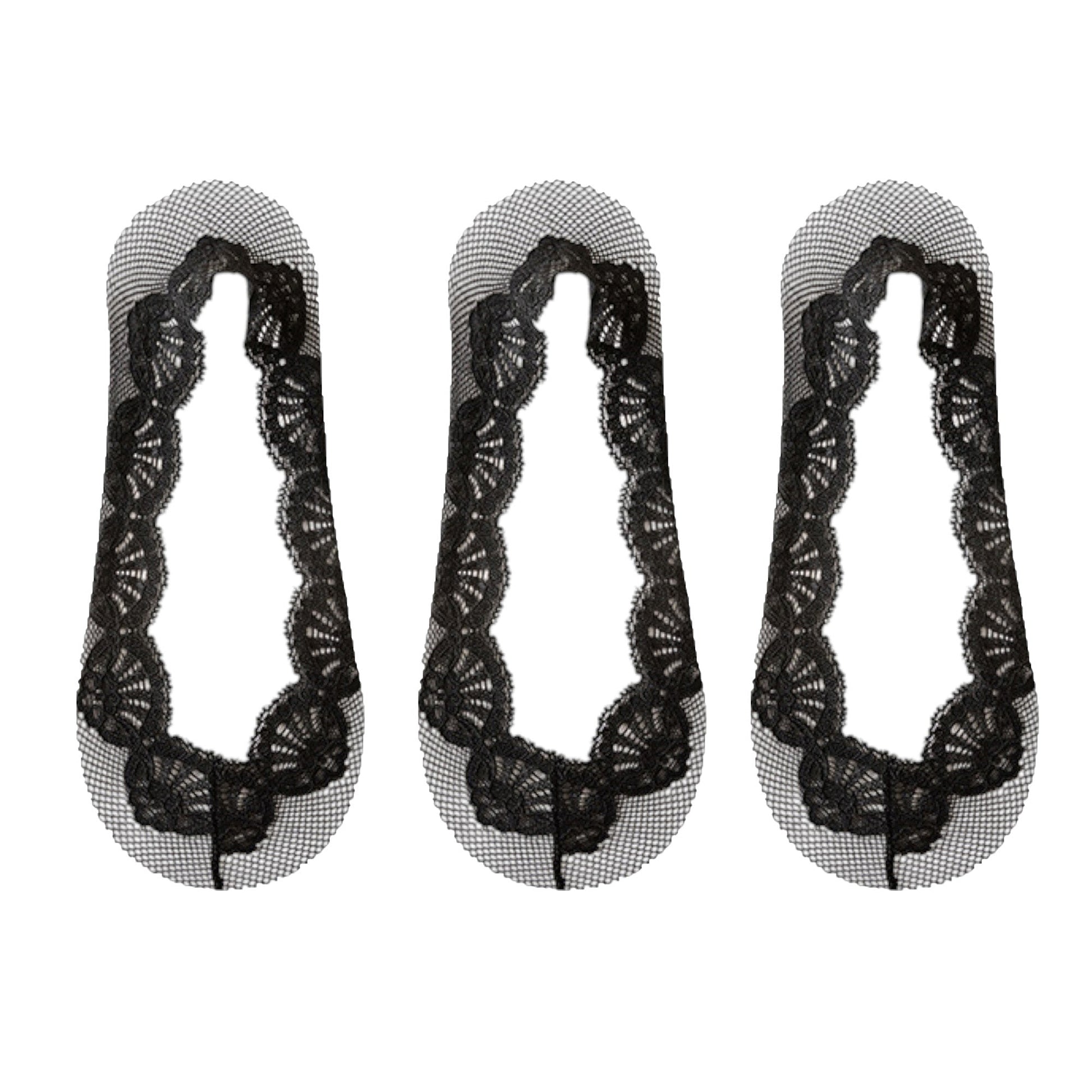 Anna-Kaci Women's 3-Pack Low Cut Lace Liner Socks with Non-Slip Heel Grip No Show Design