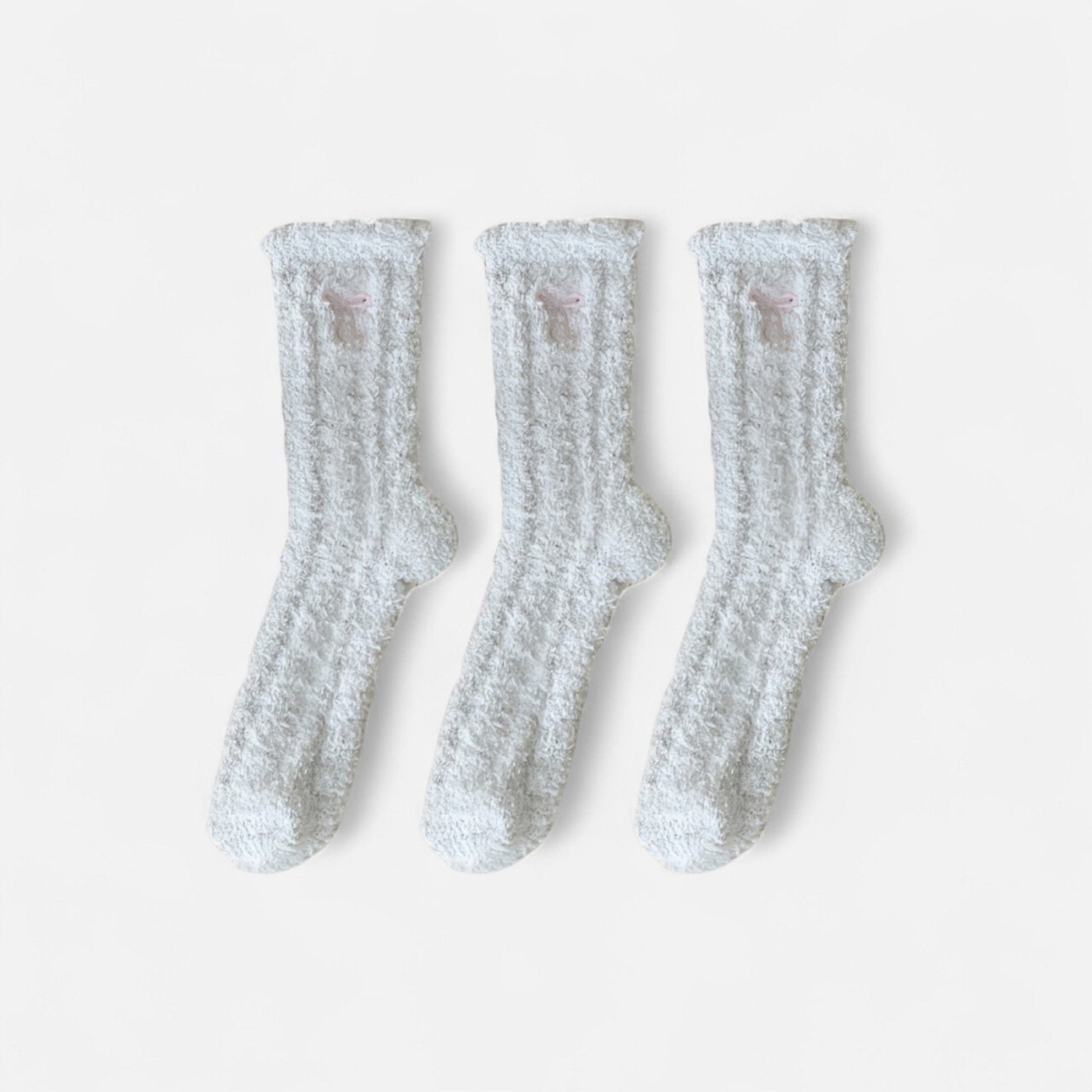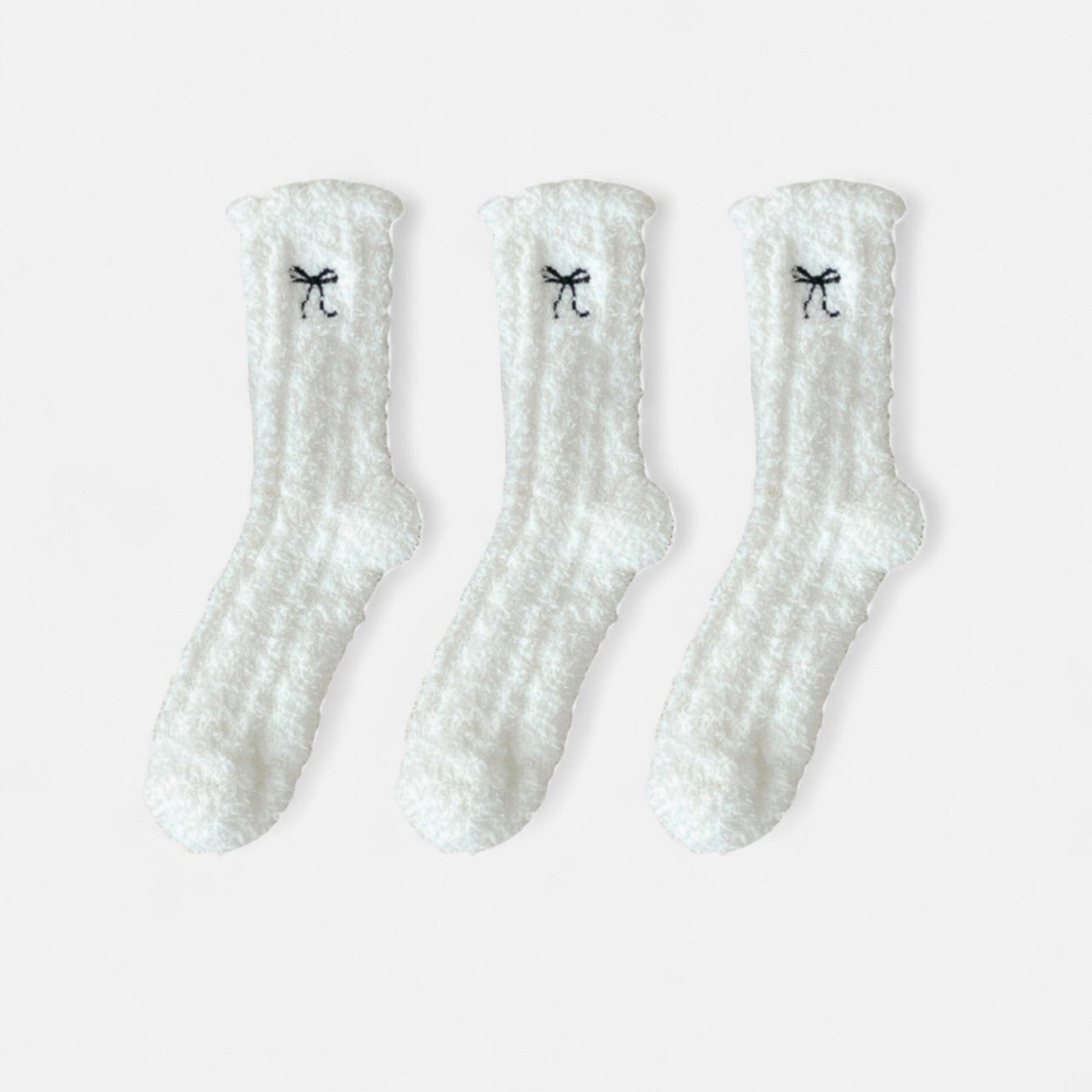 Anna-Kaci Women's 3-Pack Fuzzy Crew Socks with Embroidered Bow Detail and Soft Plush Texture