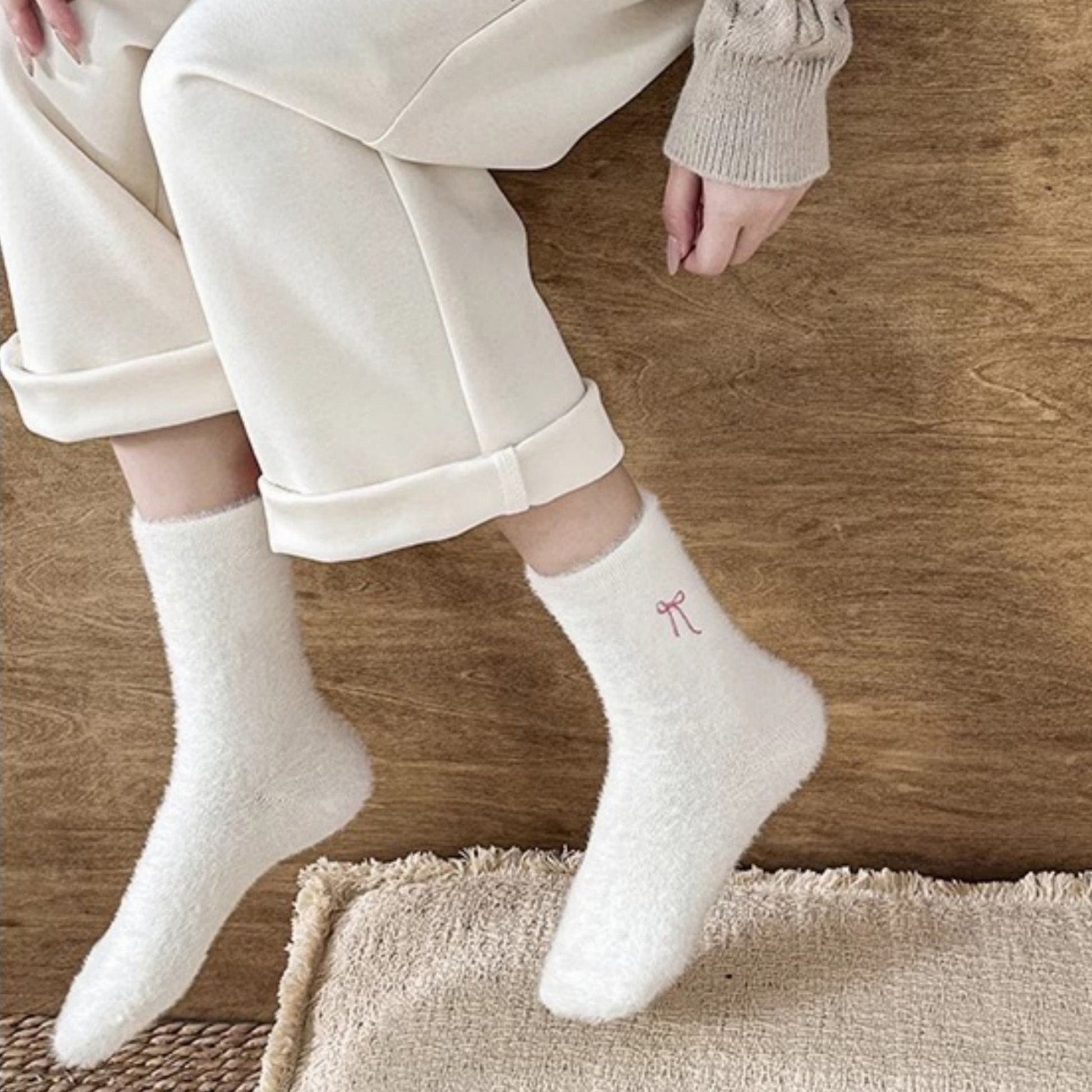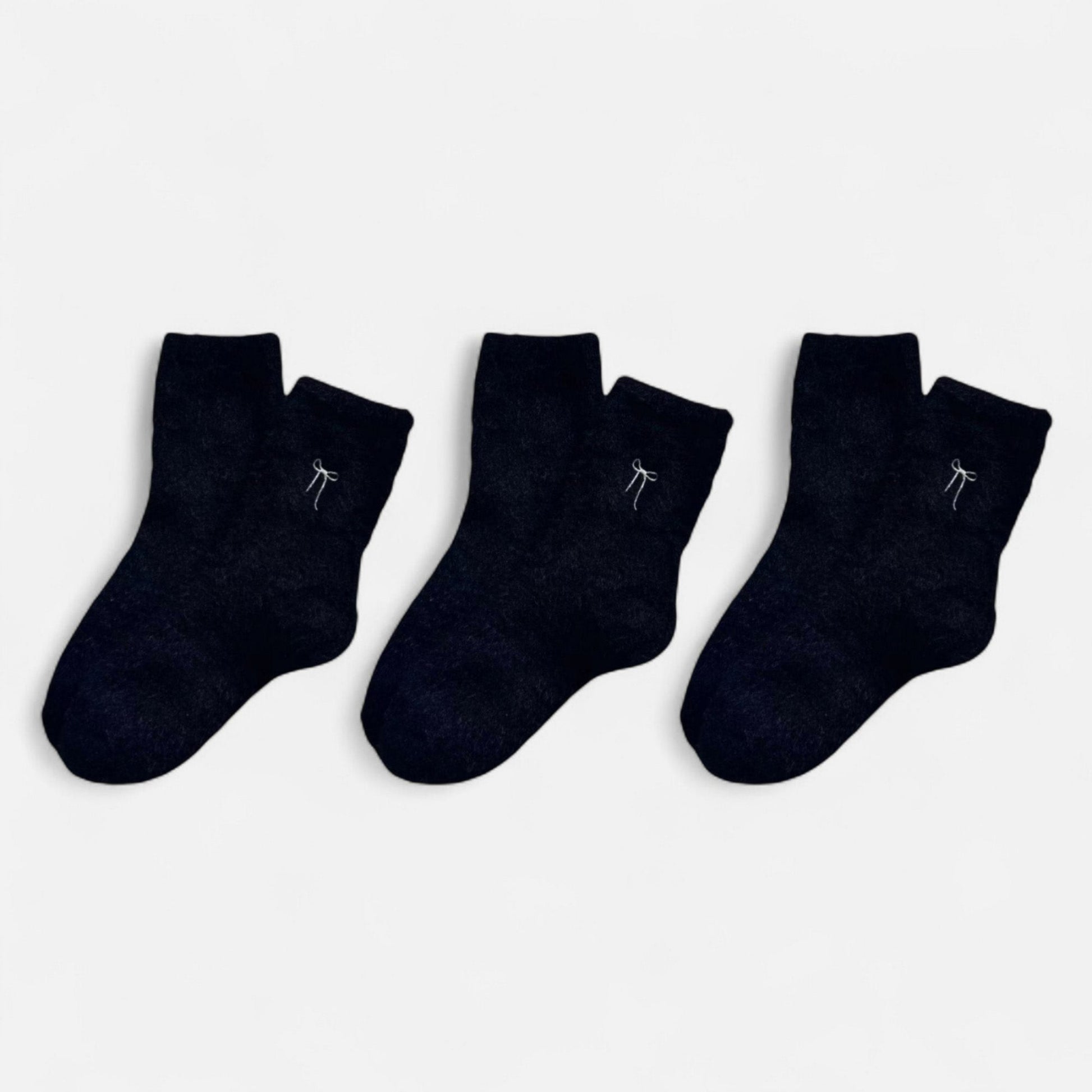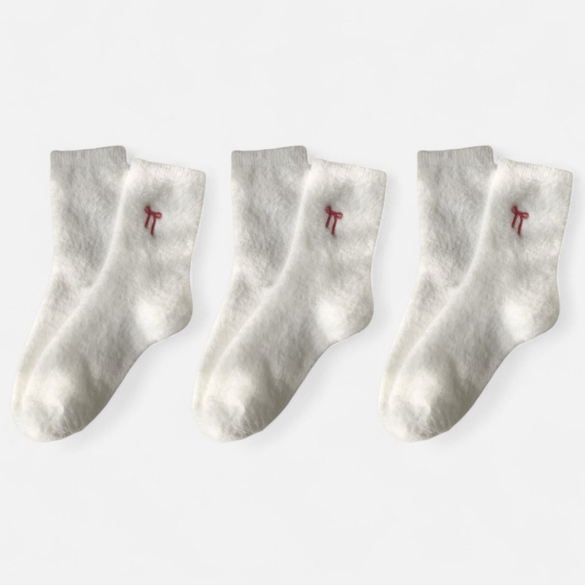 Anna-Kaci Women's 3-Pack Fuzzy Crew Socks with Embroidered Bow Detail Soft Cozy Lounge Sock Set