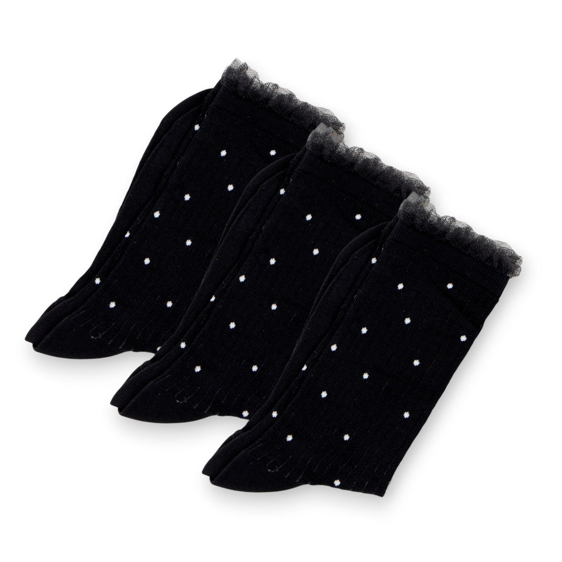 These Anna-Kaci 3-pack crew socks feature a timeless ribbed knit and classic polka dot pattern for everyday charm. Soft, breathable, and easy to style, they offer all-day comfort with a playful twist.