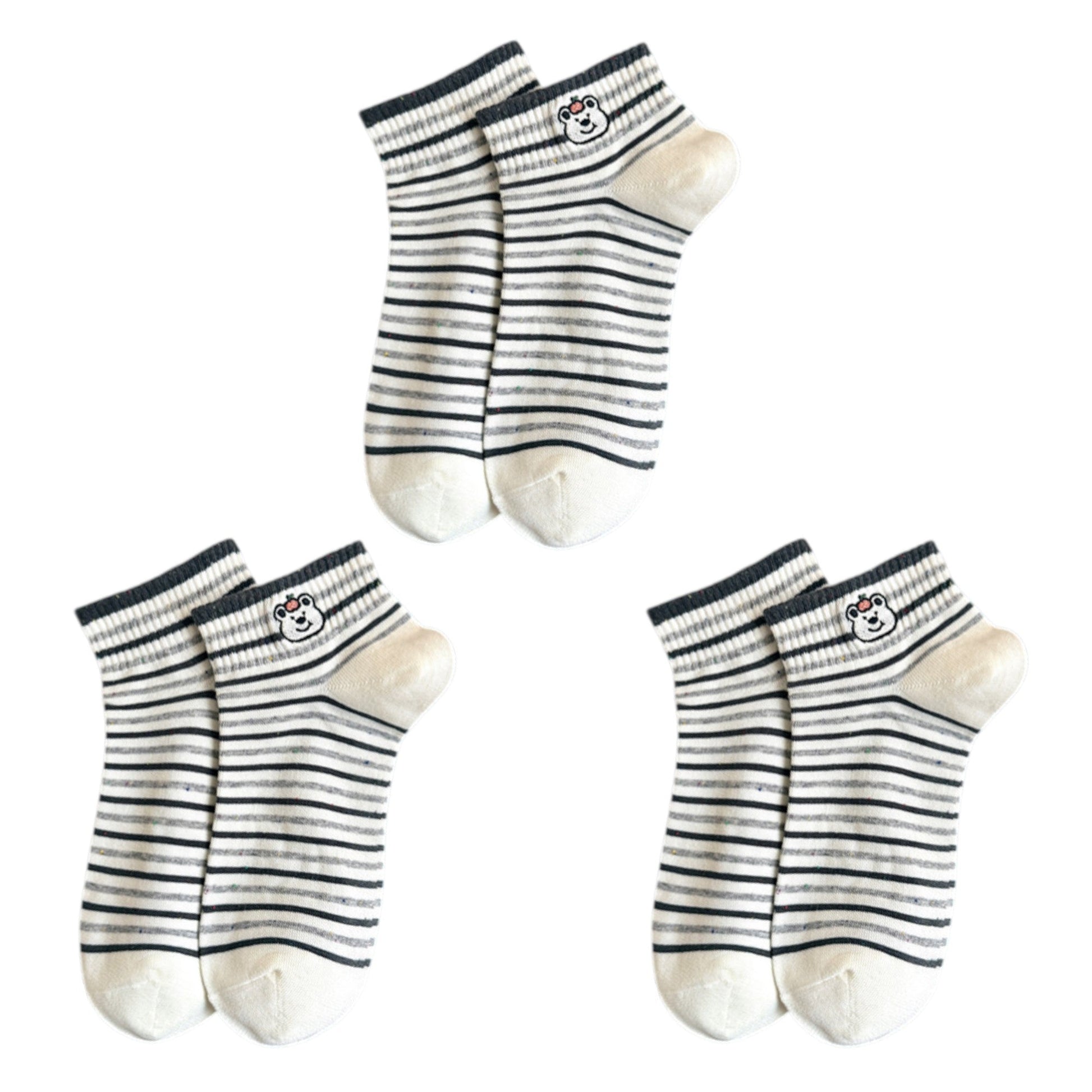 Anna-Kaci 3-Pack Women's Cartoon Embroidered Cotton Ankle Socks with Stripes and Color Speckle Design