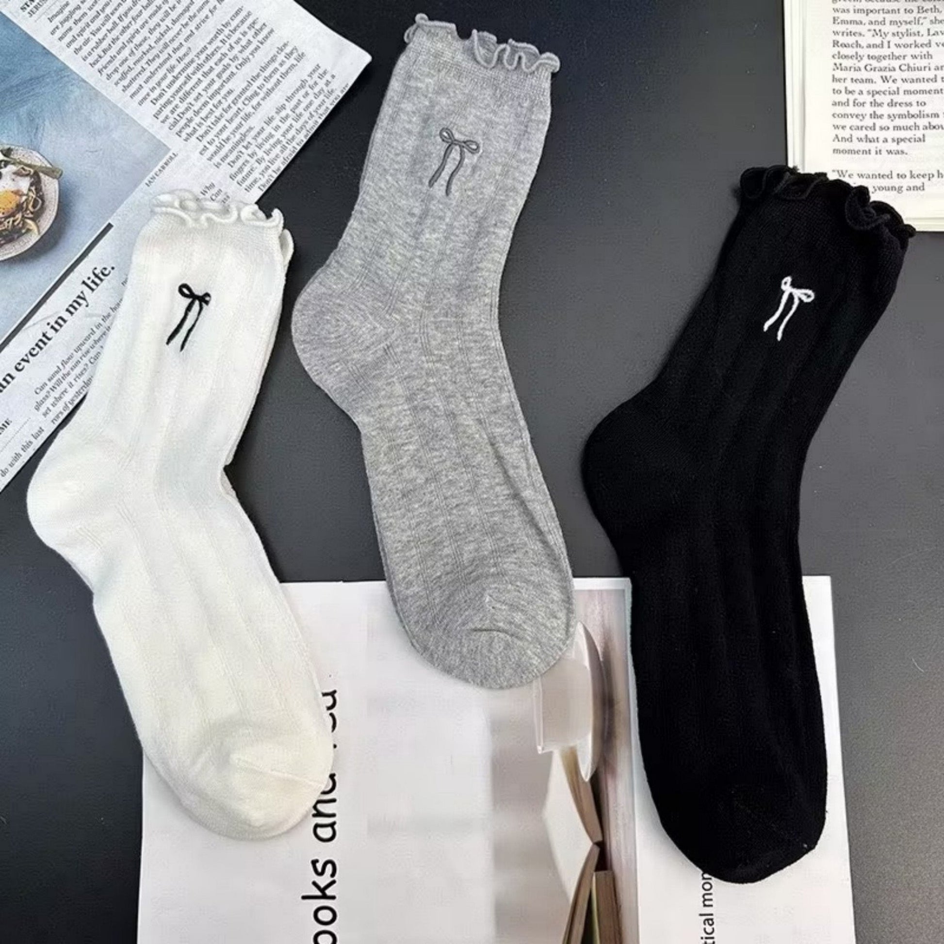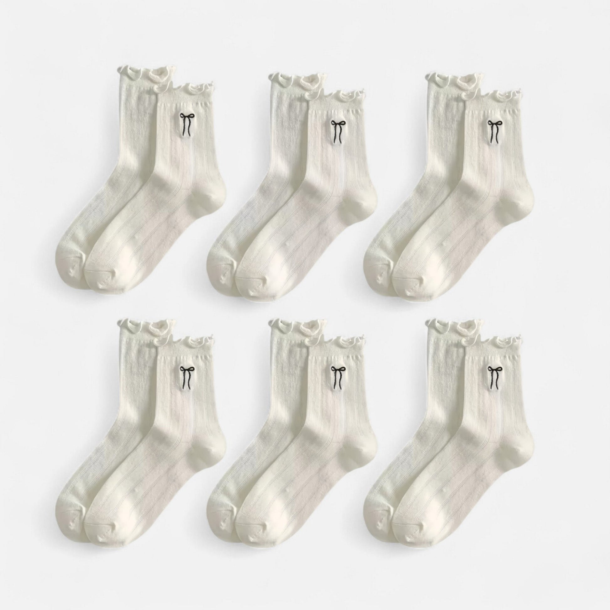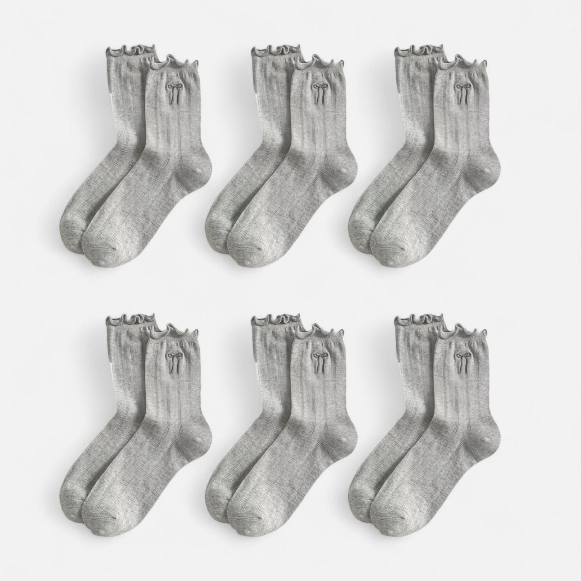 Anna-Kaci Women's 6-Pack Ruffle Trim Crew Socks with Ribbed Texture and Delicate Bow Accent