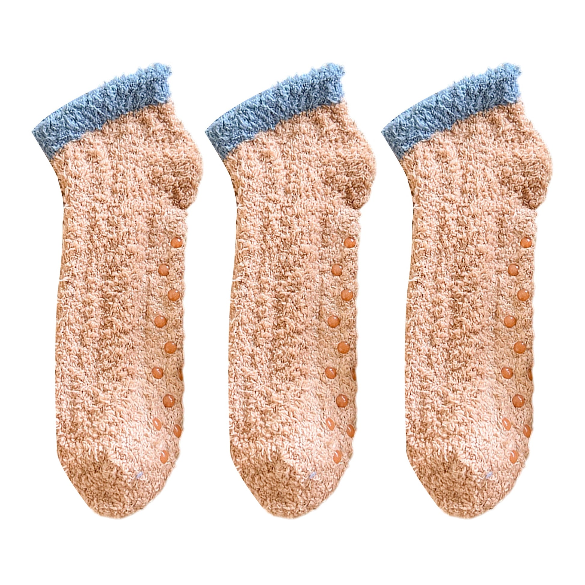 Anna-Kaci 3 Pairs Plush Anti-Slip Fuzzy Ankle Socks with Soft Cuff Trim
