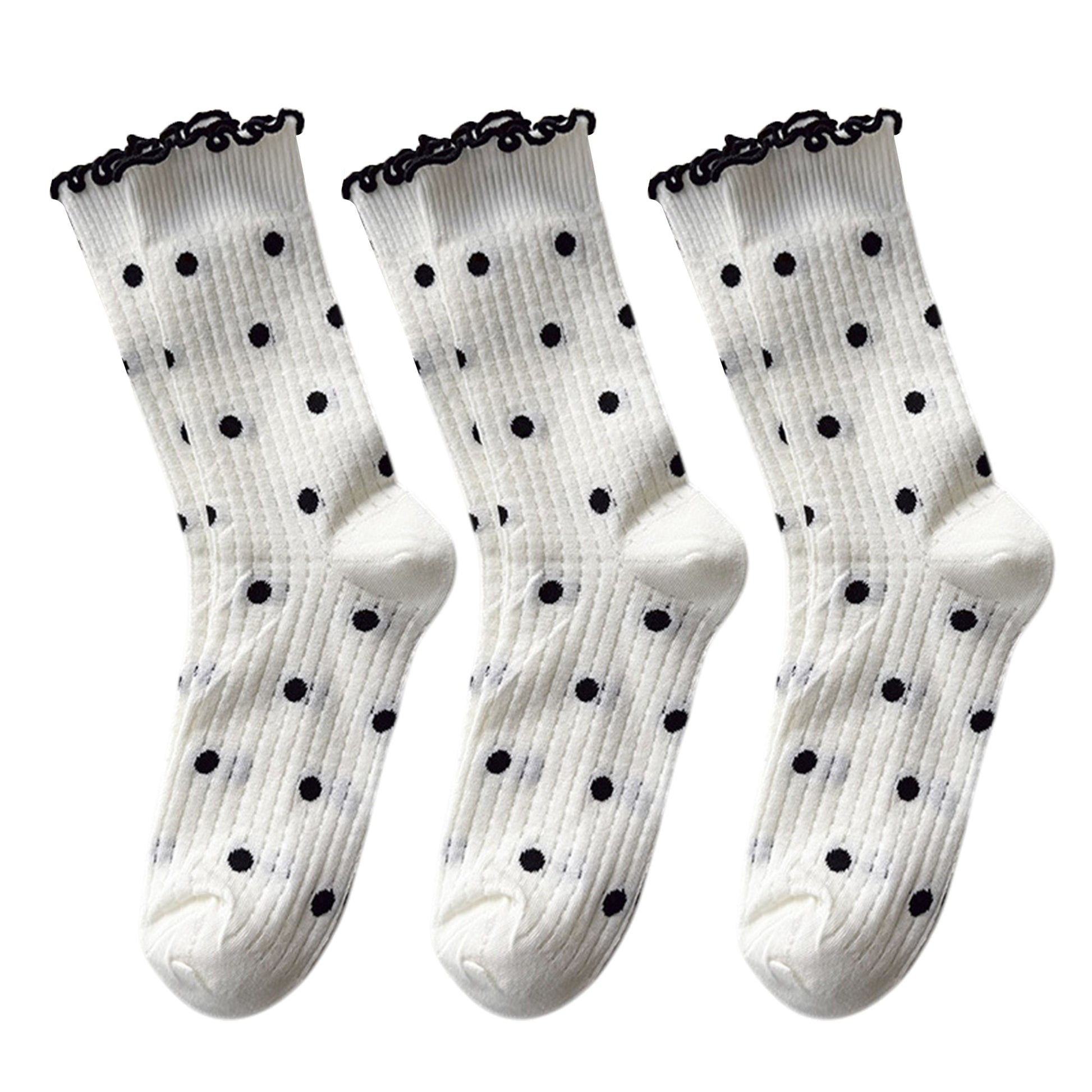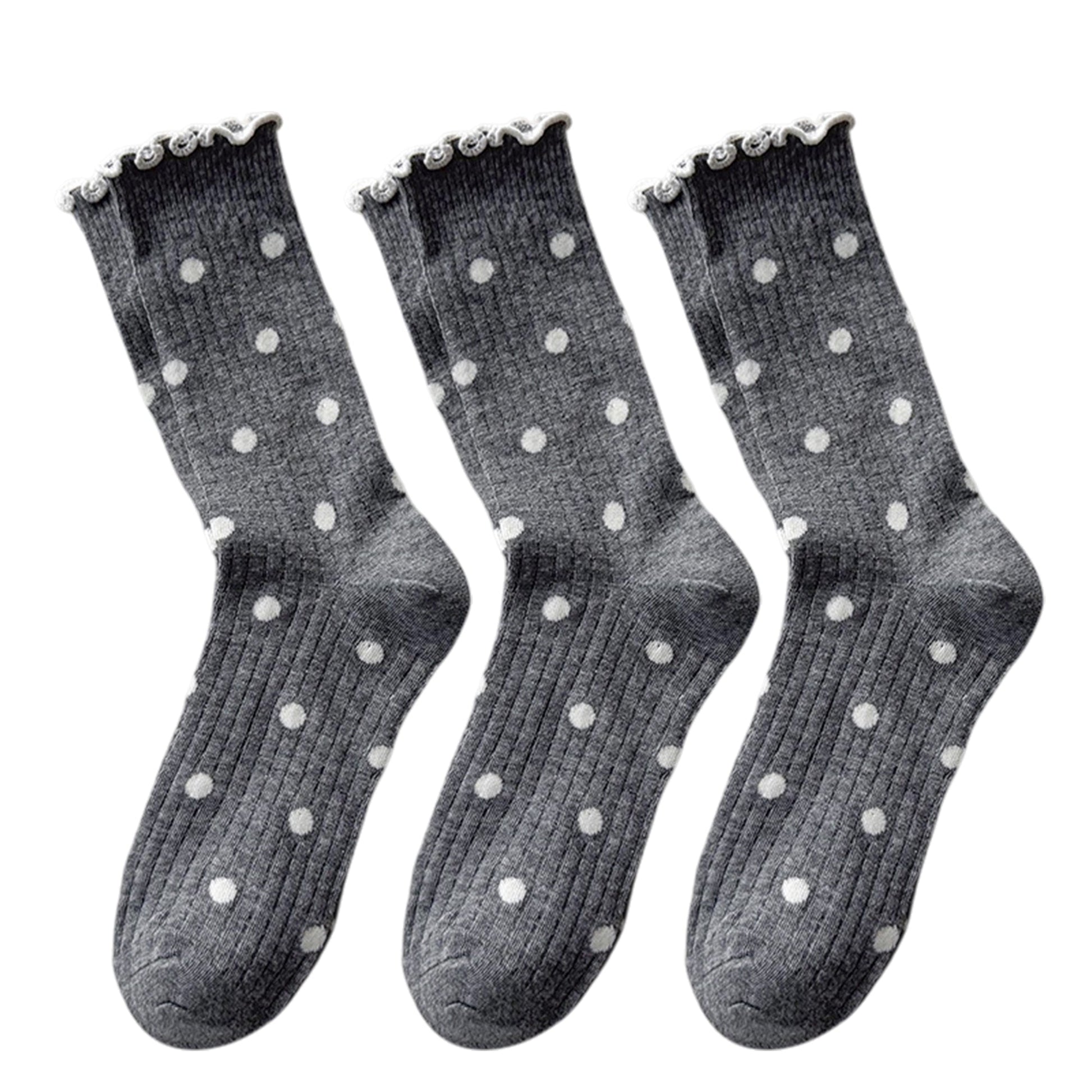 Anna-Kaci 3 Pairs Women's Mid-Calf Polka Dot Socks with Lettuce Edge Cuff