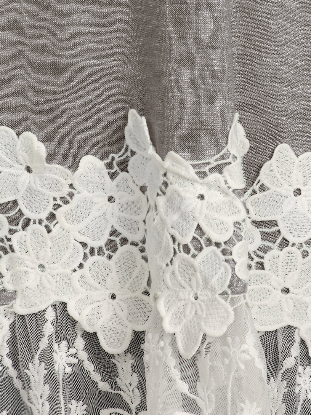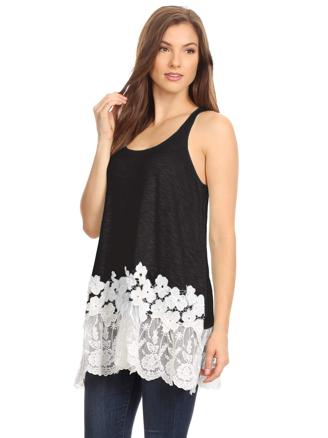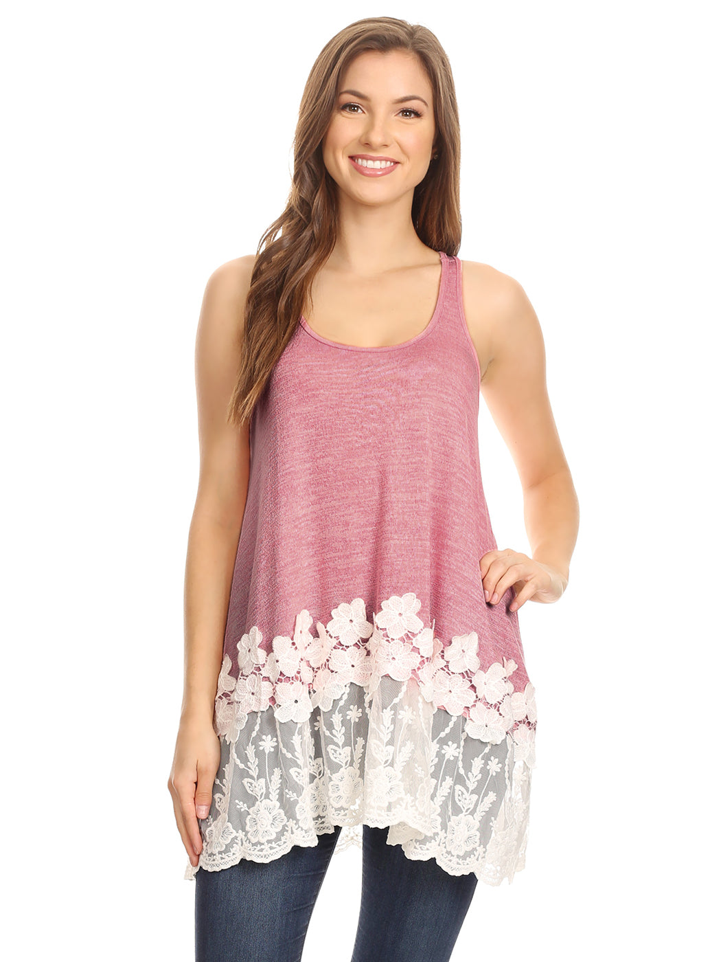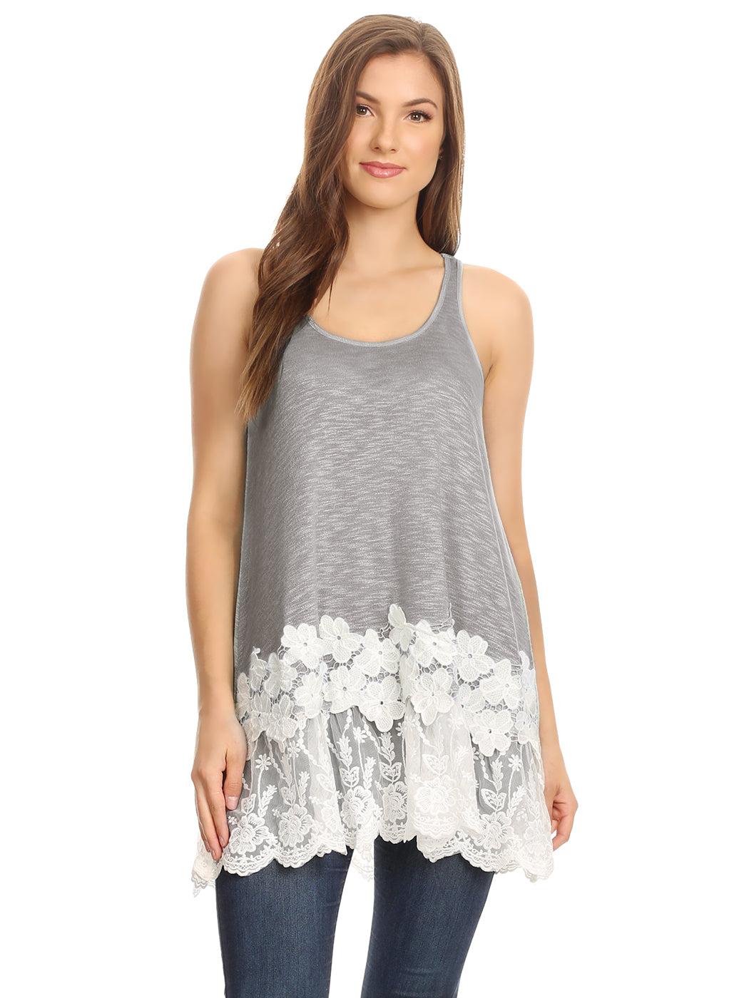 This floral tunic is perfect on its own or layered under another piece for a flirty glimpse of lace. Style it with distressed denim for a casual look, or dress it up with heels for a going out look.
