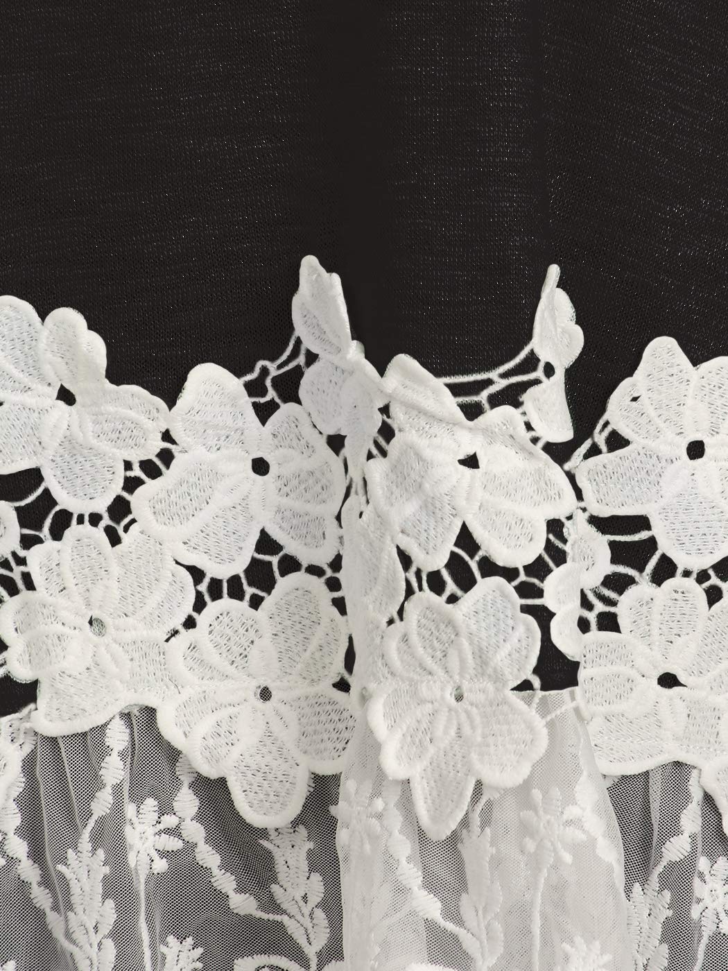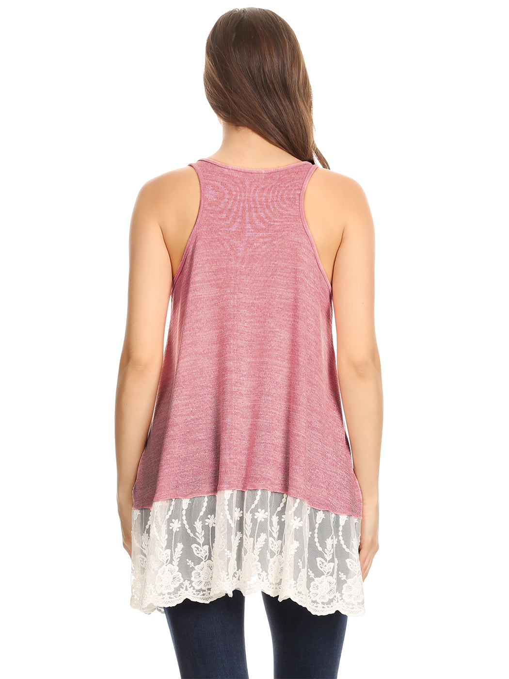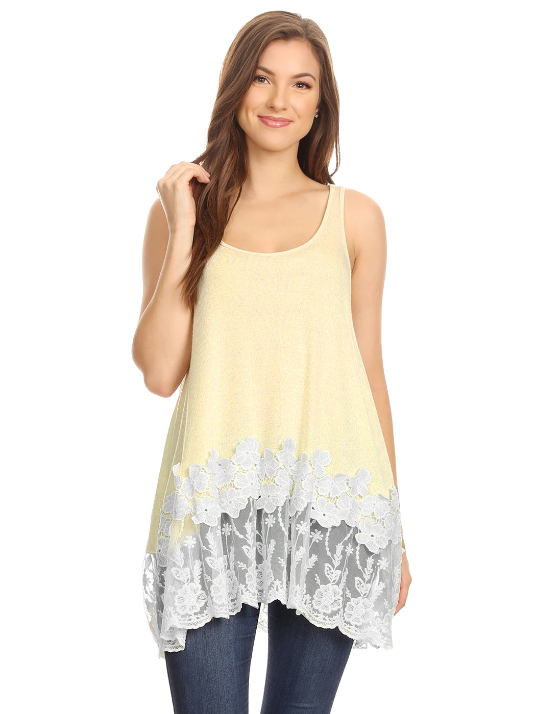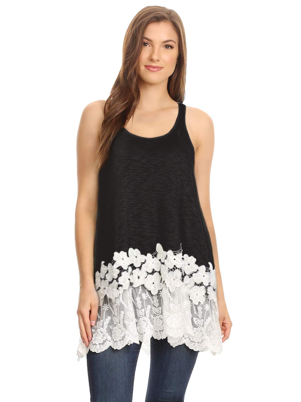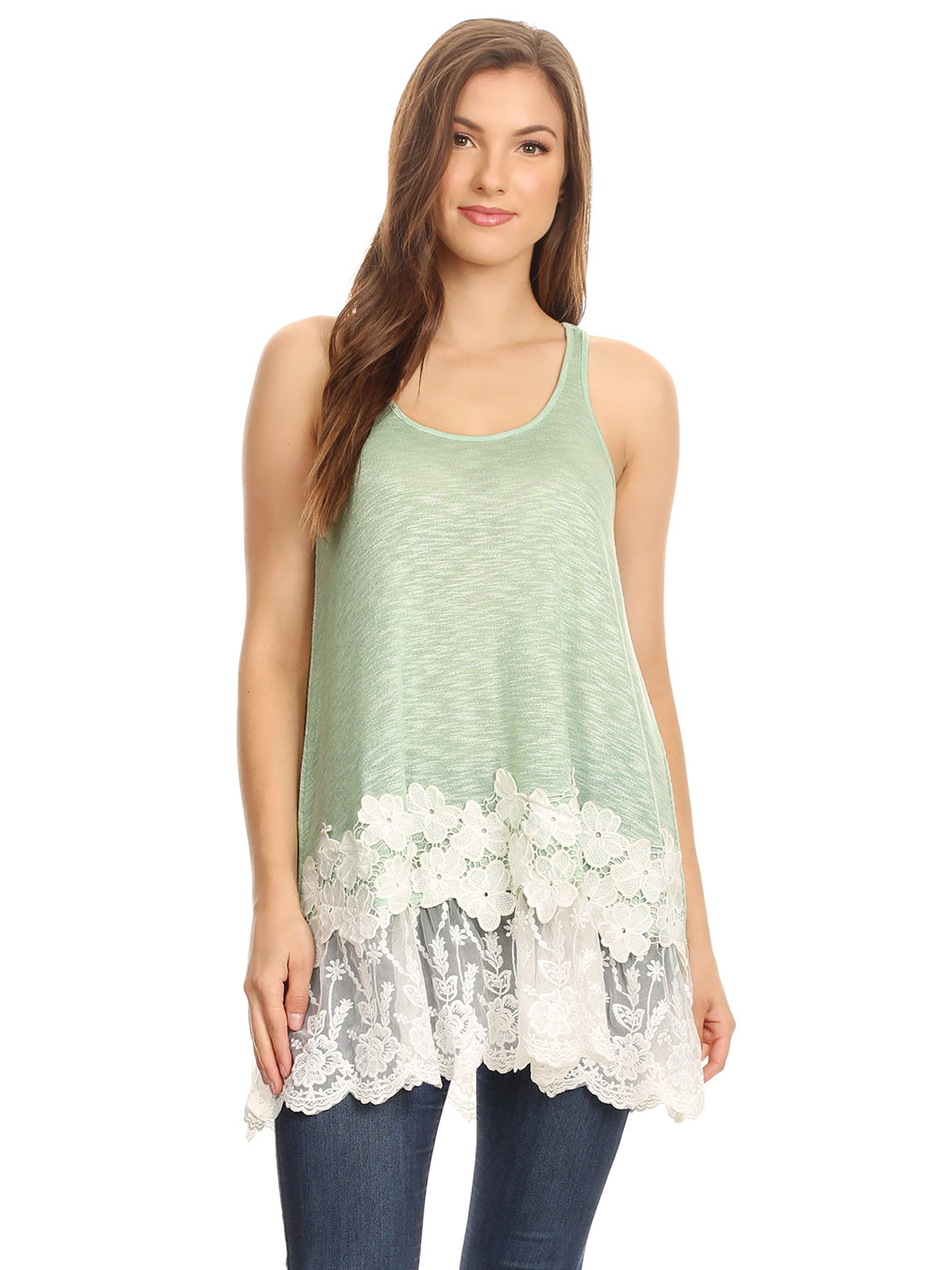 This floral tunic is perfect on its own or layered under another piece for a flirty glimpse of lace. Style it with distressed denim for a casual look, or dress it up with heels for a going out look.
