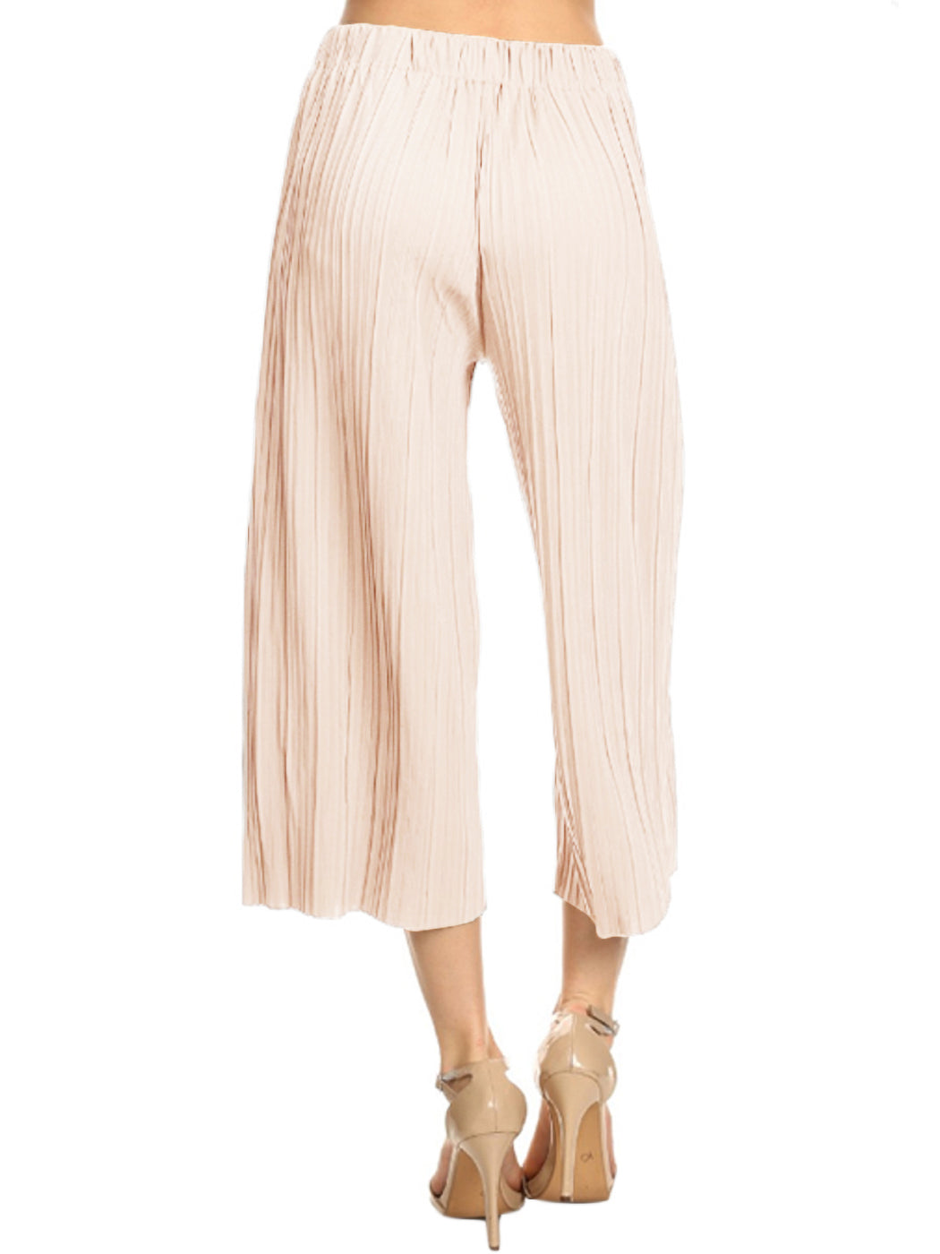 - PLEATED HIGH WAIST PALAZZO TROUSERS. Wide leg cut out cropped pants hit above the ankle for a classic feminine look. Pleated fabric is flattering for all body types and adds a touch of delicacy and sophistication.